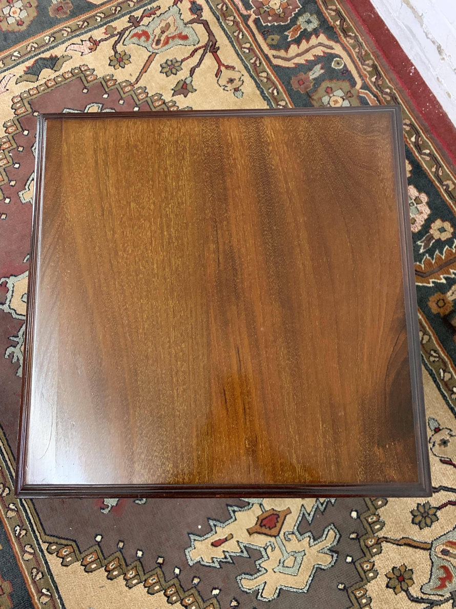 We are delighted to offer this fantastic quality Edwardian mahogany revolving bookcase. The square top has a moulded edge, below are arrangements of shelves. The cruciform base has four casters, please note this super item is in excellent condition.