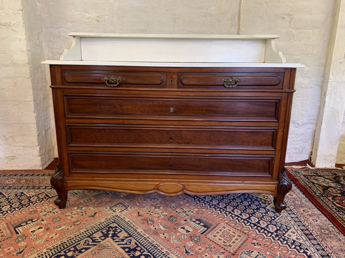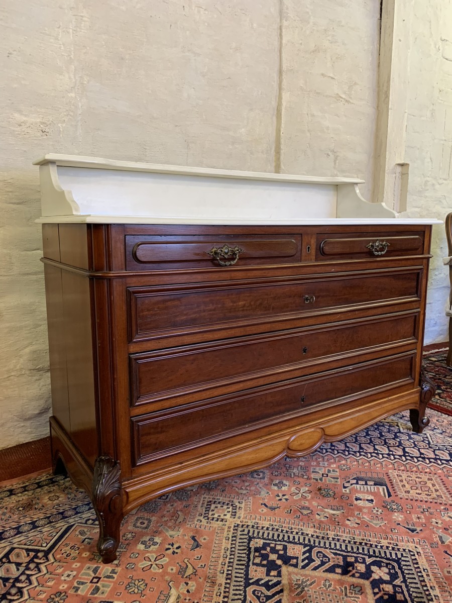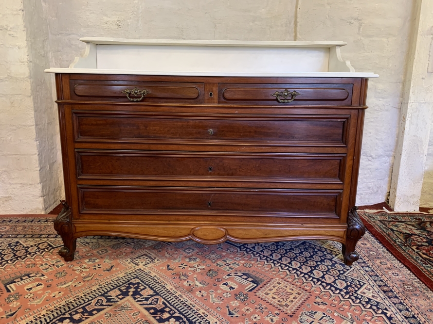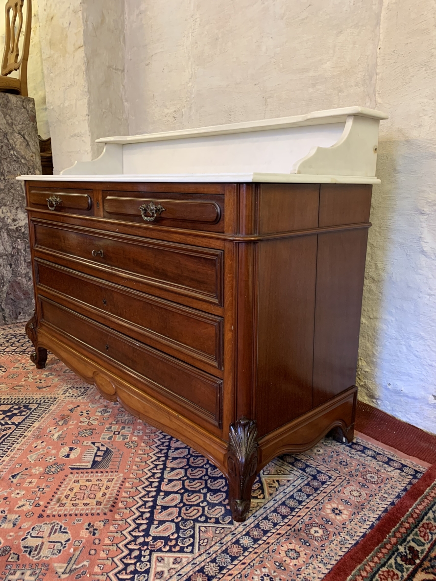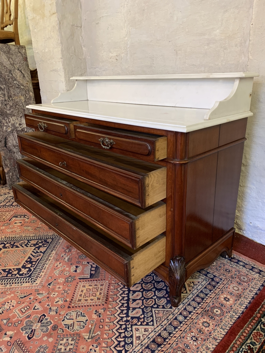 - Fabulous Antique French Carved Mahogany Marble Top Commode/washstand