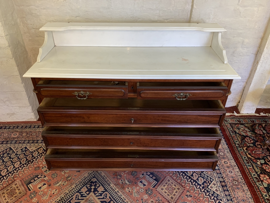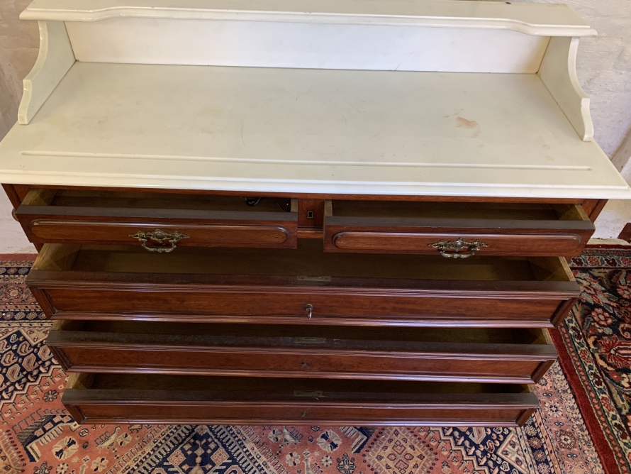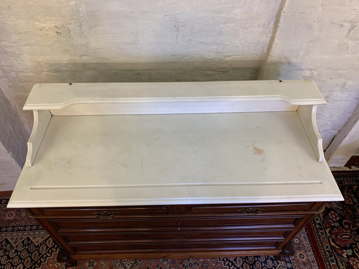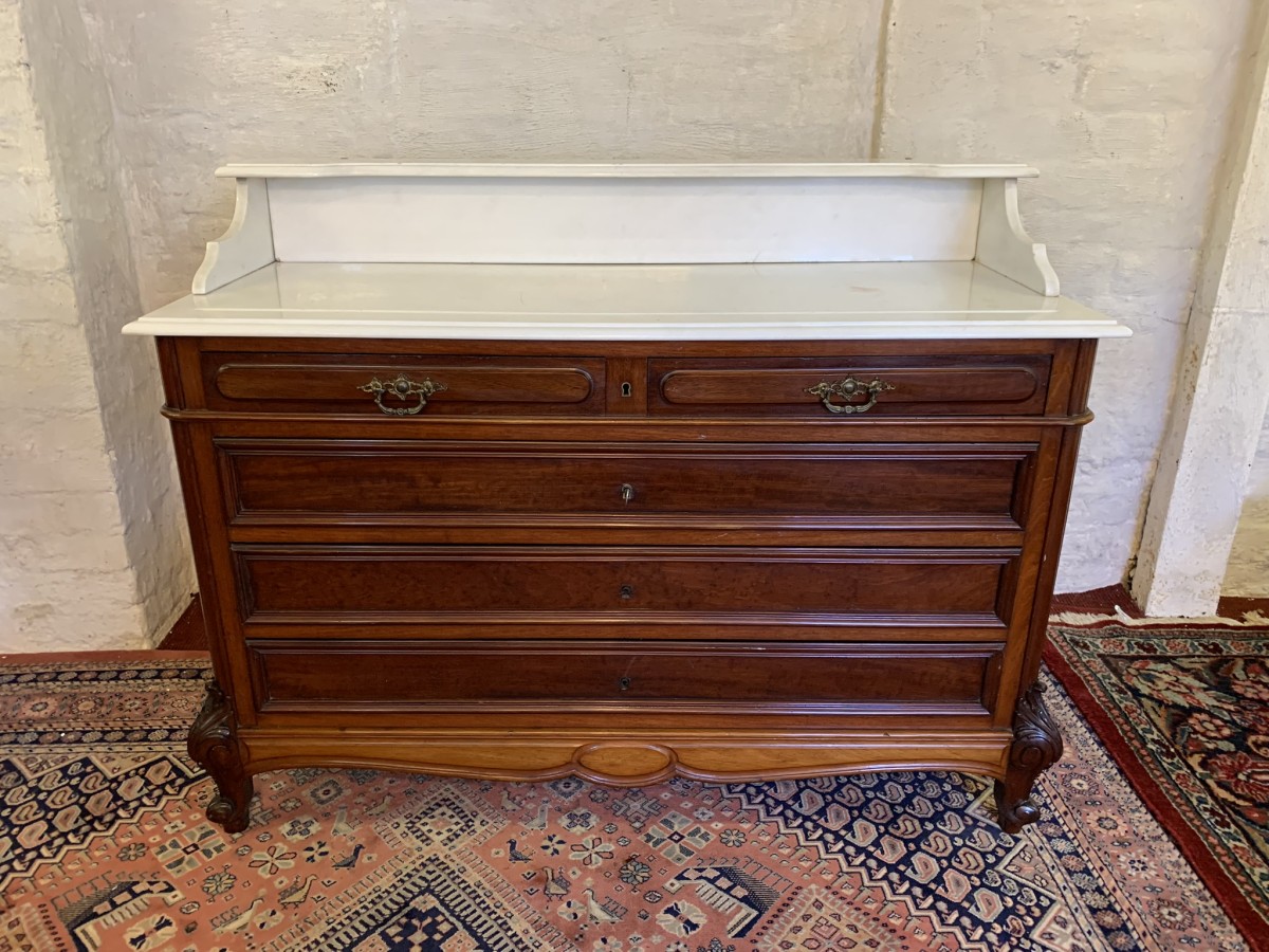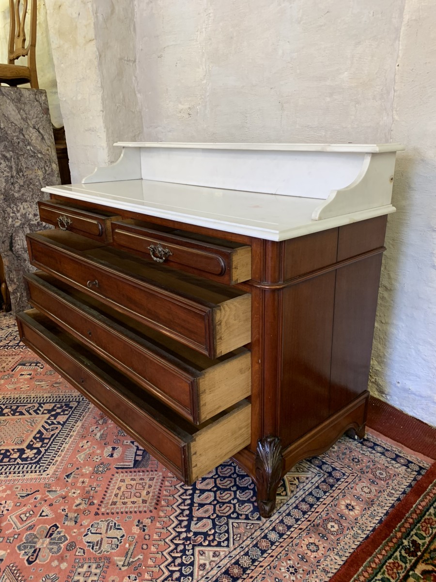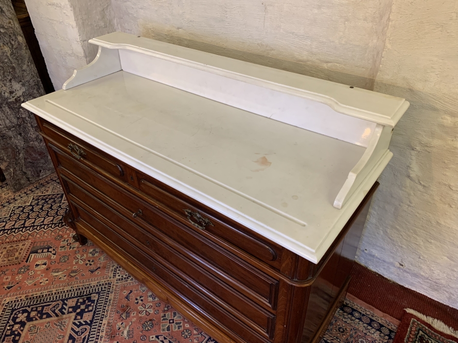 - Fabulous Antique French Carved Mahogany Marble Top Commode/washstand