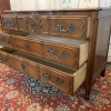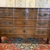 This this fabulous French chest of drawers dates Circa 1900 and is in excellent condition. The shaped oversailing top sits above three lockable serpentine shaped carved drawers, each drawer having two ornate brass handles. Recessed panelled sides, shaped skirt – this stunning French commode sits on two carved cabriole legs to the front.