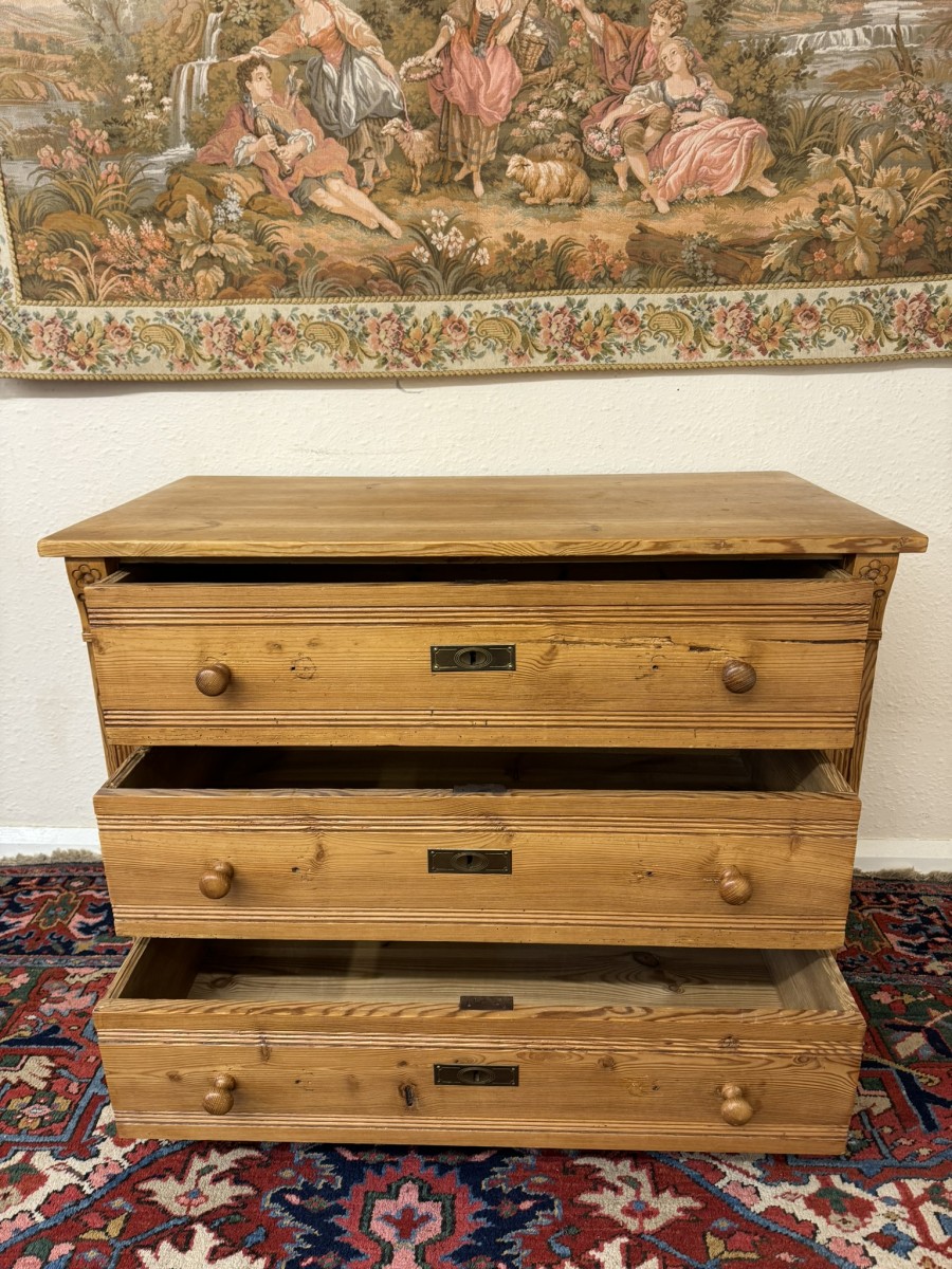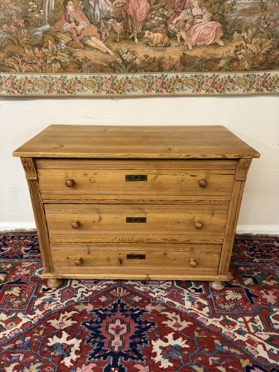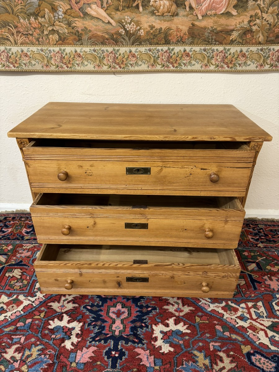 - Fabulous Antique Pine Chest Of Three Drawers Circa 1920