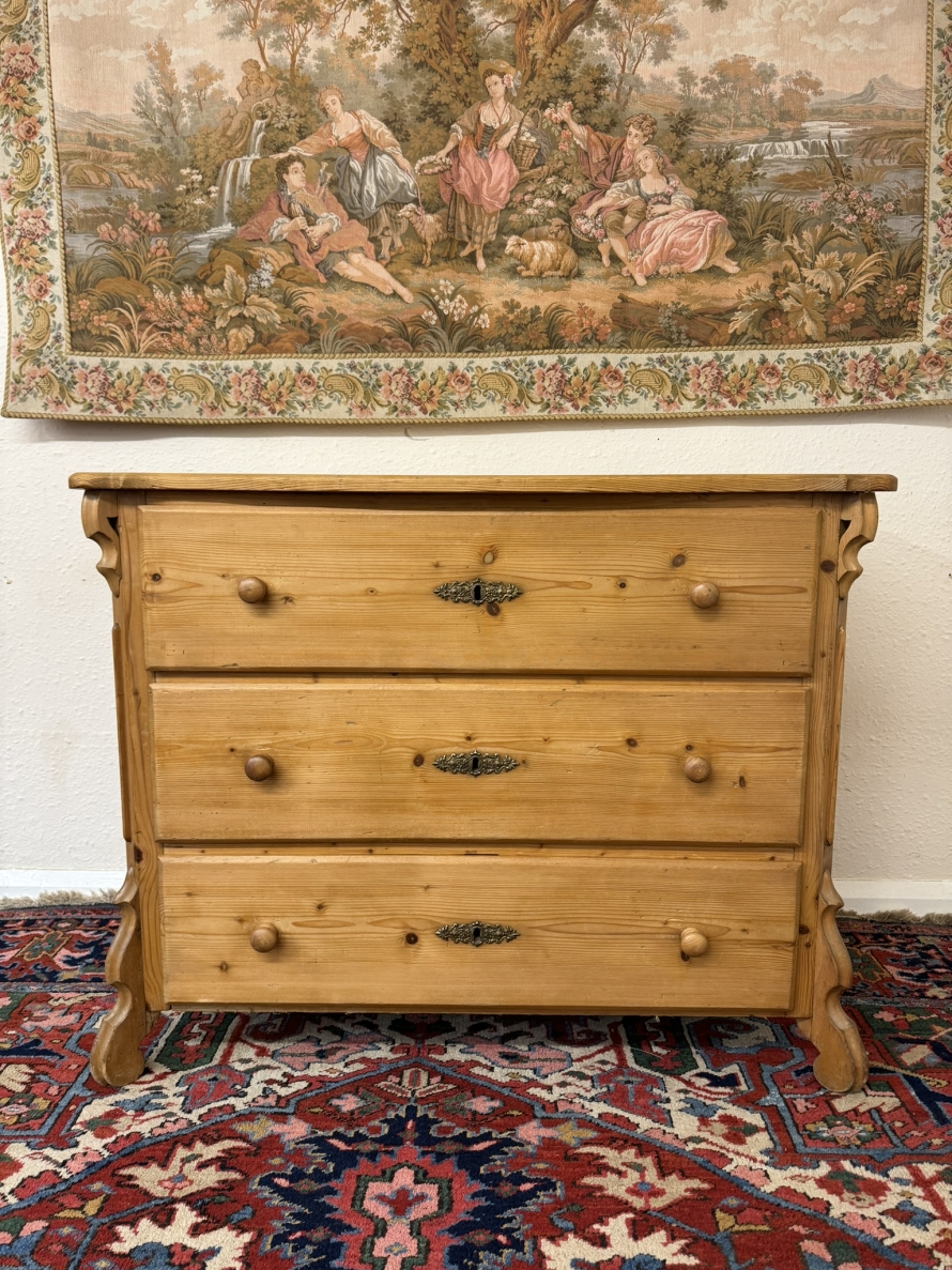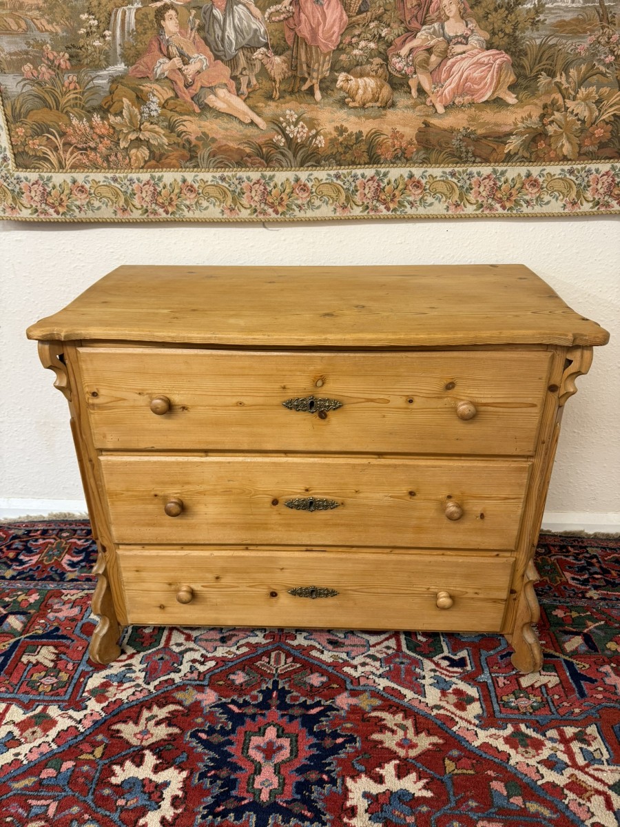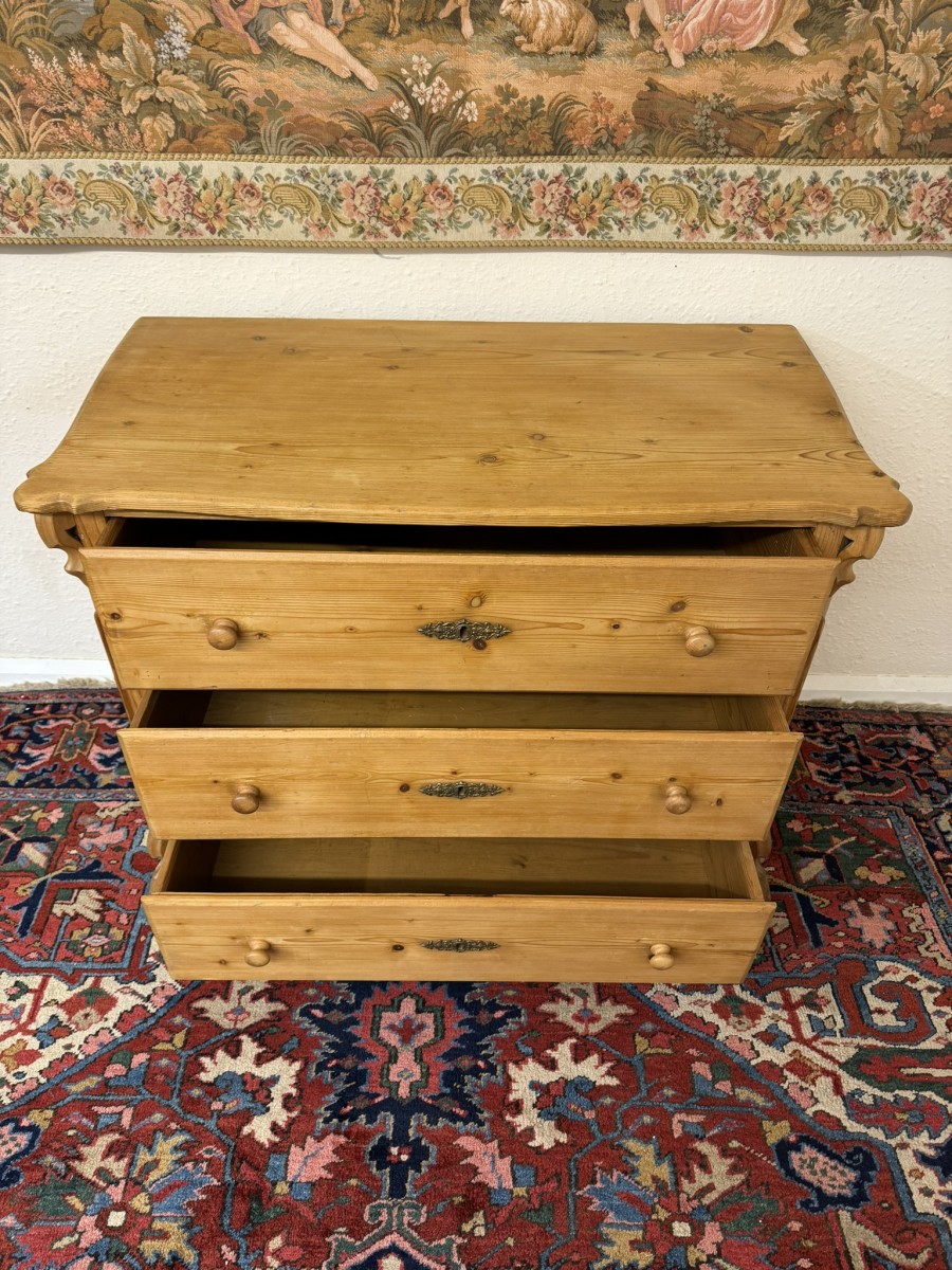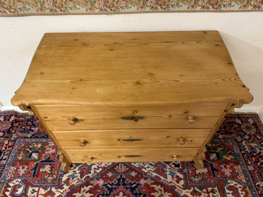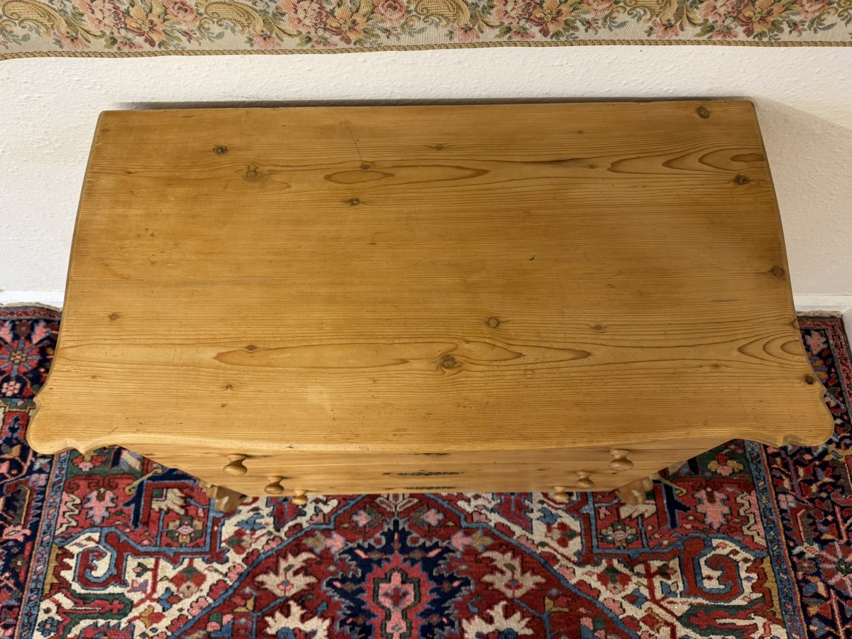 - Fabulous Antique Pine Shaped Chest Of Three Drawers Circa 1920