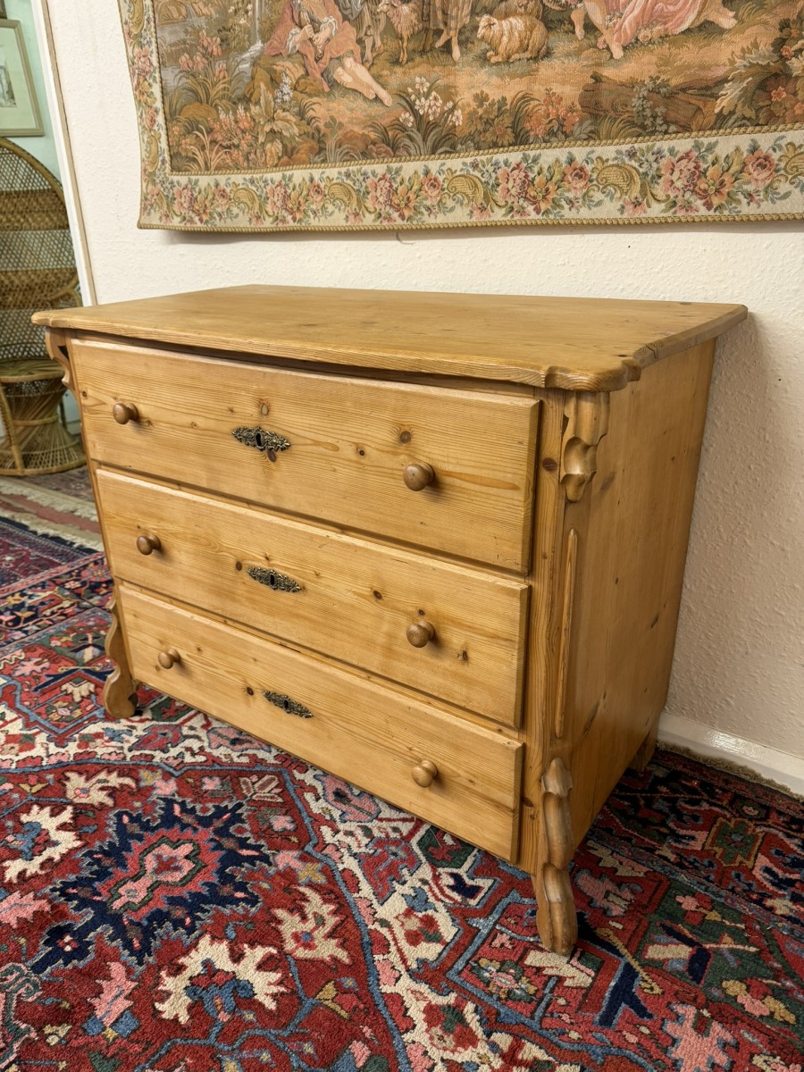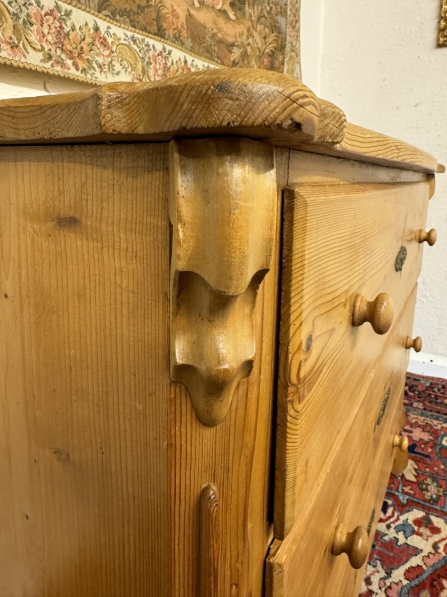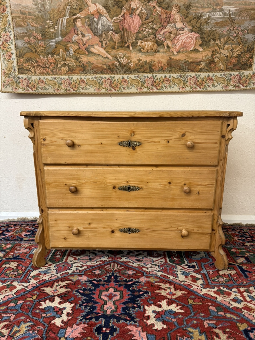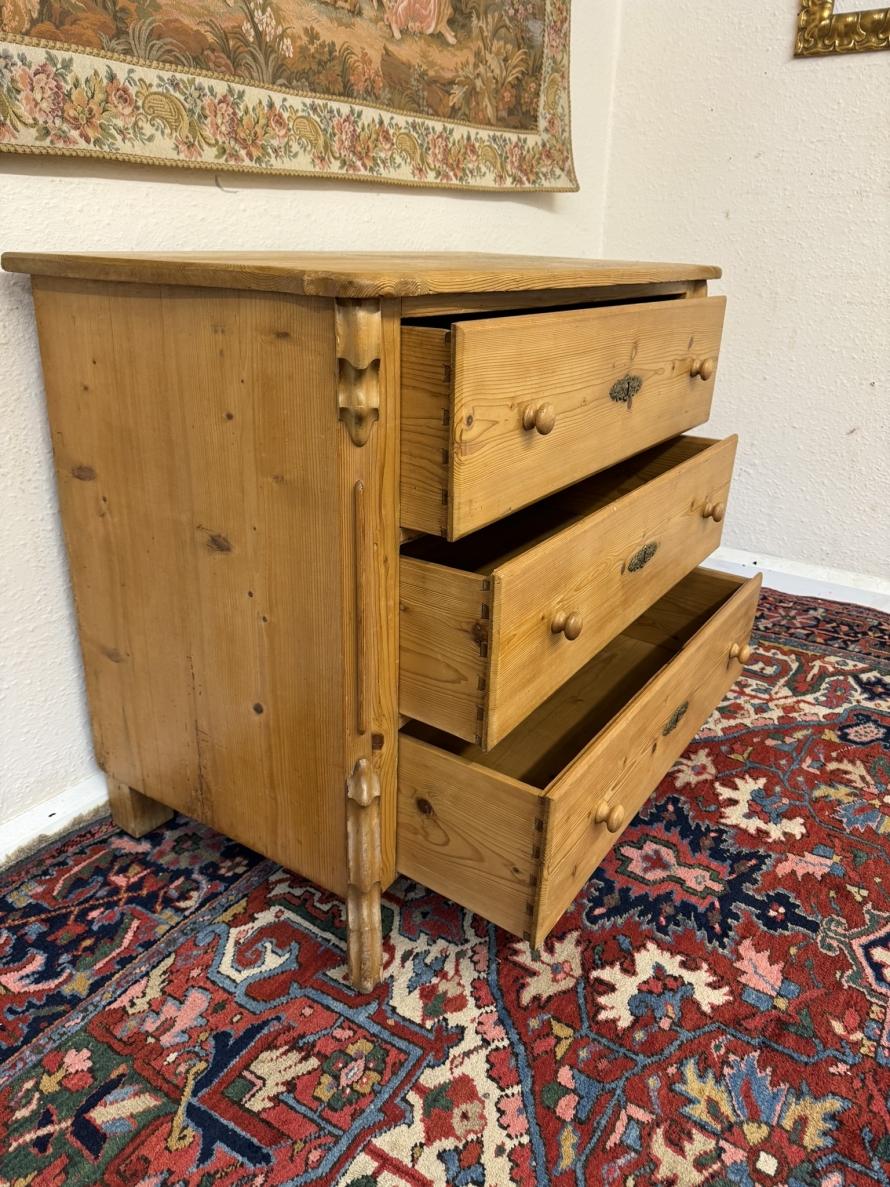 - Fabulous Antique Pine Shaped Chest Of Three Drawers Circa 1920