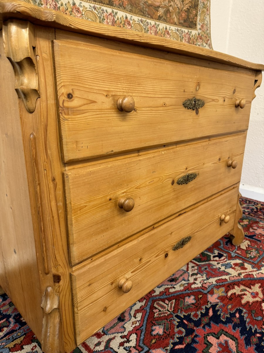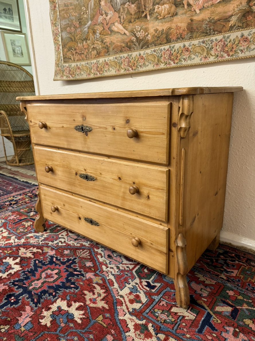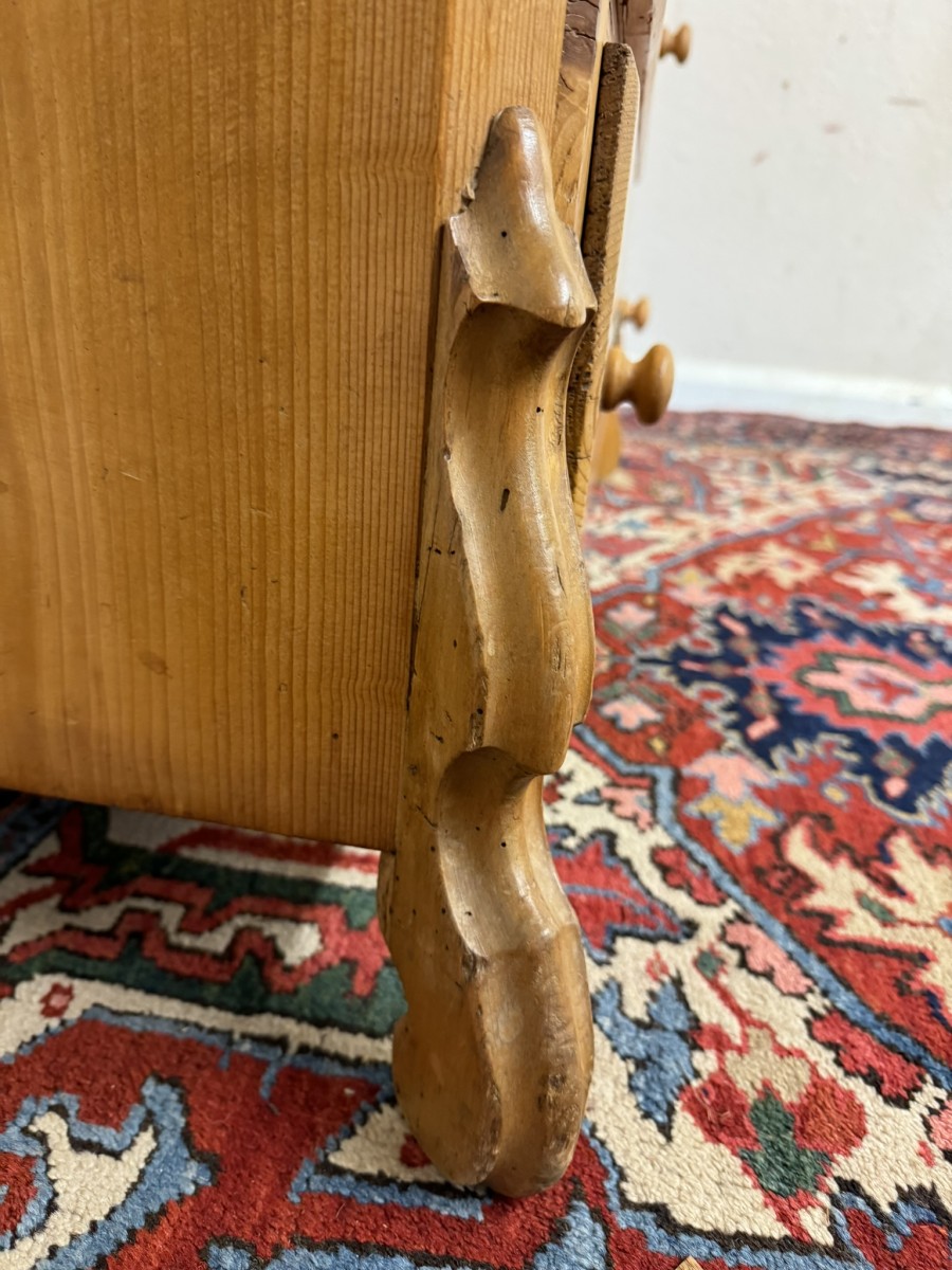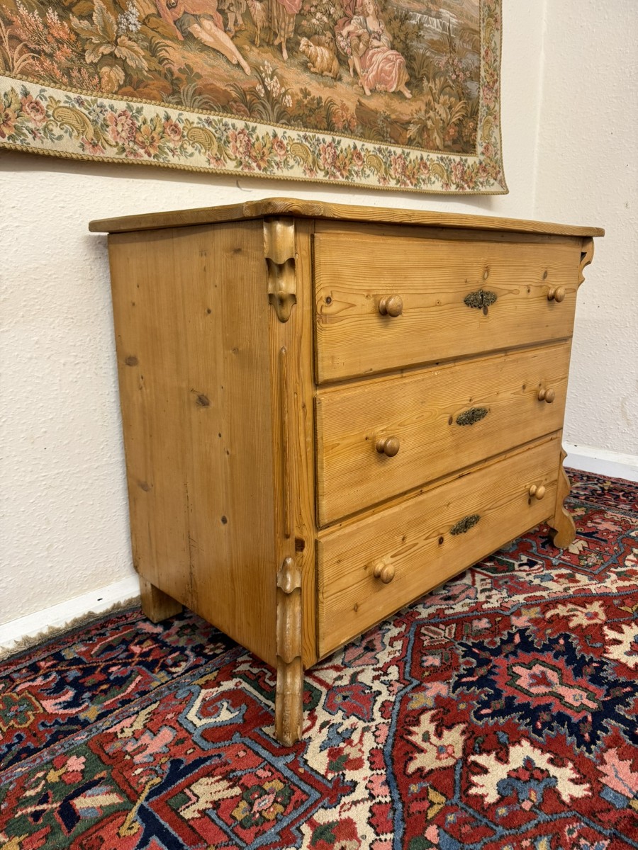 - Fabulous Antique Pine Shaped Chest Of Three Drawers Circa 1920