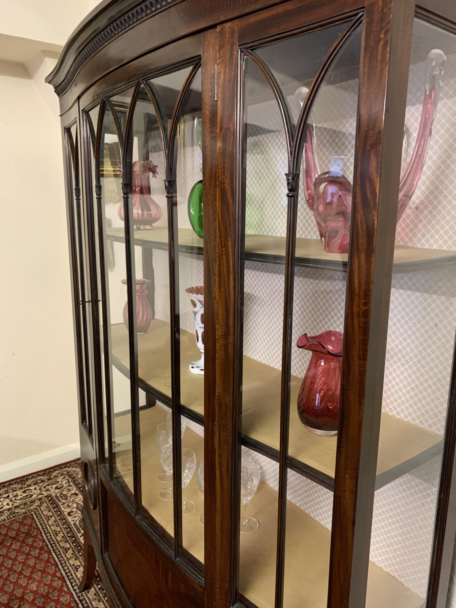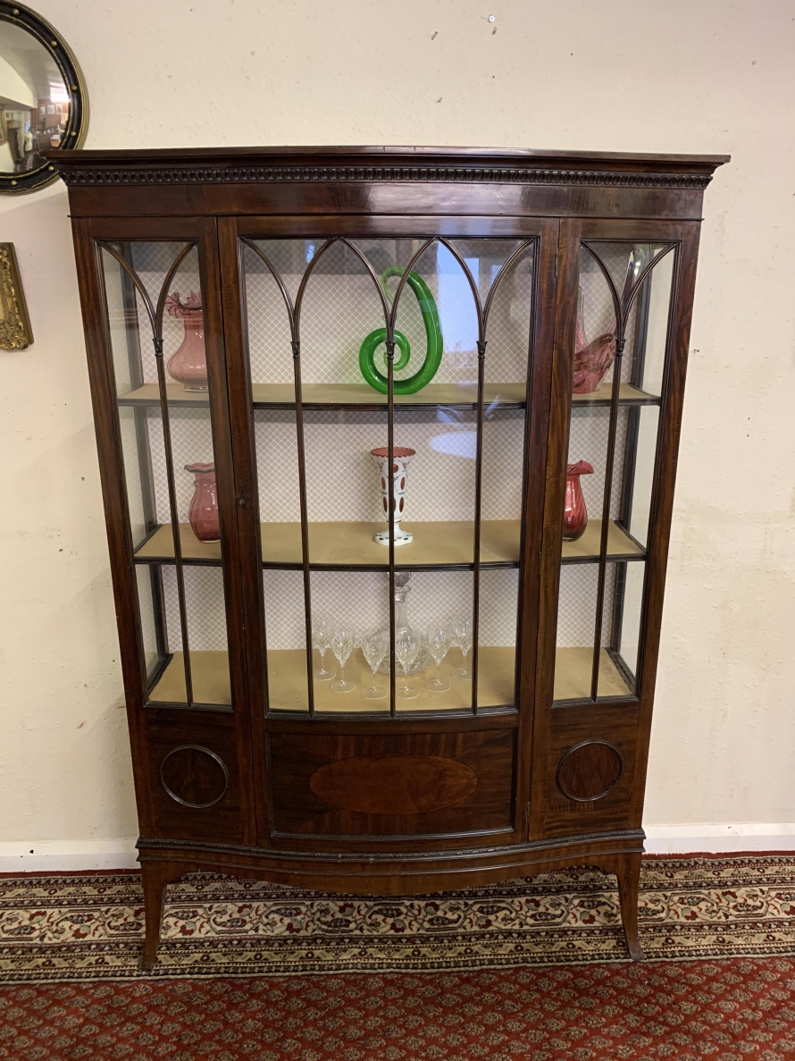 Fabulous Antique Shaped Mahogany Glazed Display Cabinet Circa 1910