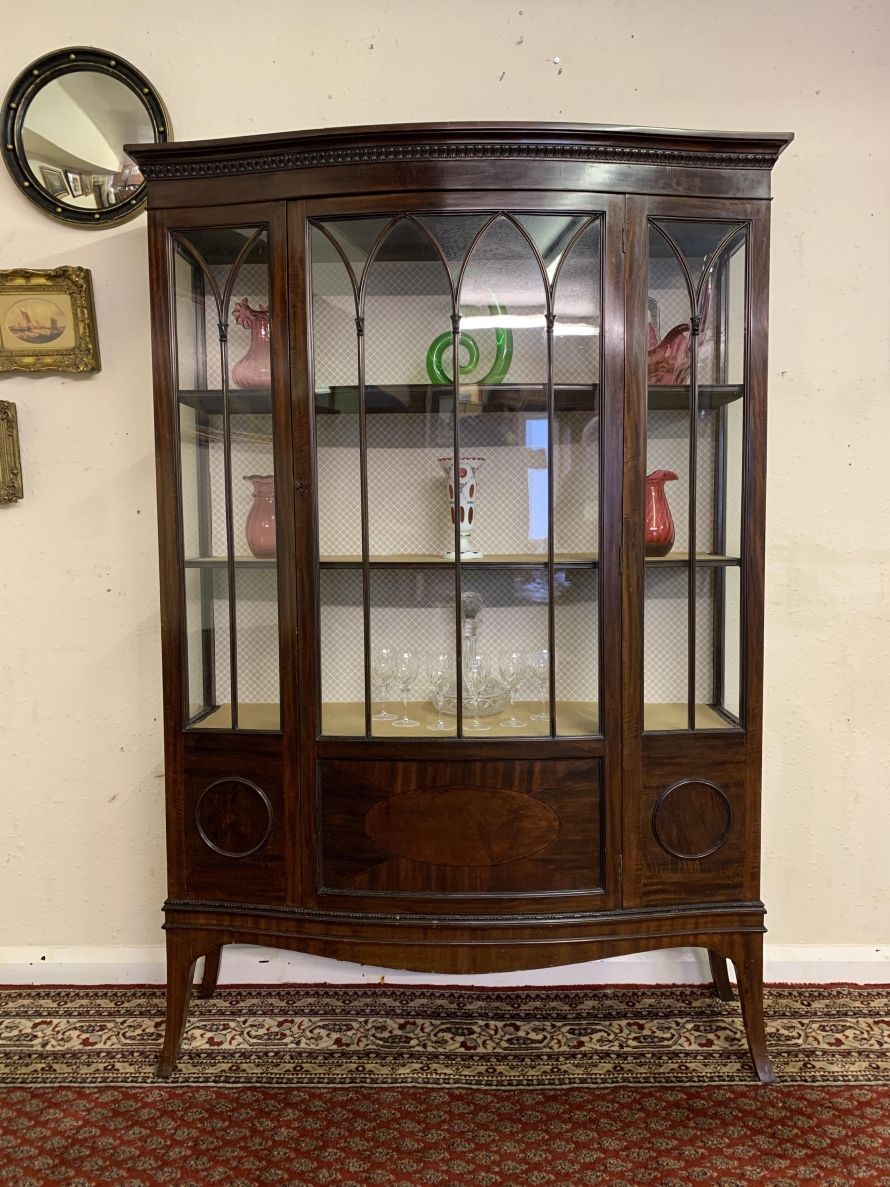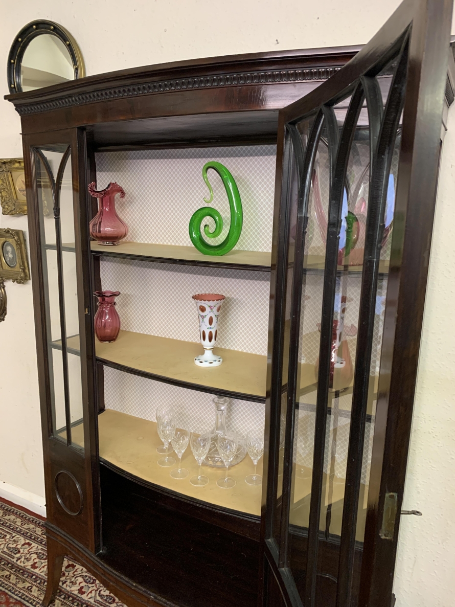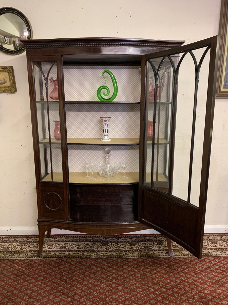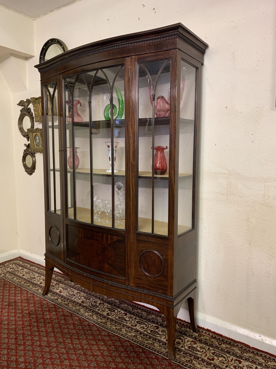 - Fabulous Antique Shaped Mahogany Glazed Display Cabinet Circa 1910