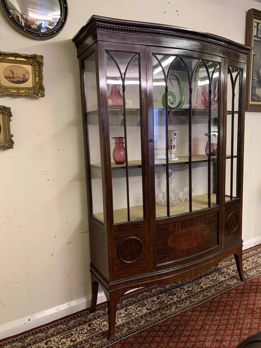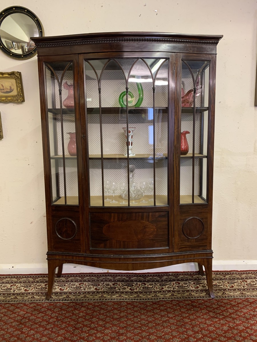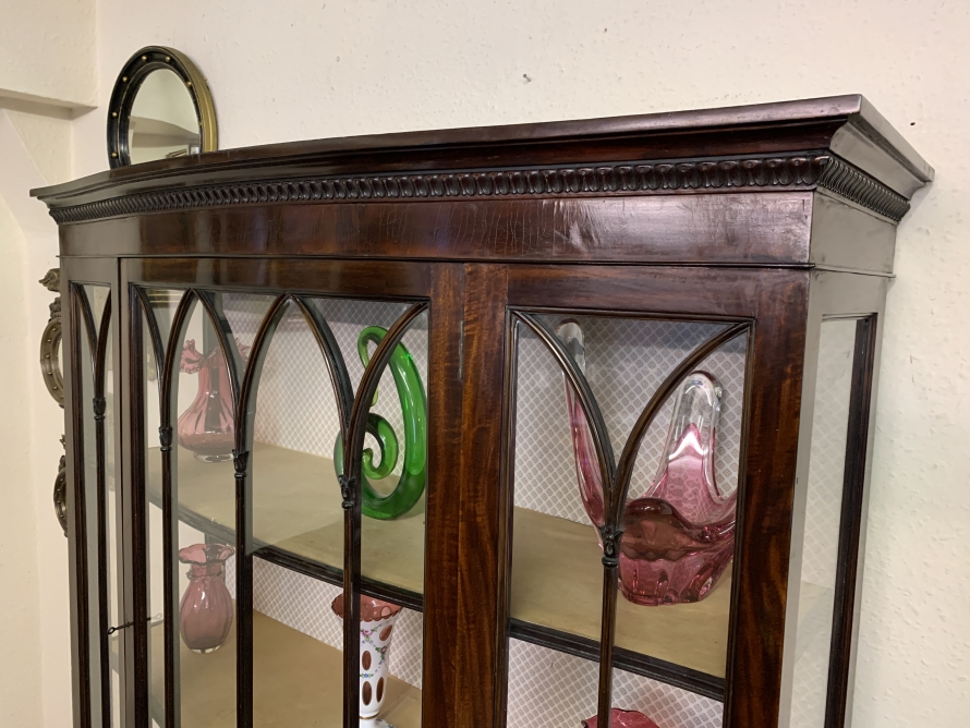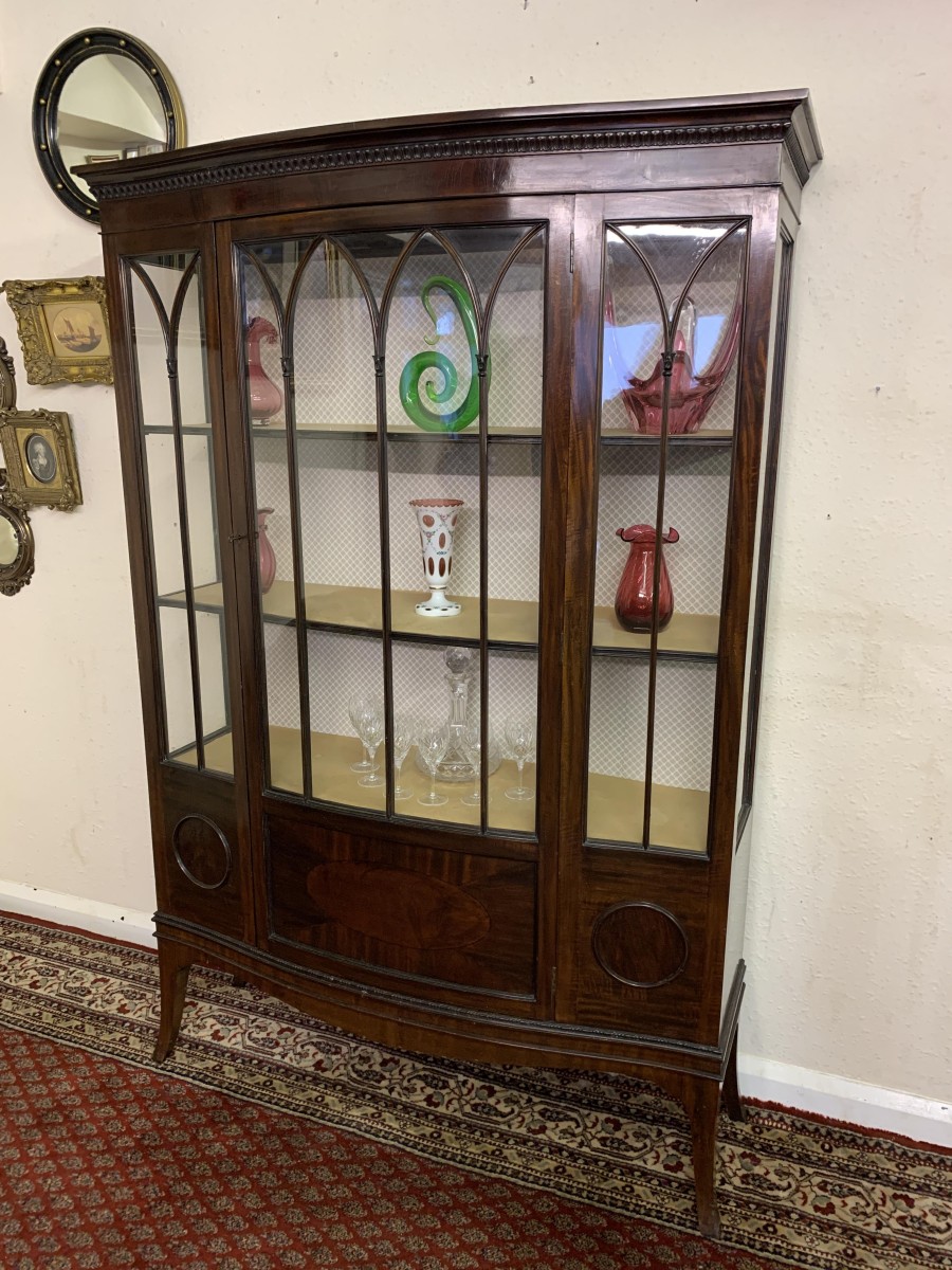- Fabulous Antique Shaped Mahogany Glazed Display Cabinet Circa 1910