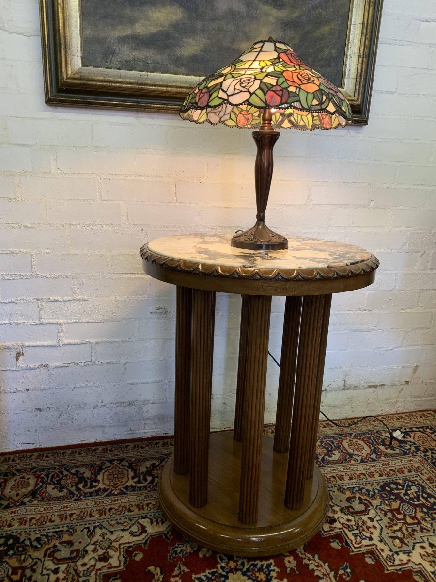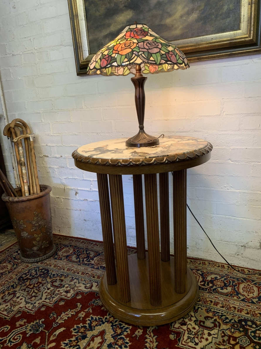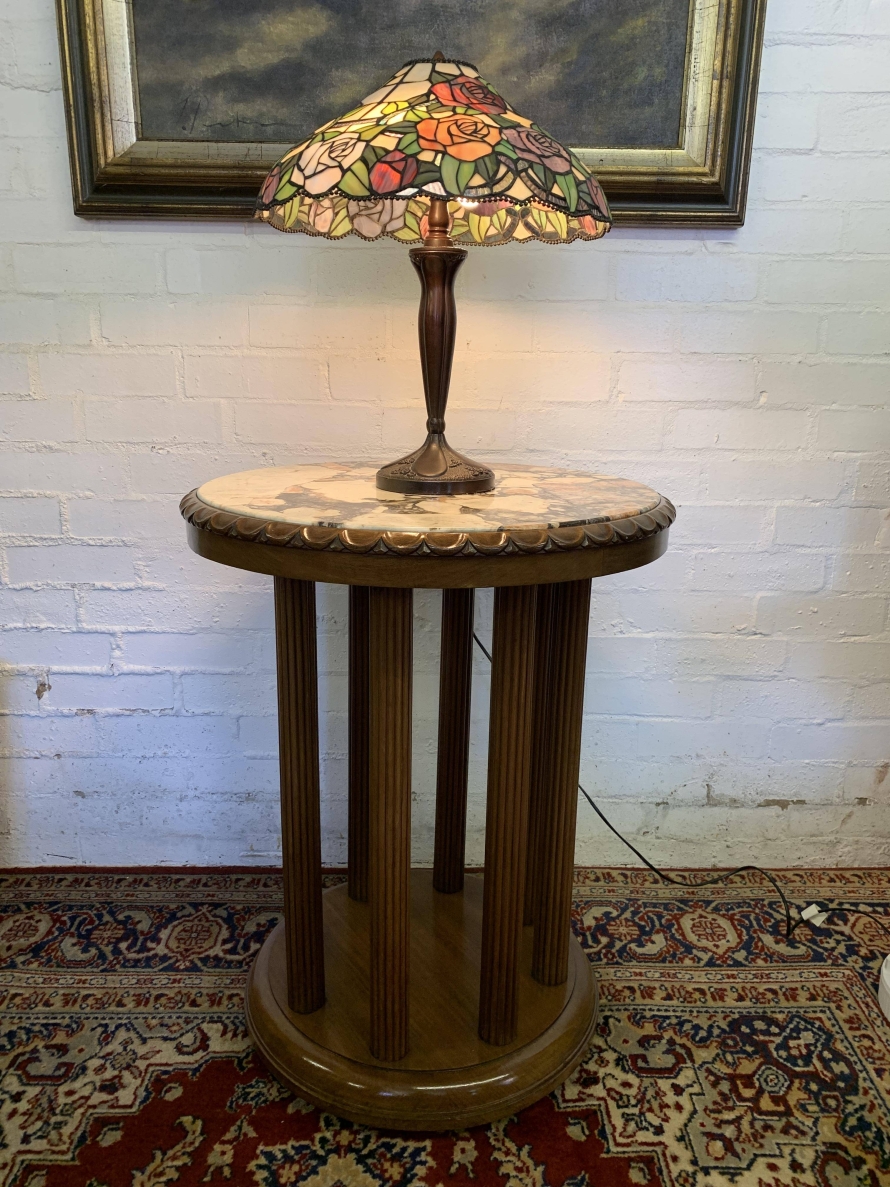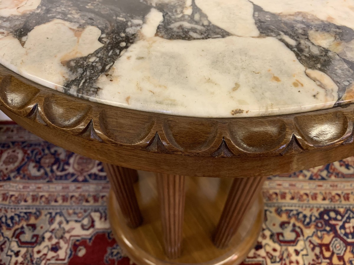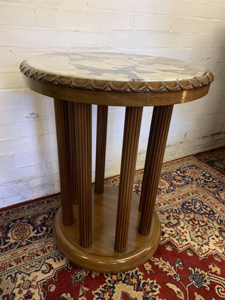 - Fabulous Art Deco Round Carved Walnut Marble Top Stand/table Circa 1920 – Now Sold