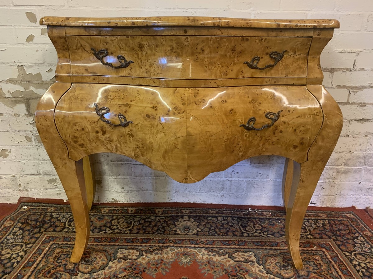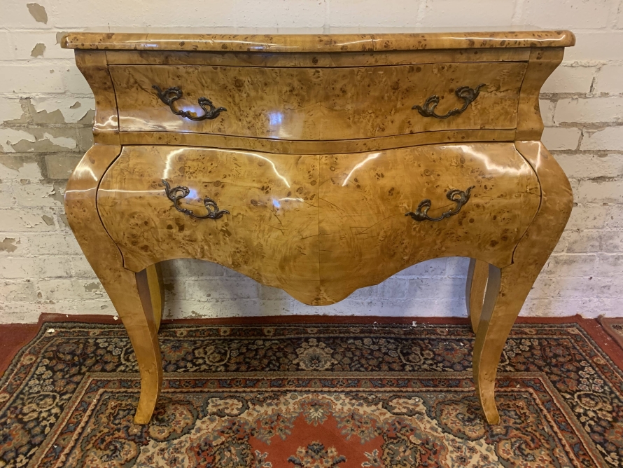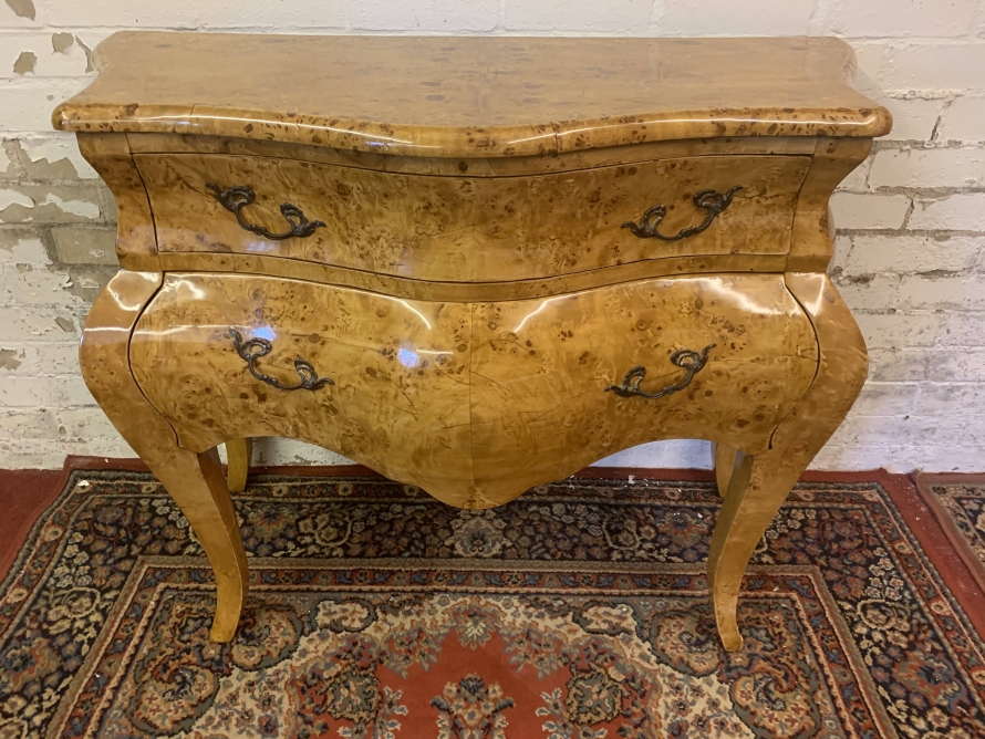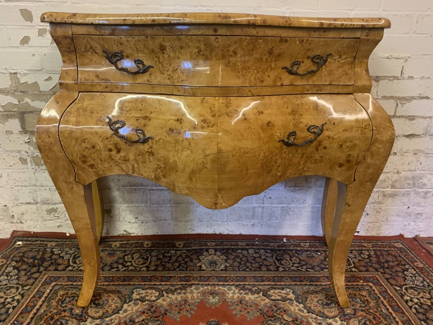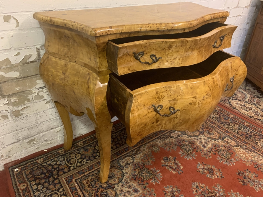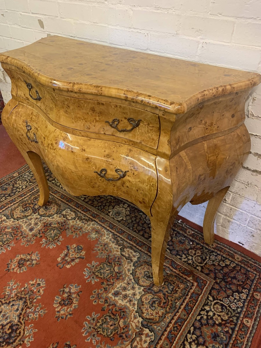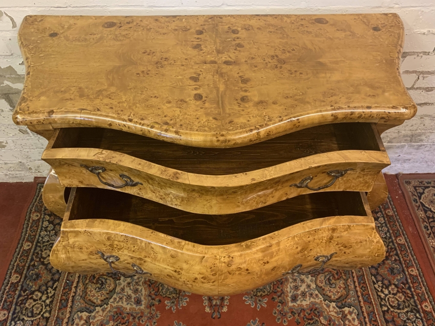 - Fabulous Bombay Shaped Bird’s Eye Maple Commode/chest Of Drawers – Now Sold