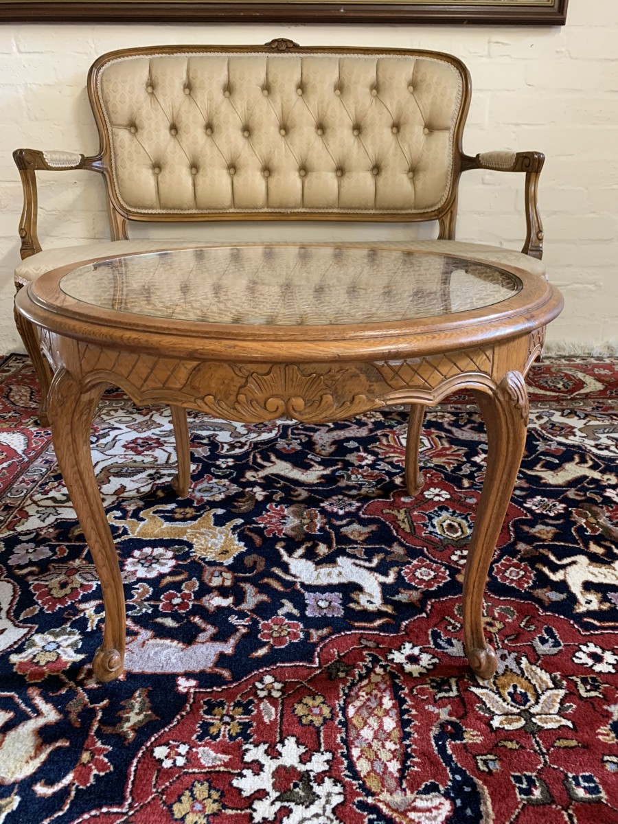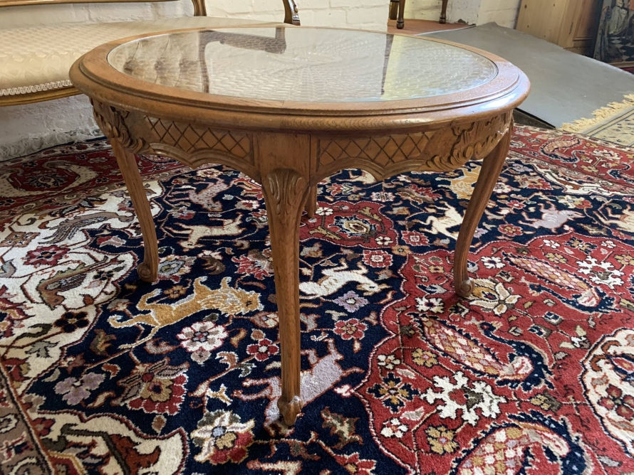 - Fabulous French Carved Oak Round Glass Top Coffee Table – Now Sold