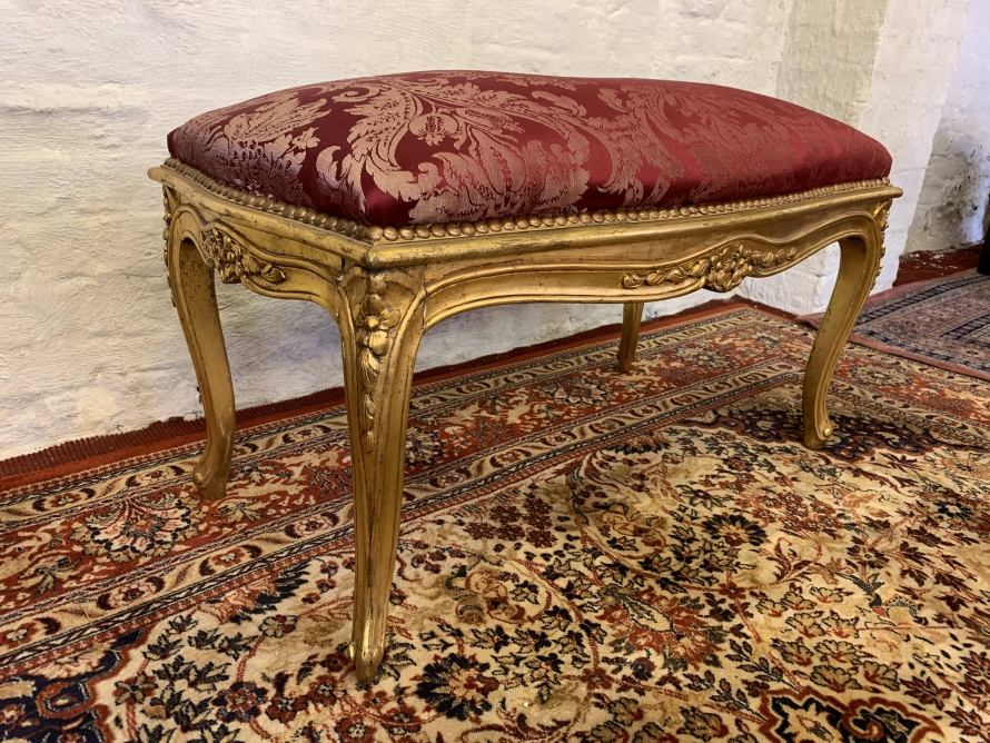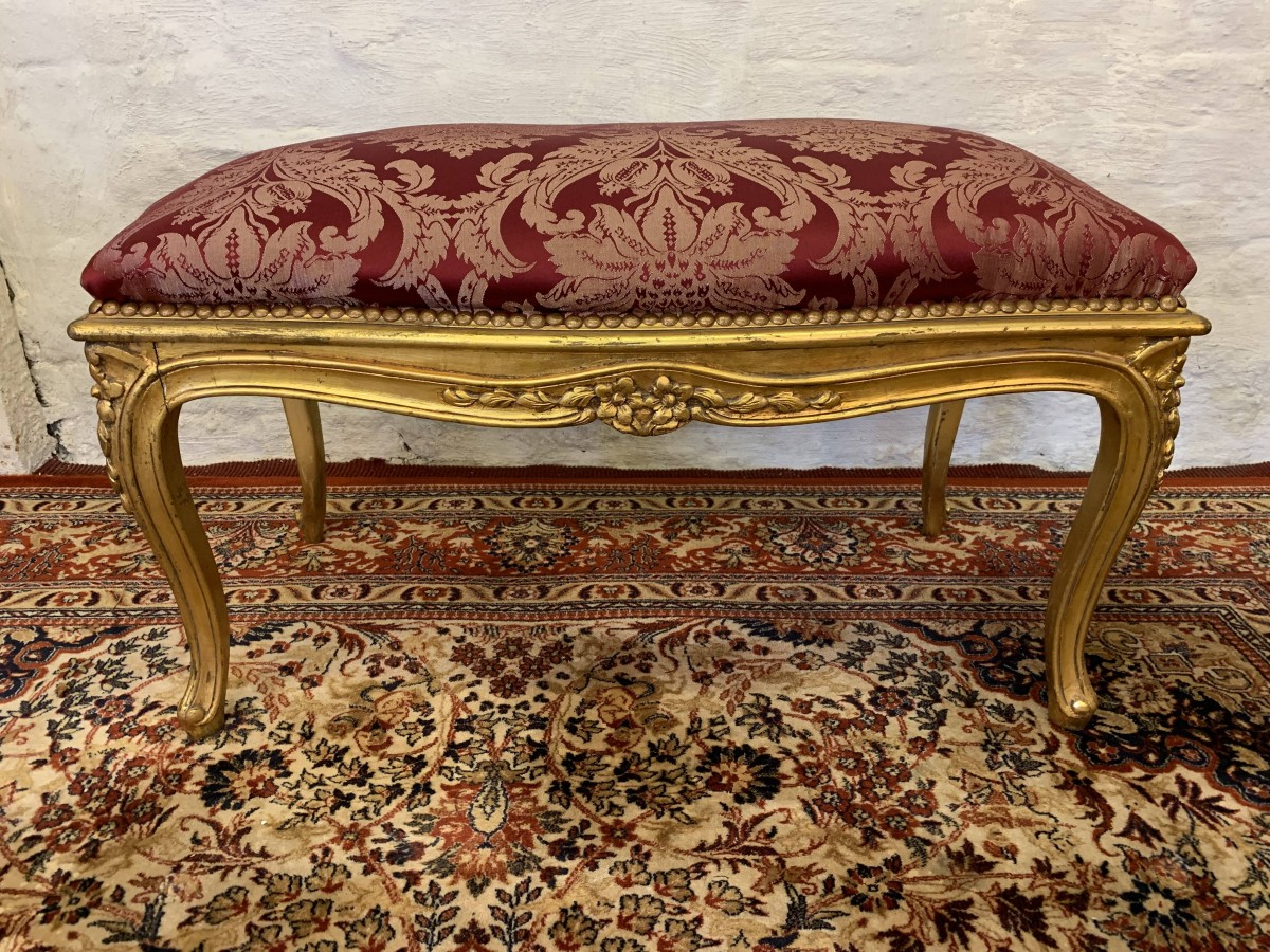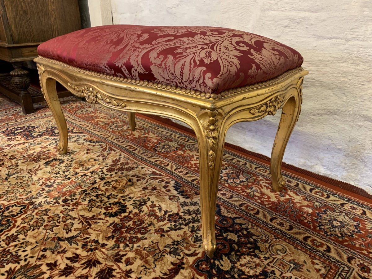 - Fabulous French Gilt Stool With Upholstered Seat – Now Sold