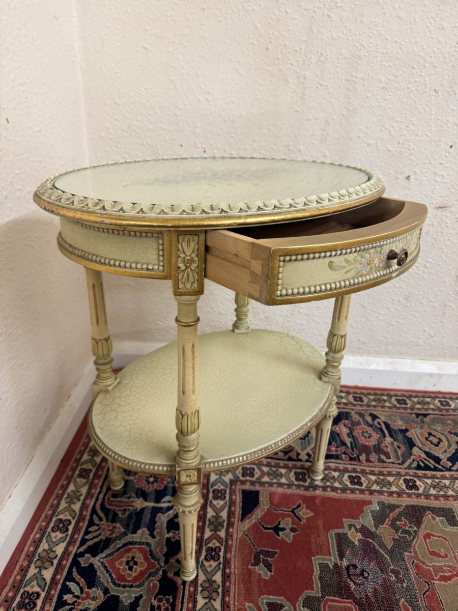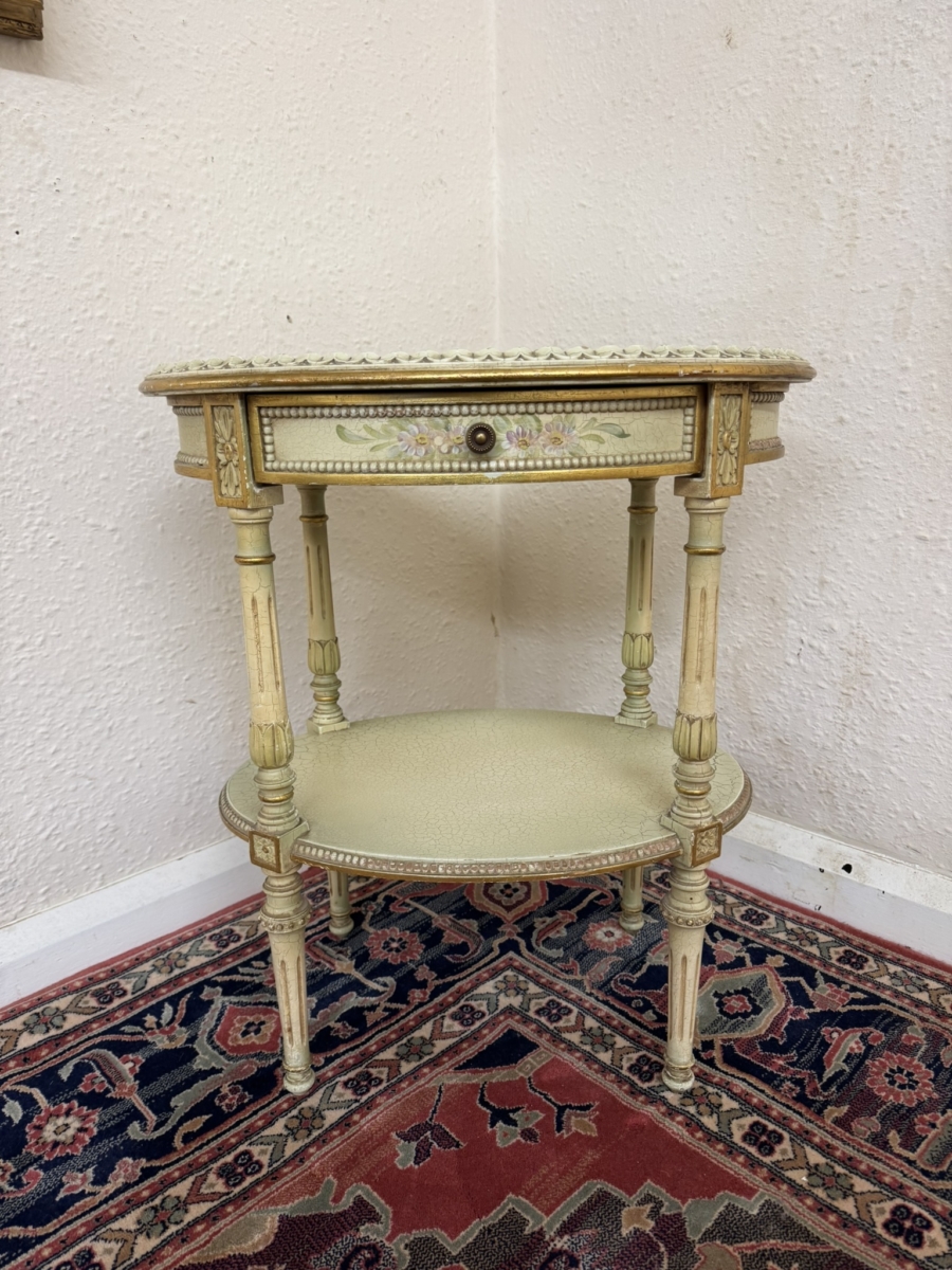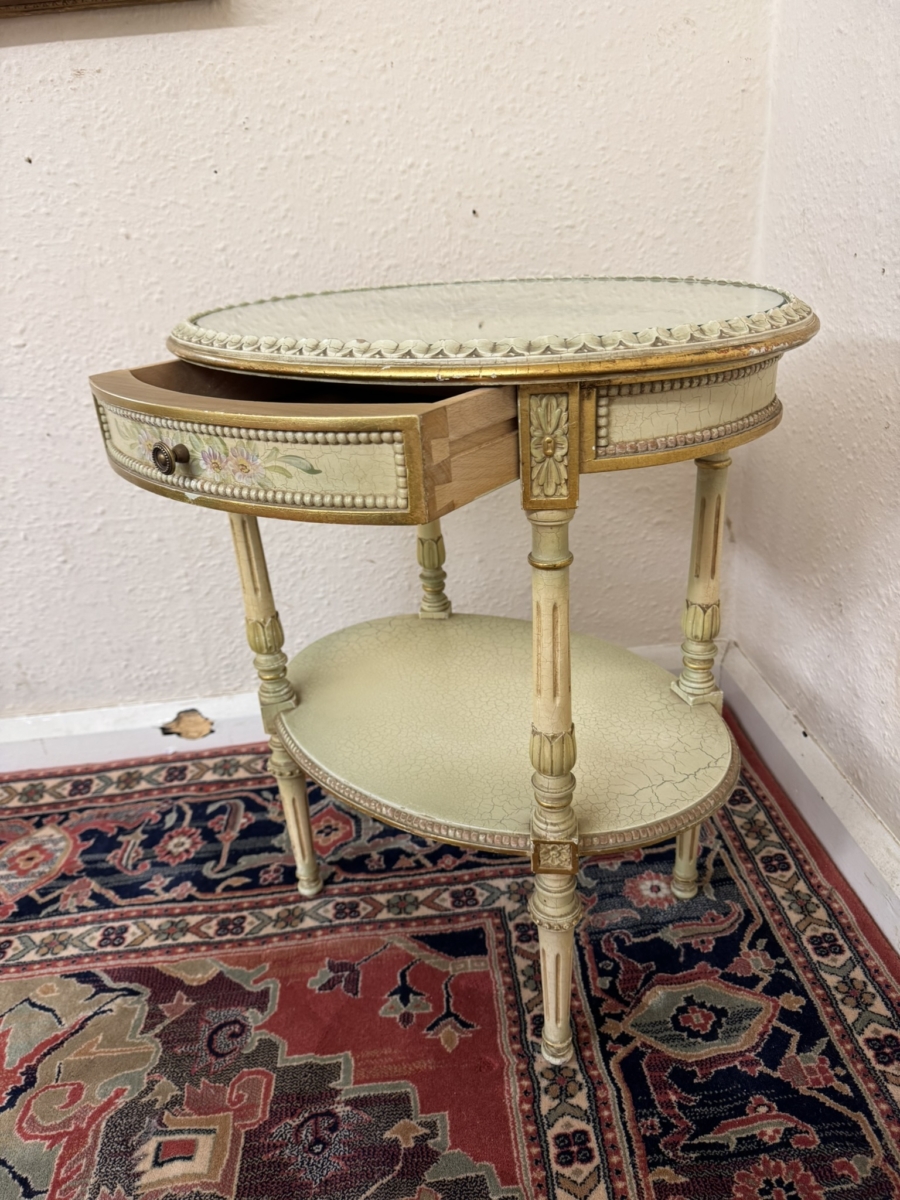 - FABULOUS FRENCH PAINTED OVAL ACCENT TABLE/SIDE TABLE WITH DRAWER