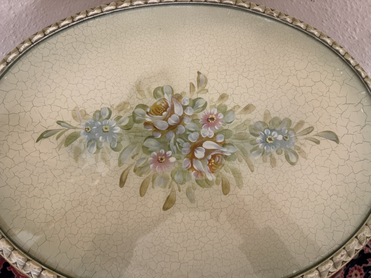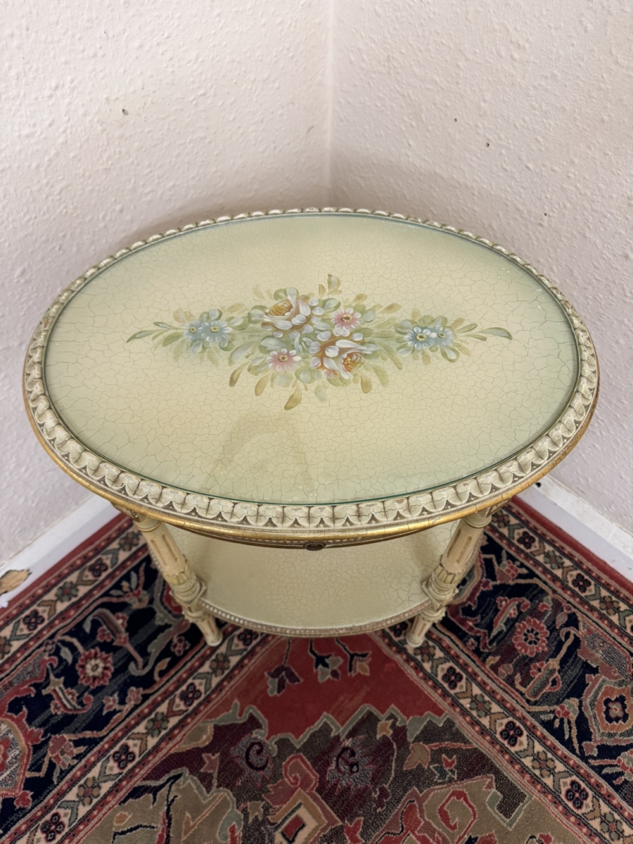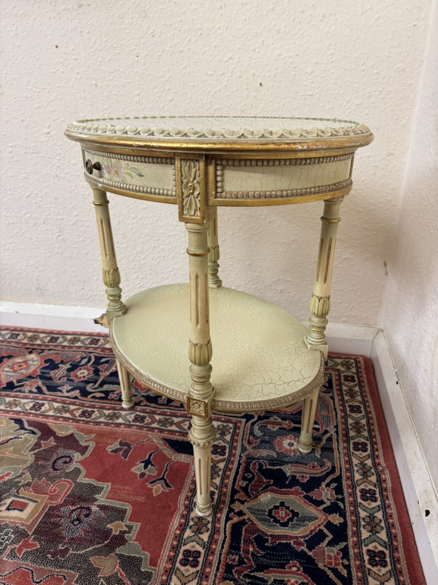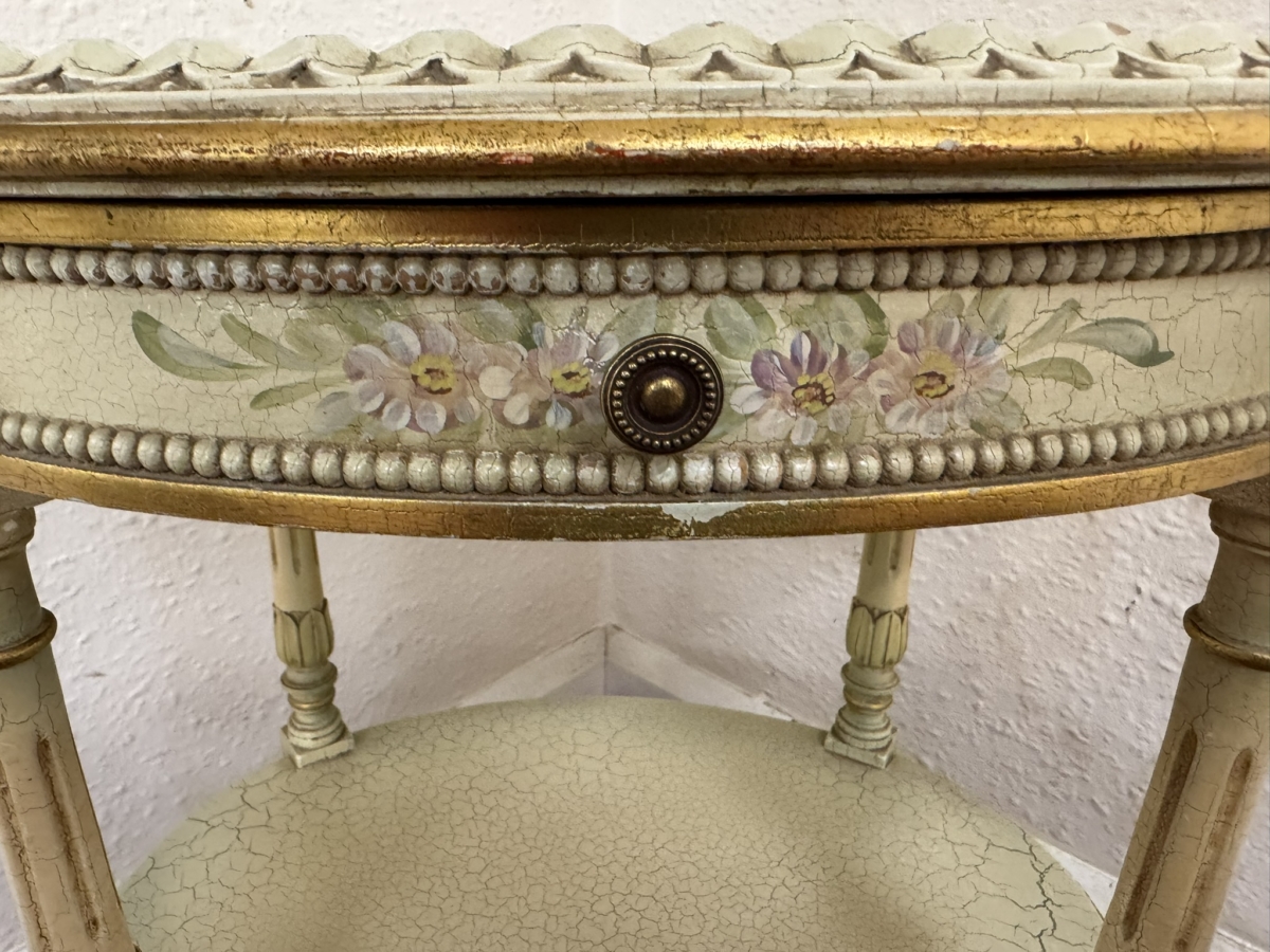 - FABULOUS FRENCH PAINTED OVAL ACCENT TABLE/SIDE TABLE WITH DRAWER