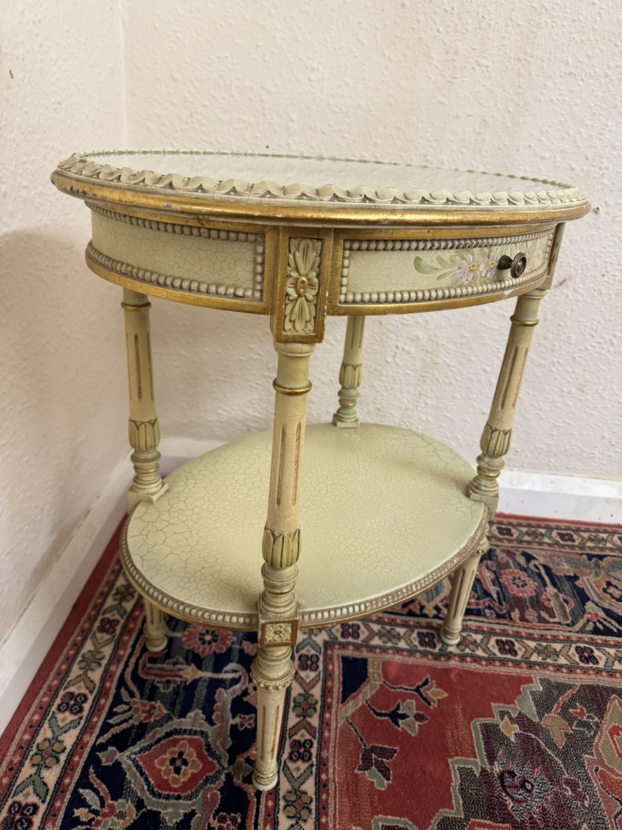FABULOUS FRENCH PAINTED OVAL ACCENT TABLE/SIDE TABLE WITH DRAWER
