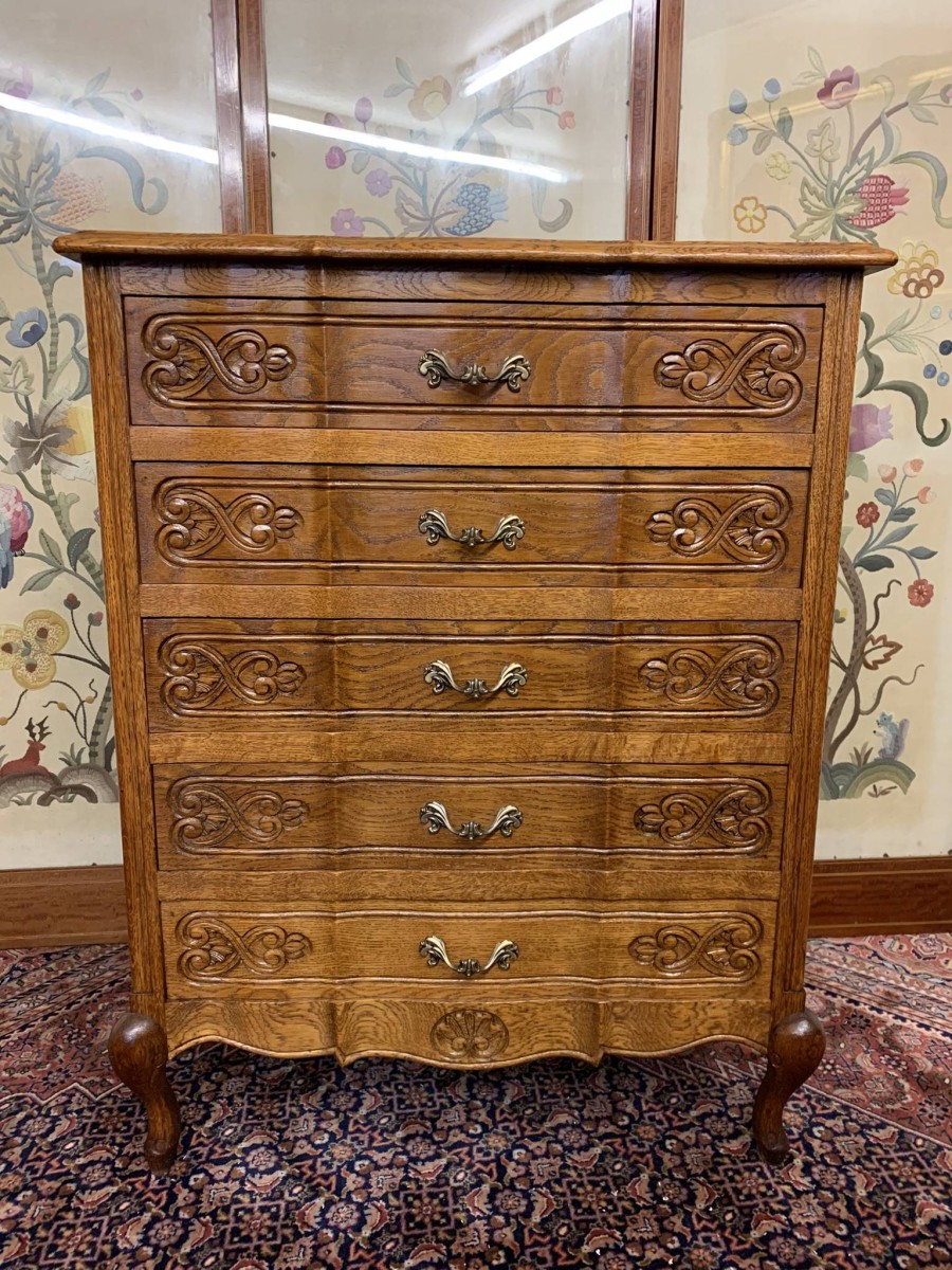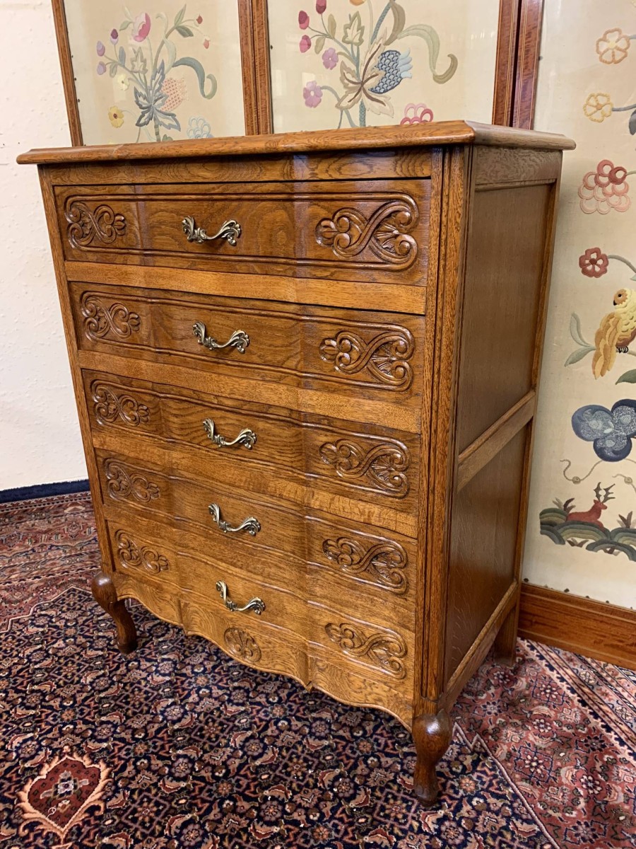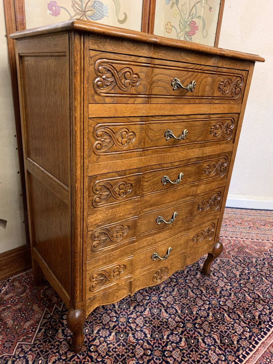 - Fabulous French Shaped Carved Oak Chest Of Five Drawers – Now Sold