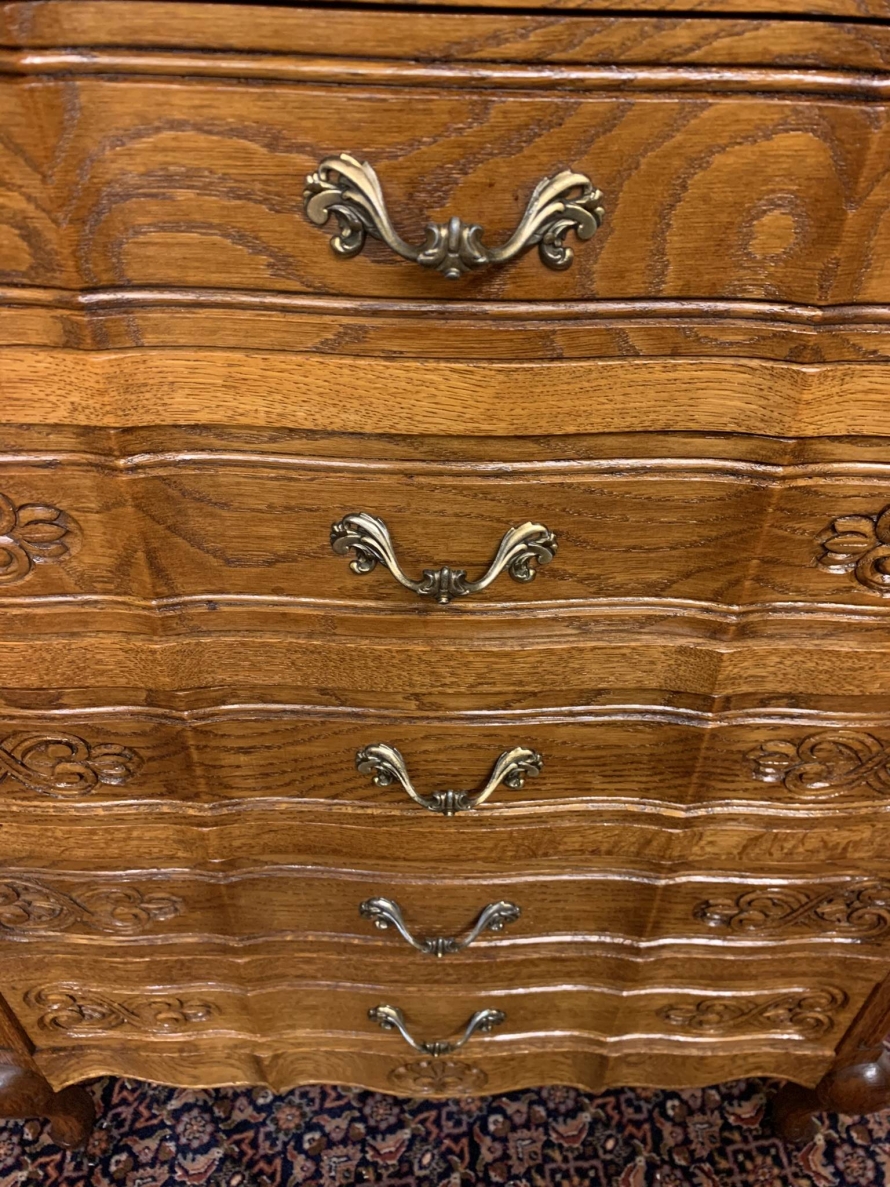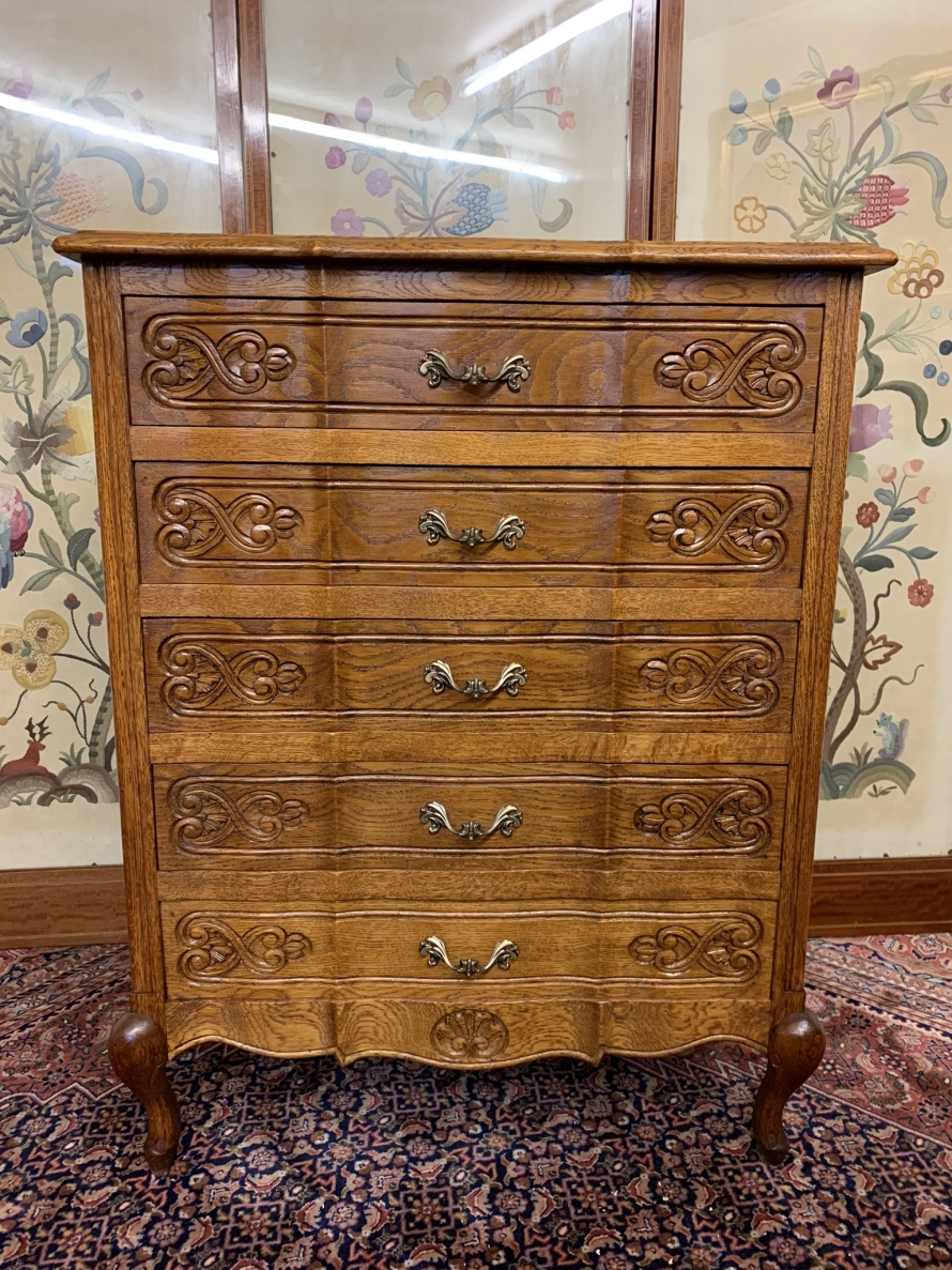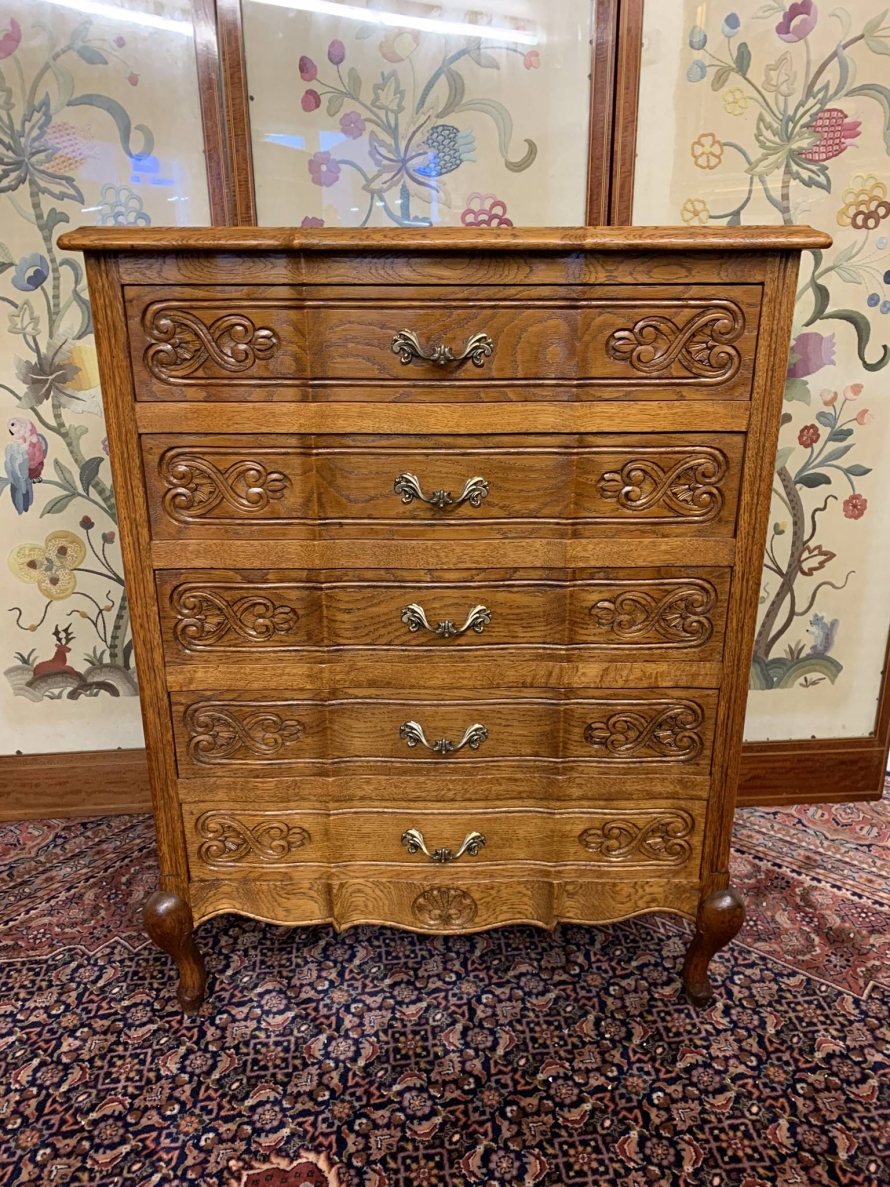 - Fabulous French Shaped Carved Oak Chest Of Five Drawers – Now Sold