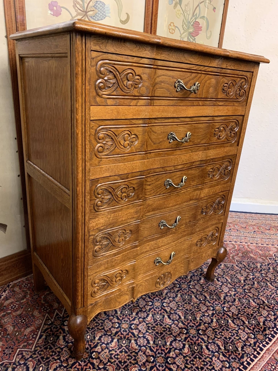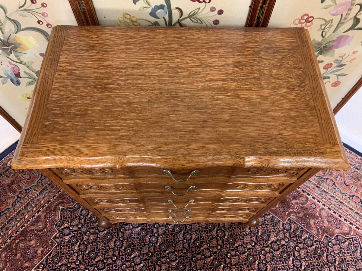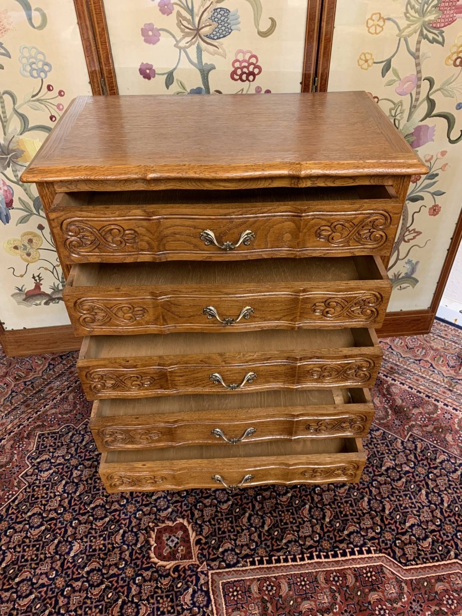 Fabulous French Shaped Carved Oak Chest Of Five Drawers – Now Sold