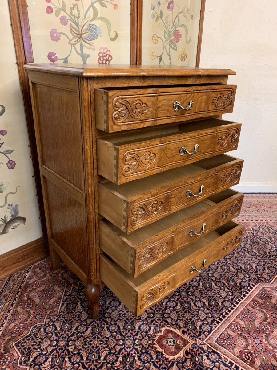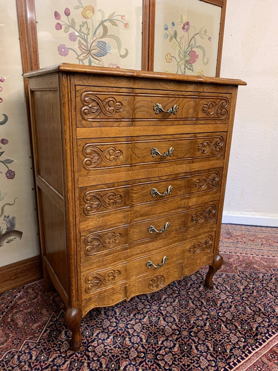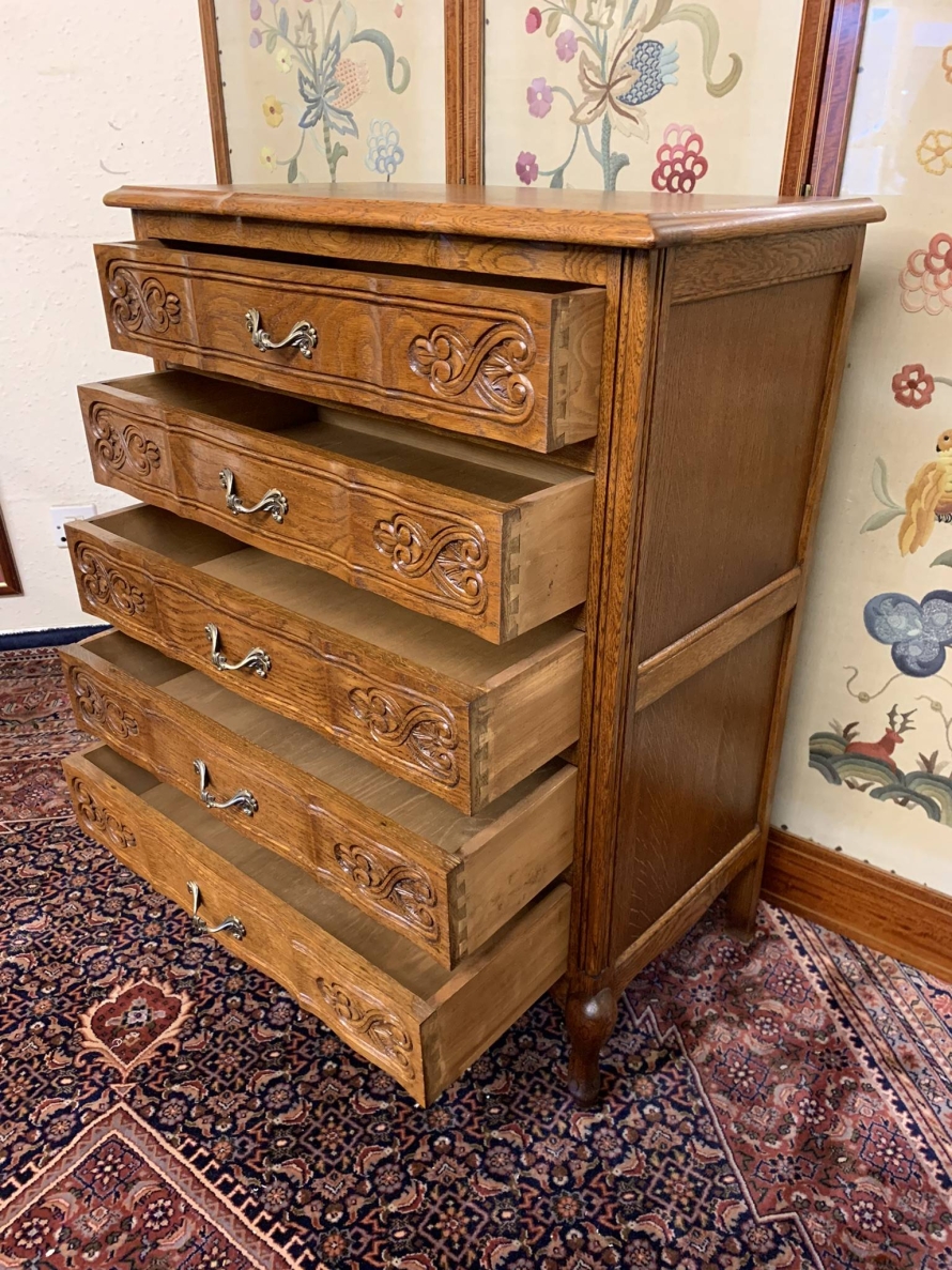 Fabulous French Shaped Carved Oak Chest Of Five Drawers – Now Sold