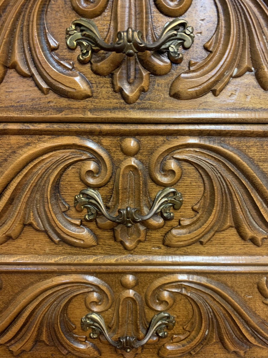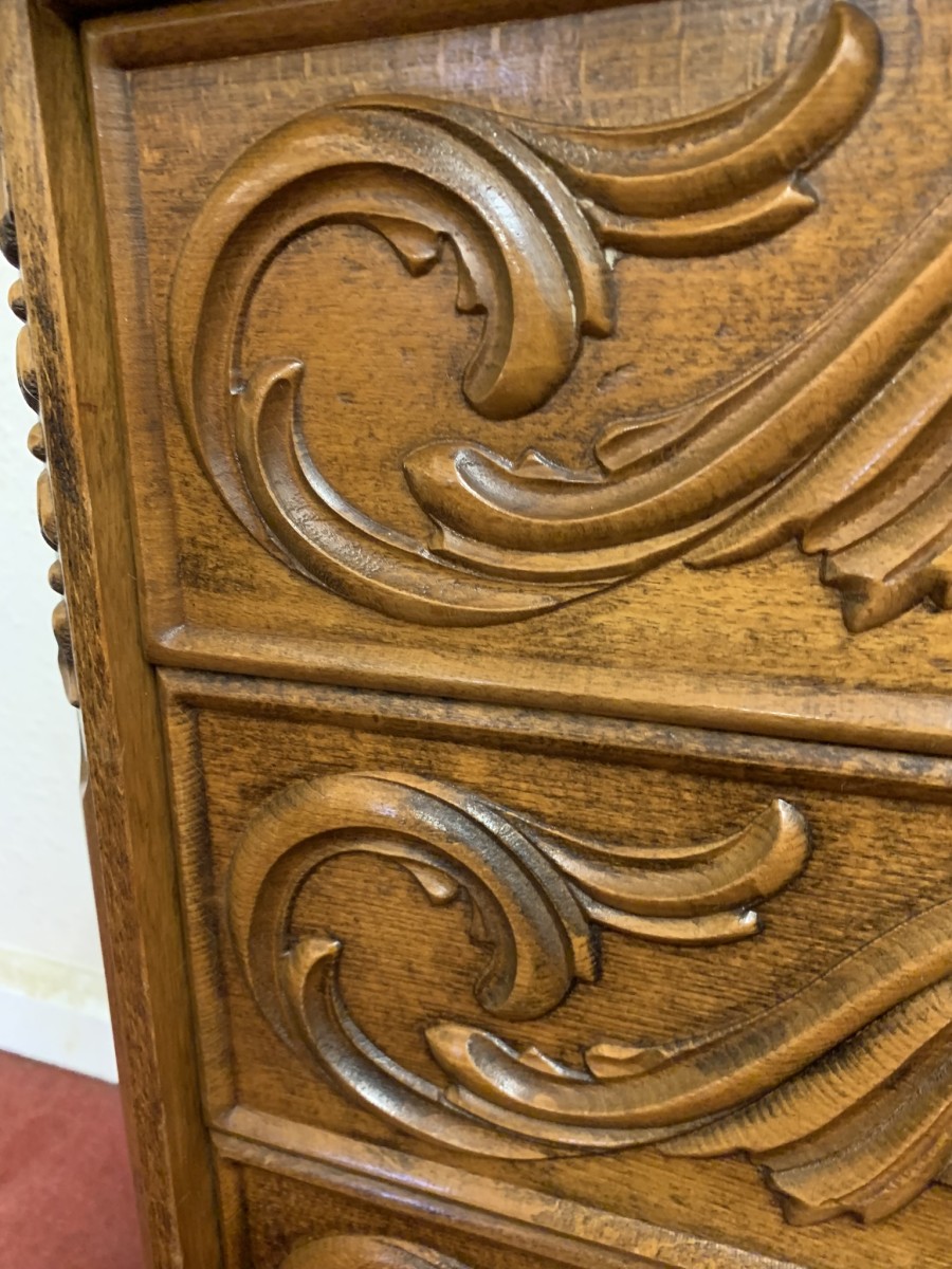 Fabulous French Shaped Carved Oak Commode/chest Of Four Drawers (4) – Now Sold