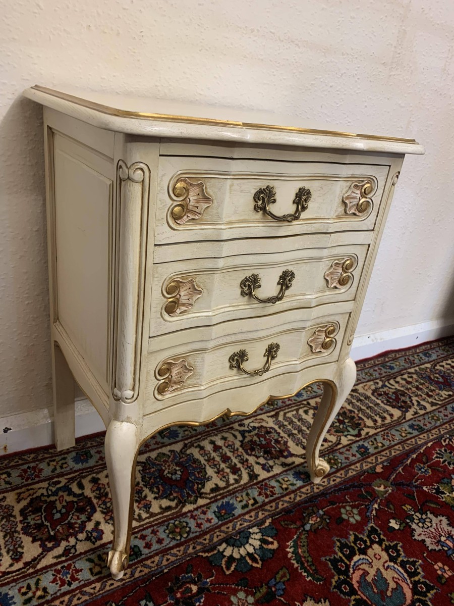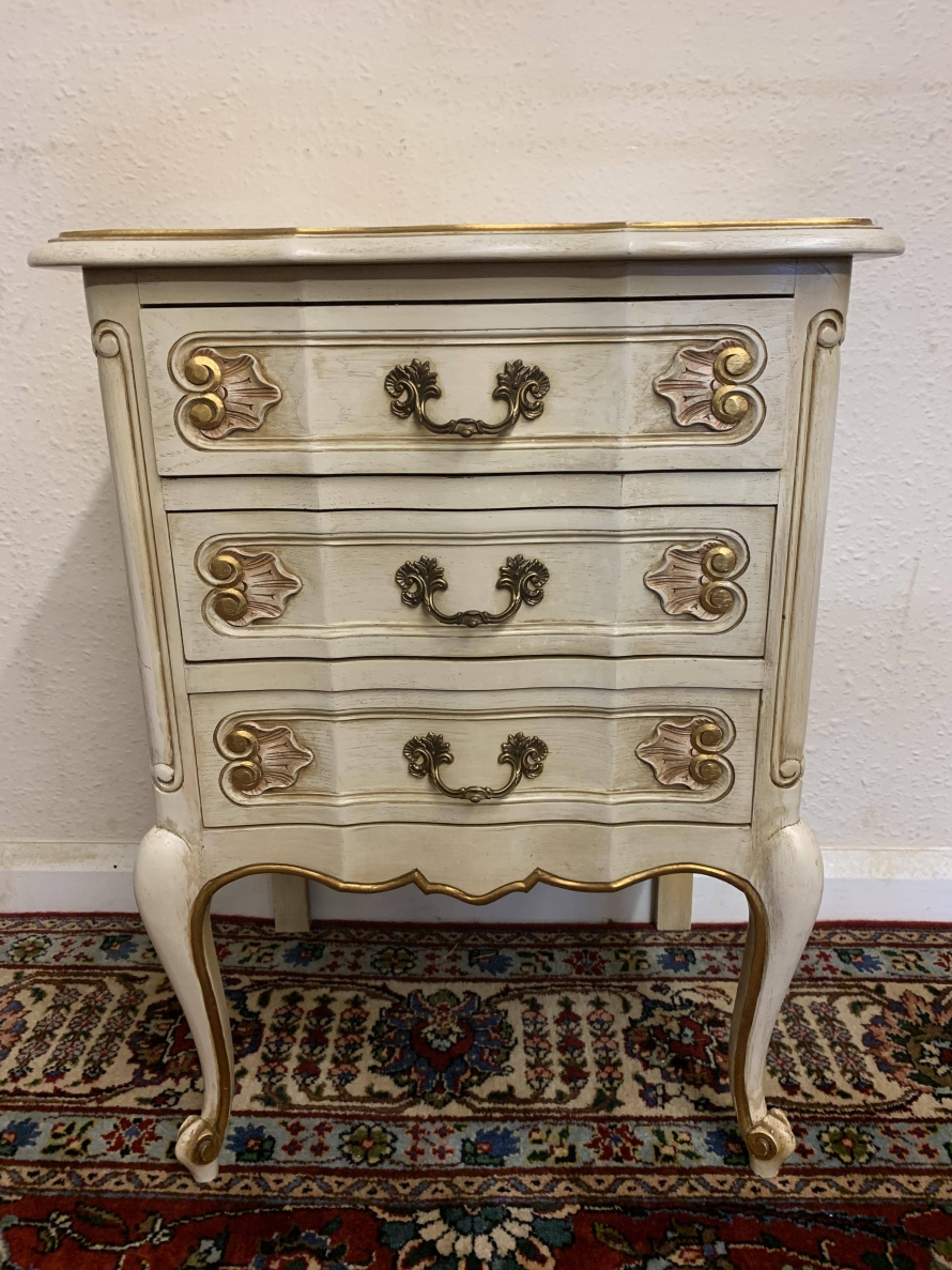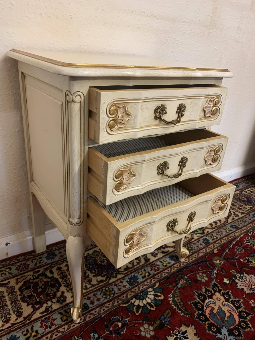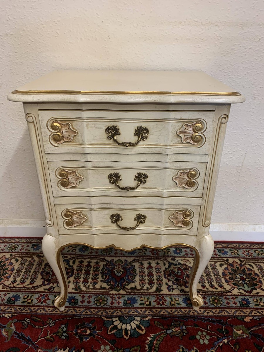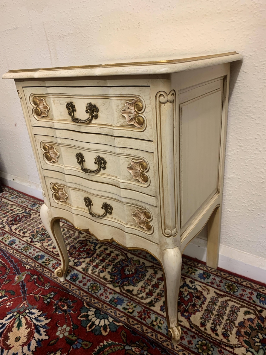 Fabulous French Shaped Cream And Gilt Chest Of Three Drawers – Now Sold