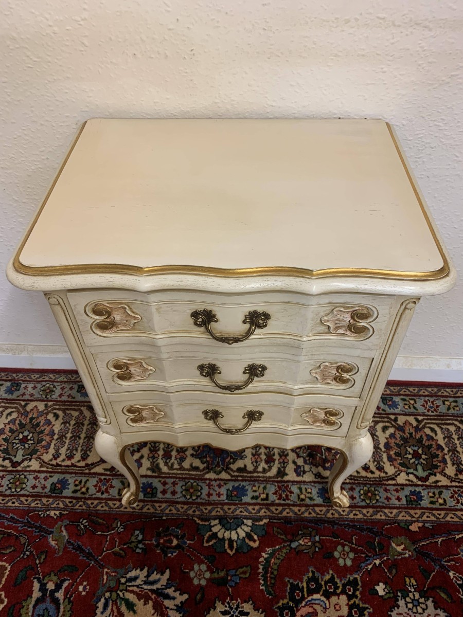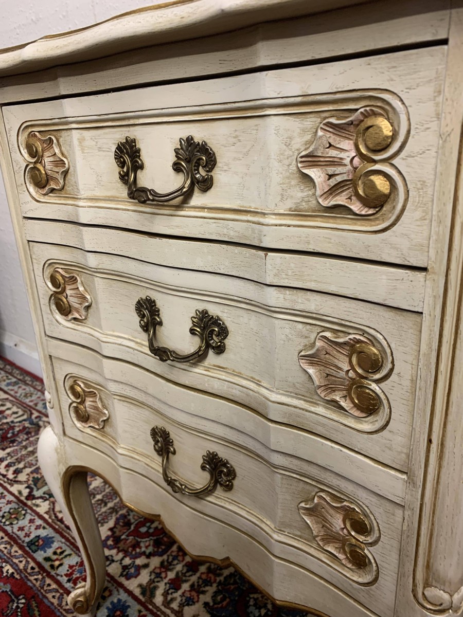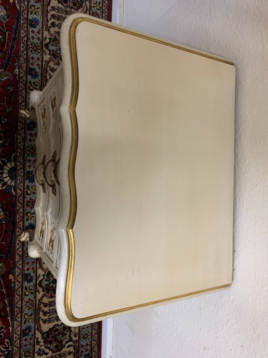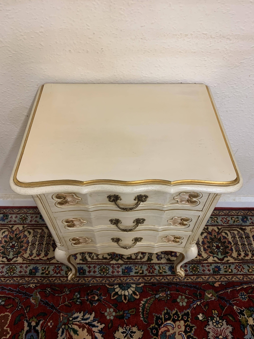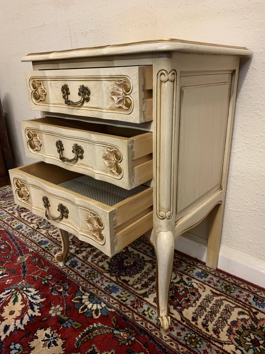 Fabulous French Shaped Cream And Gilt Chest Of Three Drawers – Now Sold