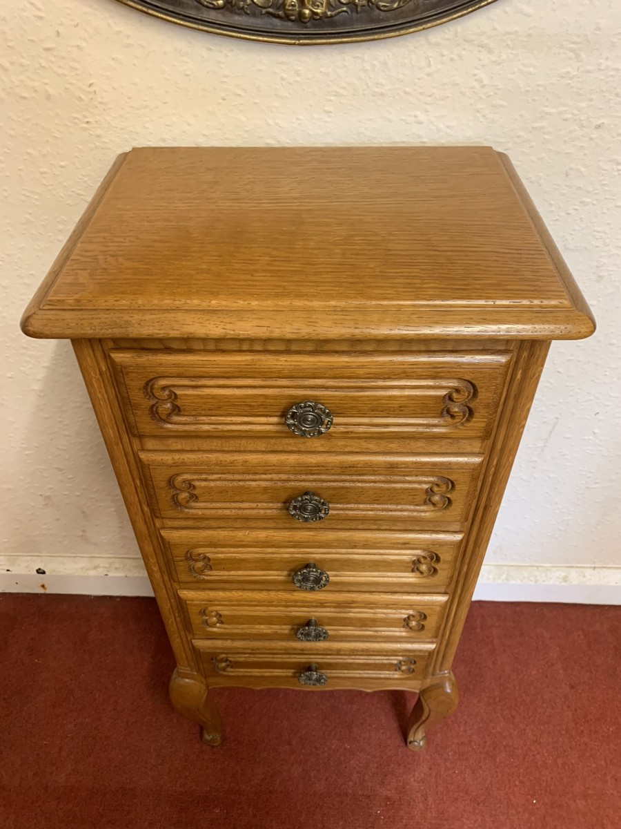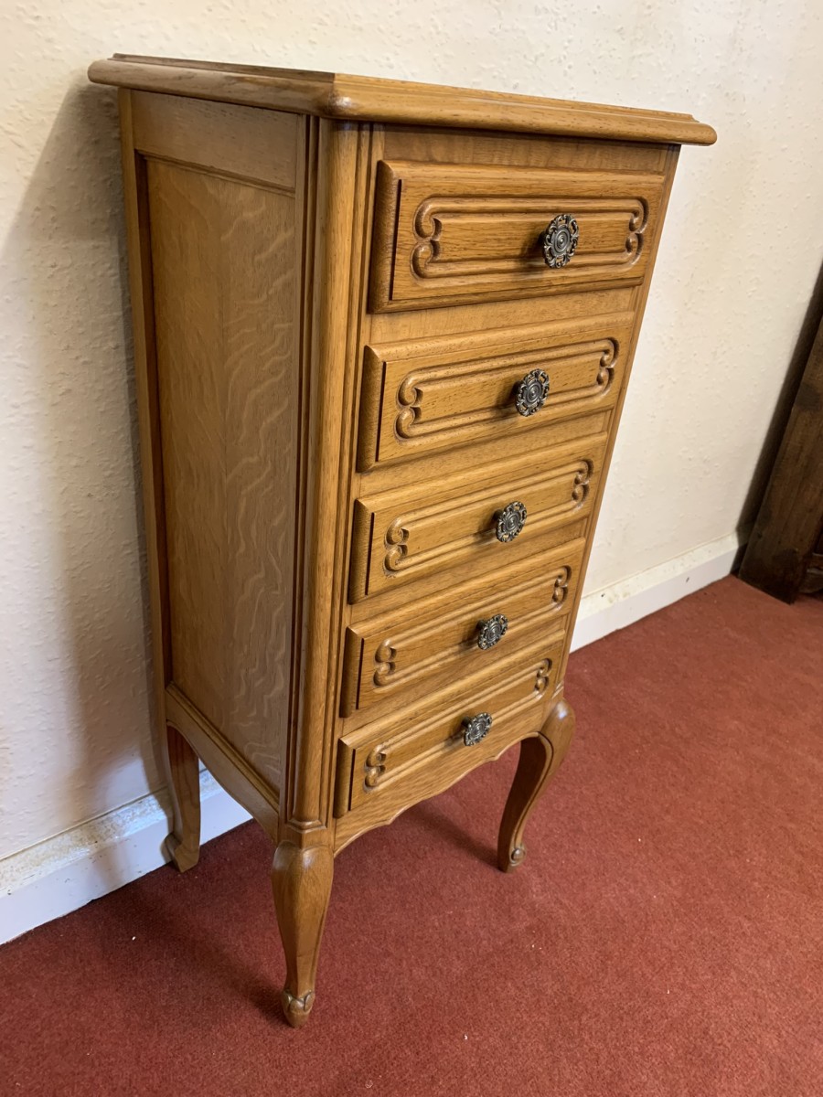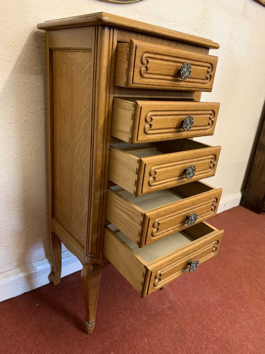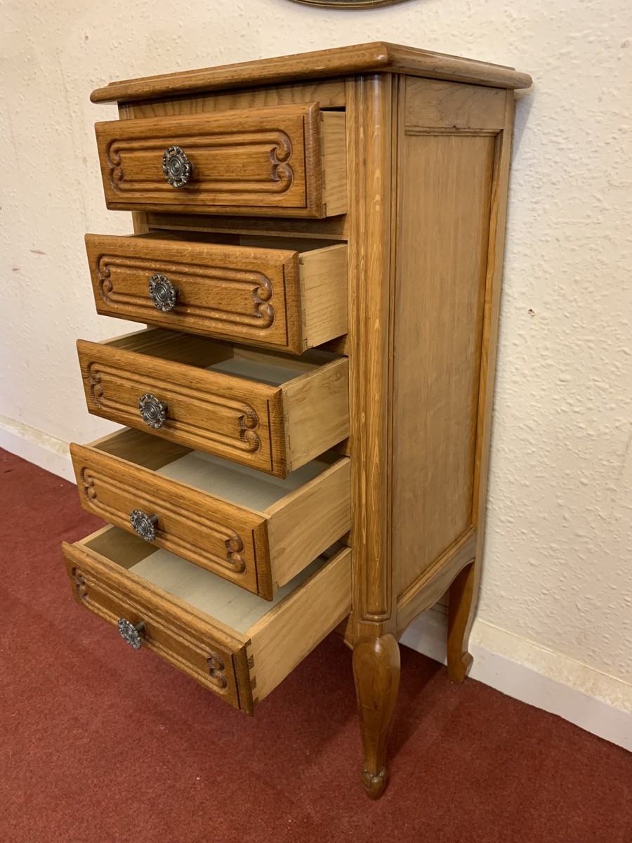 - Fabulous French Slim Oak Chest Of Five Drawers (2)