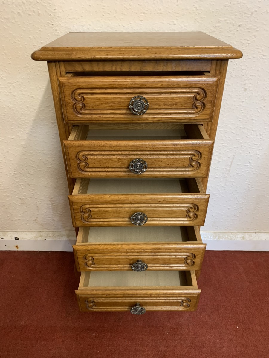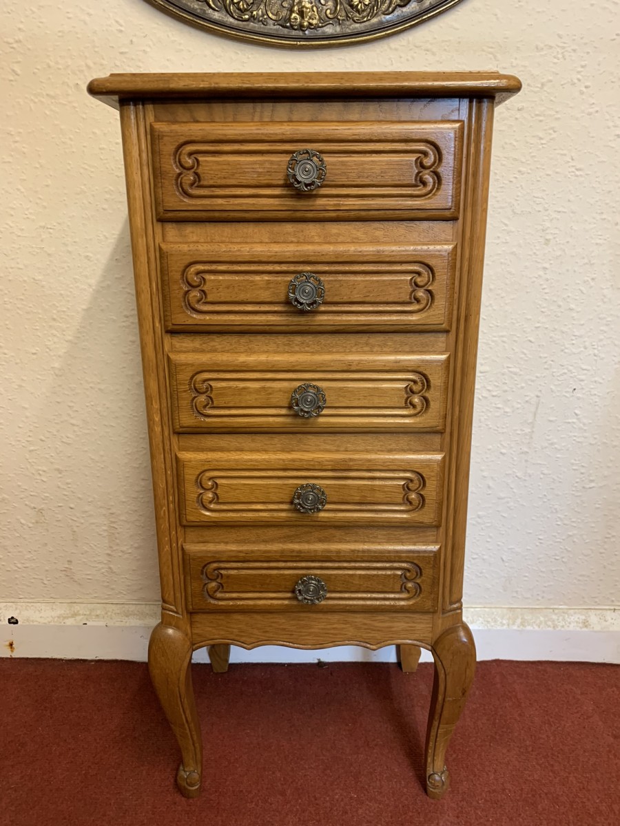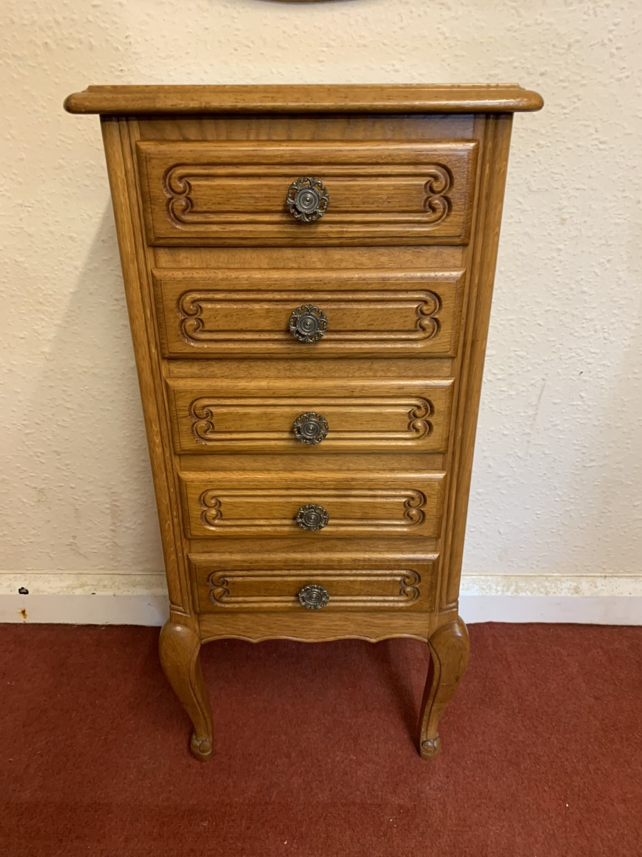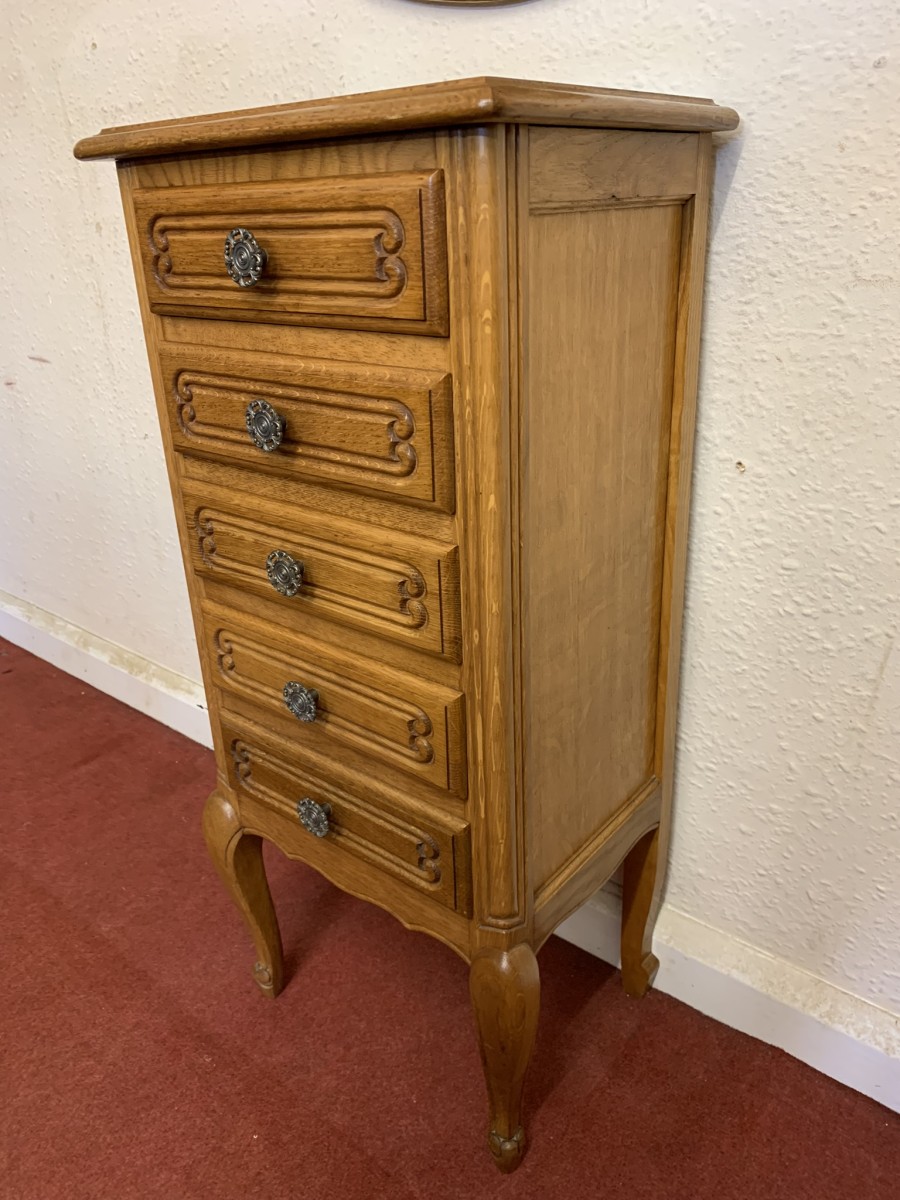 - Fabulous French Slim Oak Chest Of Five Drawers (2)