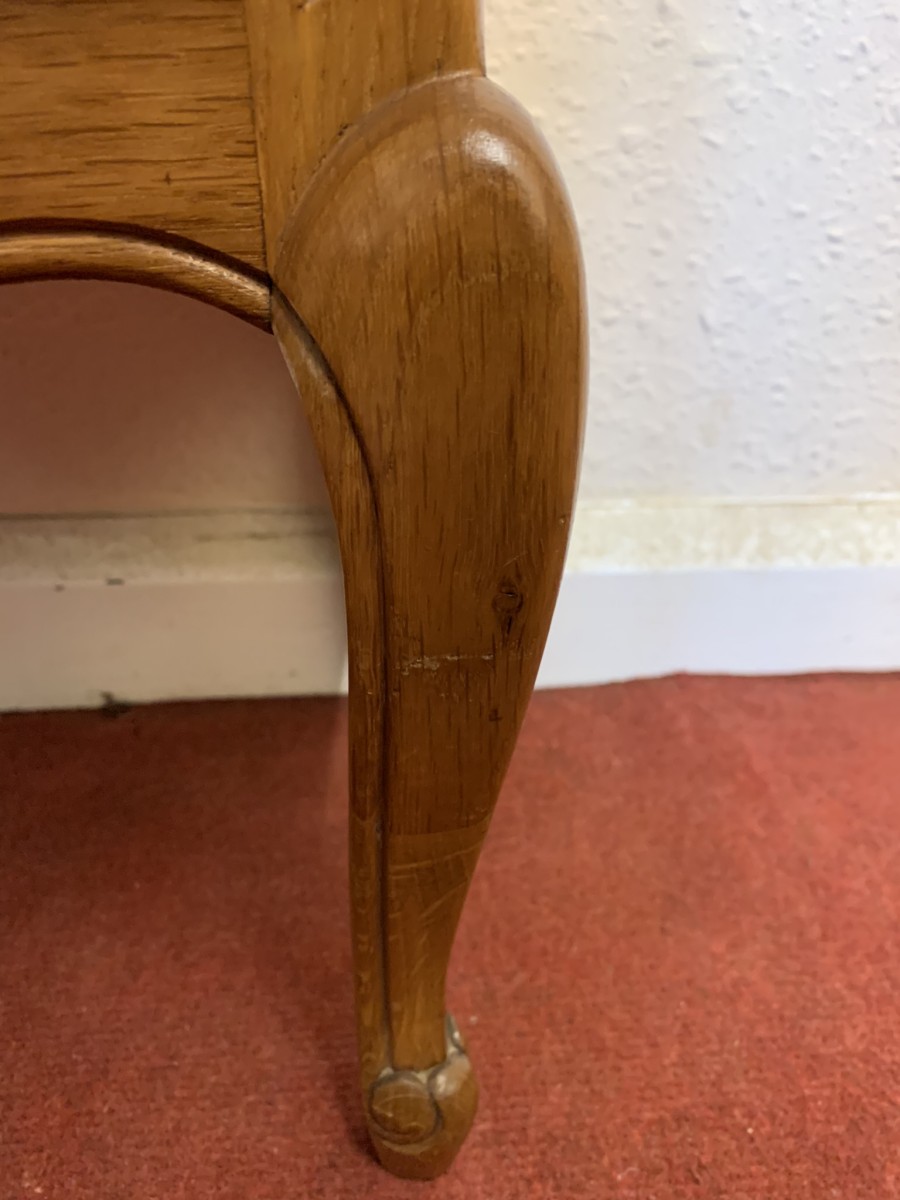 This super chest of slim proportions is in excellent condition. The oversailing top sits above five carved drawers, each drawer having an ornate pull handle. Shaped skirt the chest stands on four cabriole shaped legs.