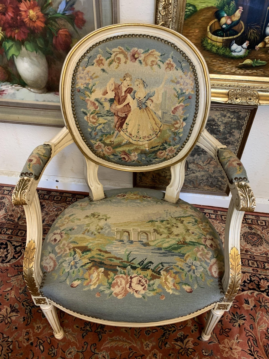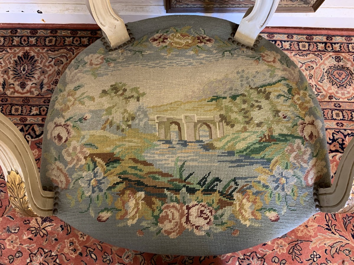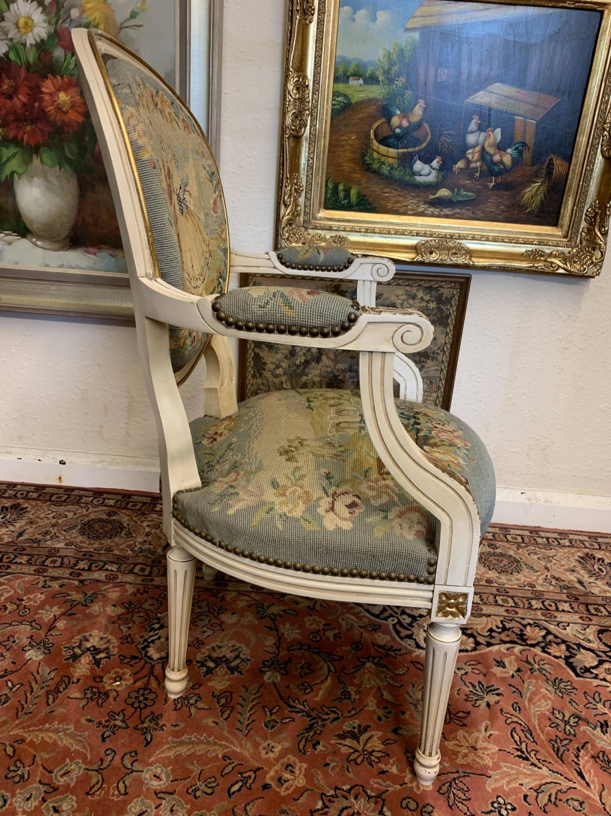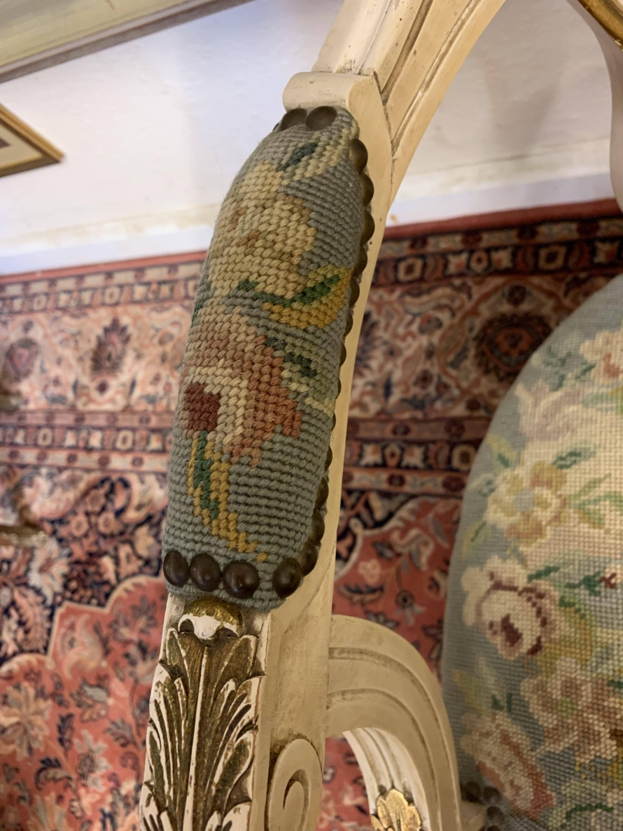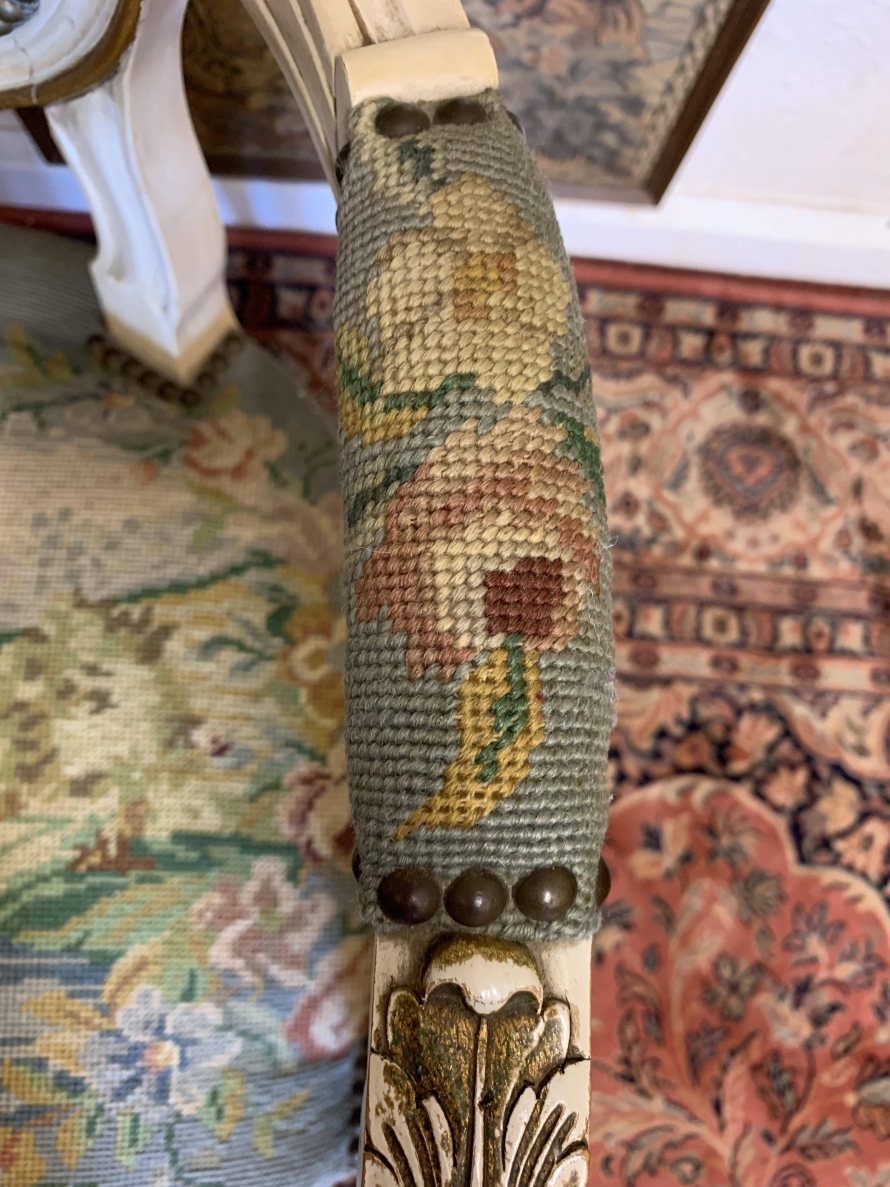 - Fabulous French Whie And Gilt Louis Xv Needlepoint Chair – Now Sold