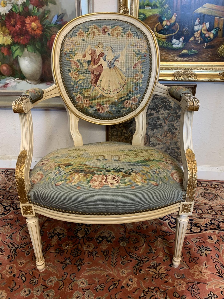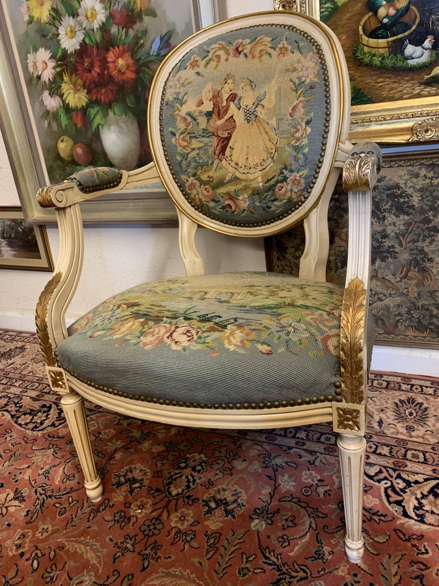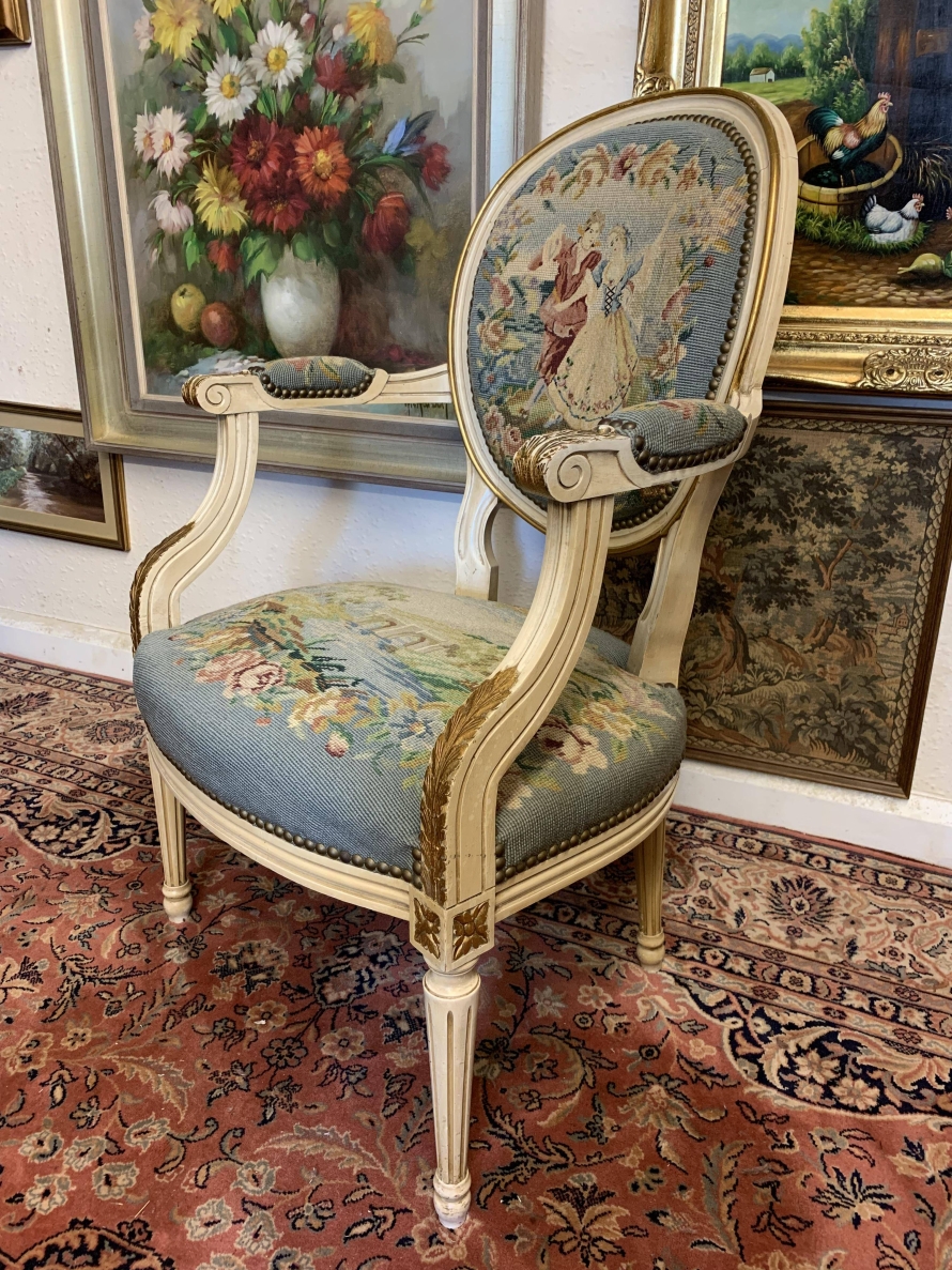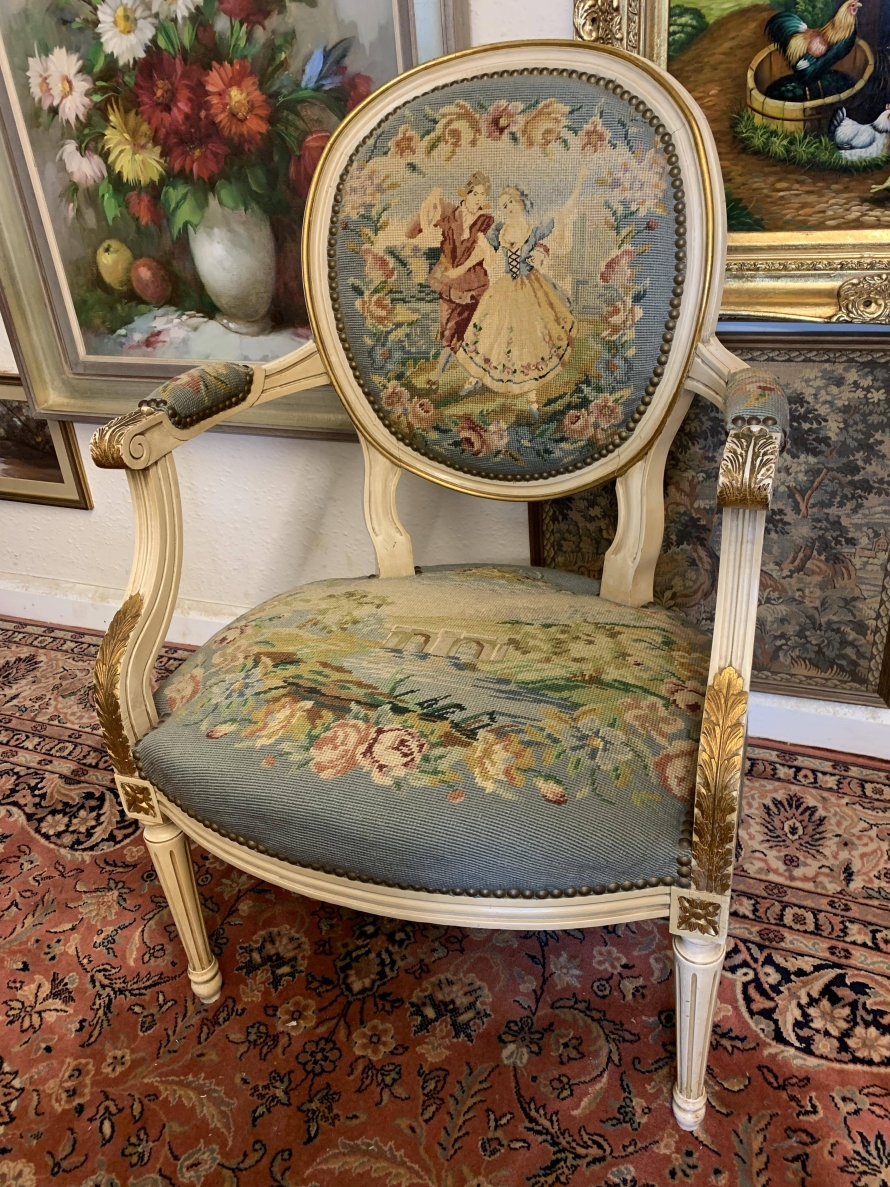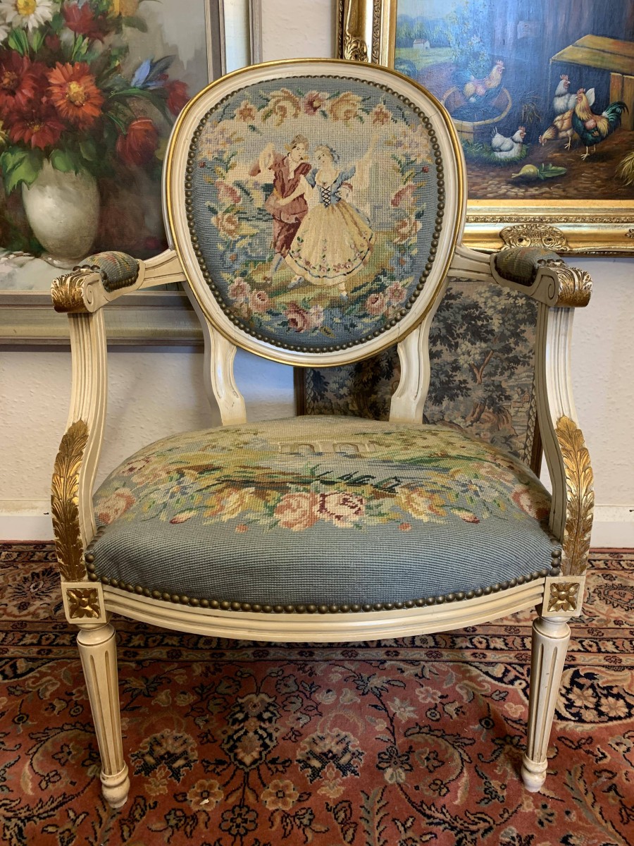 - Fabulous French Whie And Gilt Louis Xv Needlepoint Chair – Now Sold