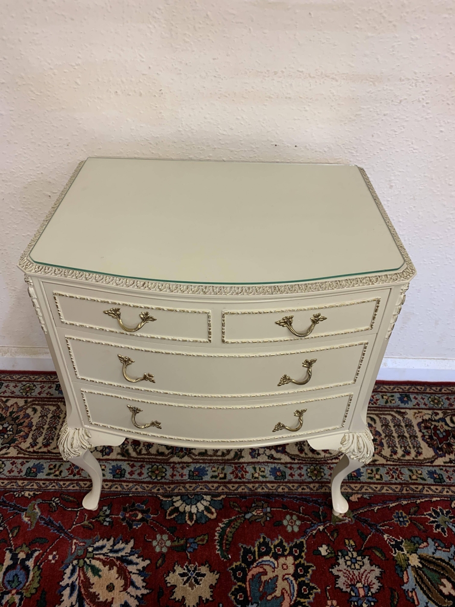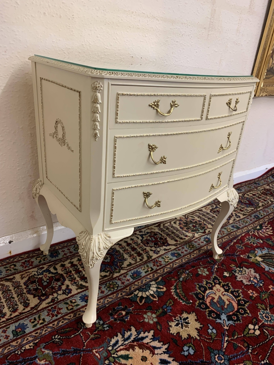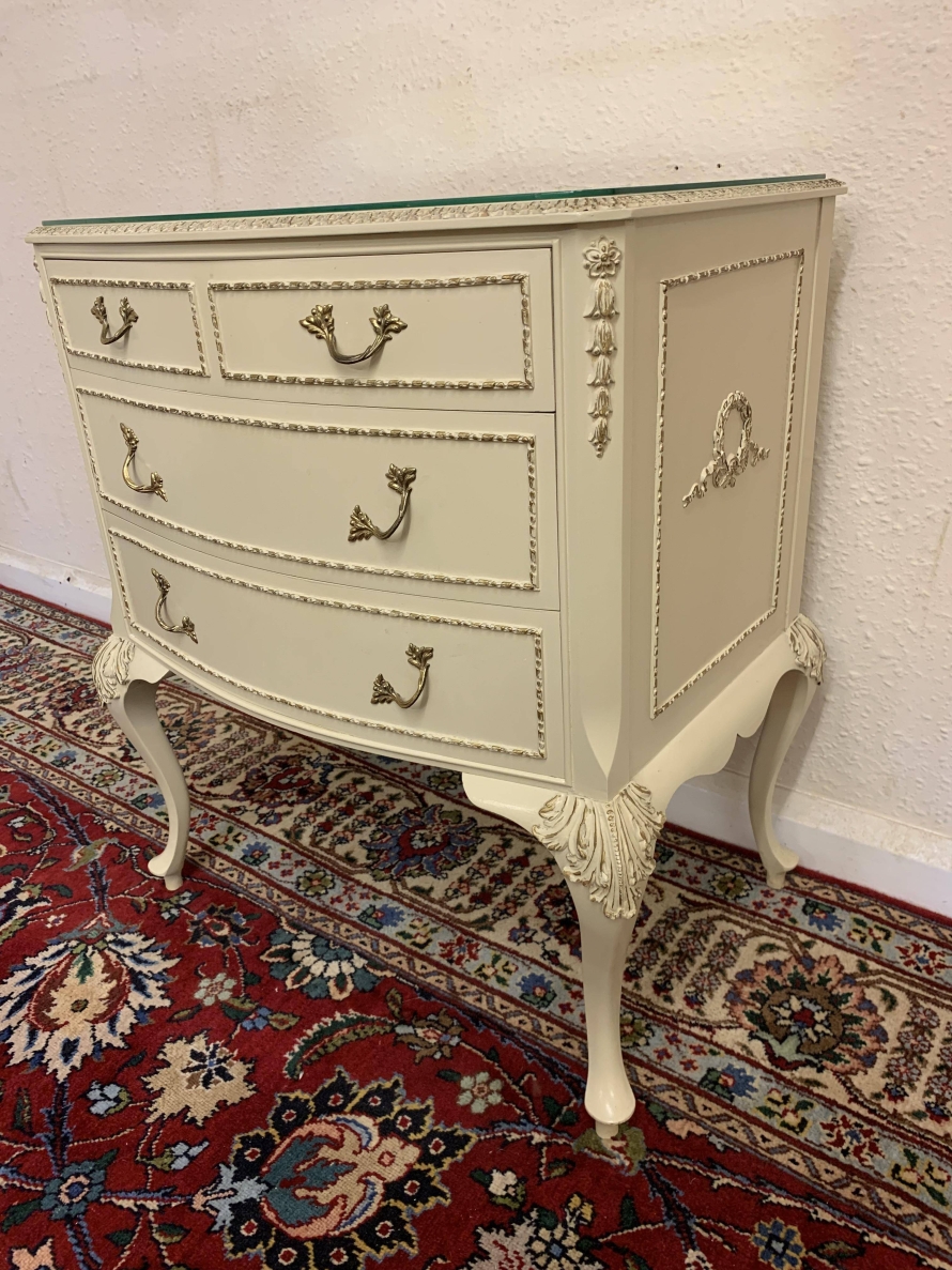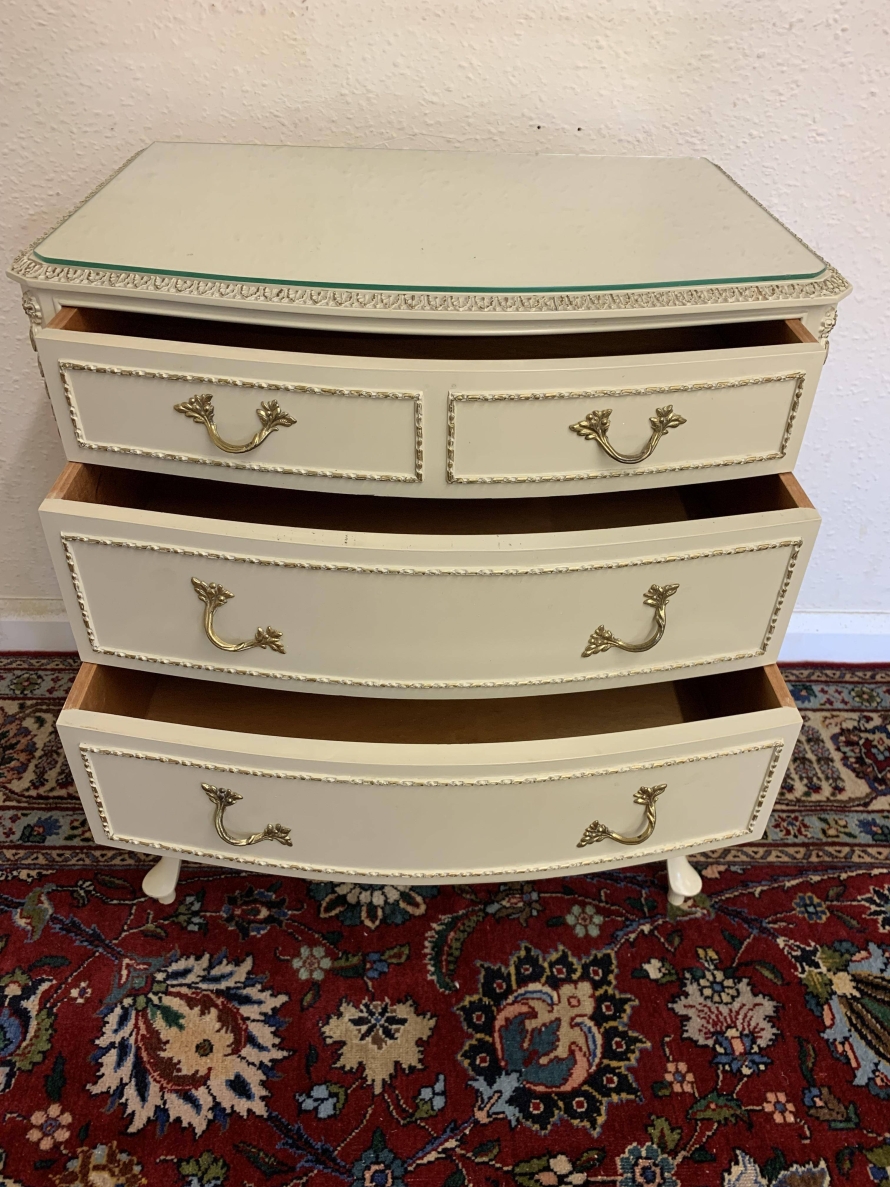 Fabulous Louis Xv Style Cream And Gilt Bow Front Chest Of Three Drawers – Now Sold
