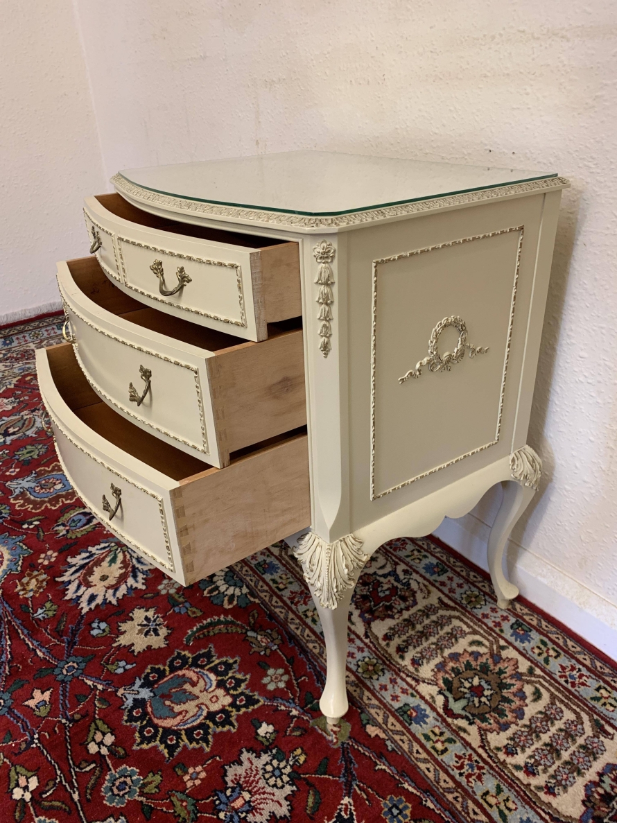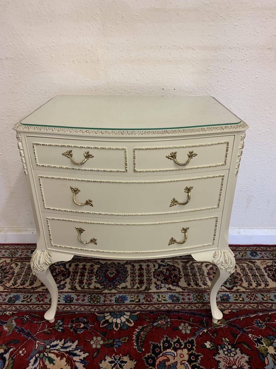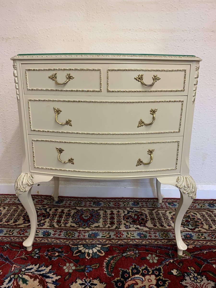 Fabulous Louis Xv Style Cream And Gilt Bow Front Chest Of Three Drawers – Now Sold