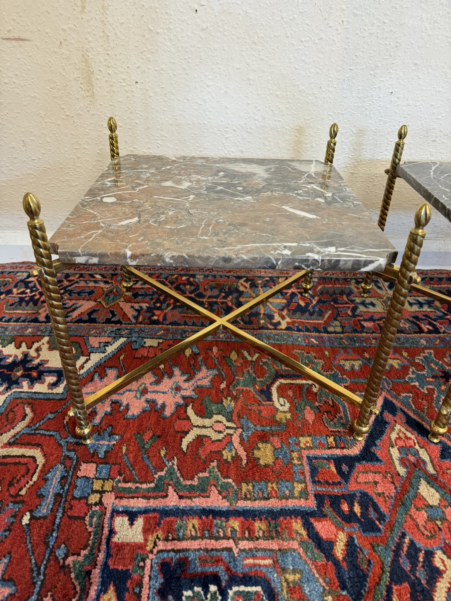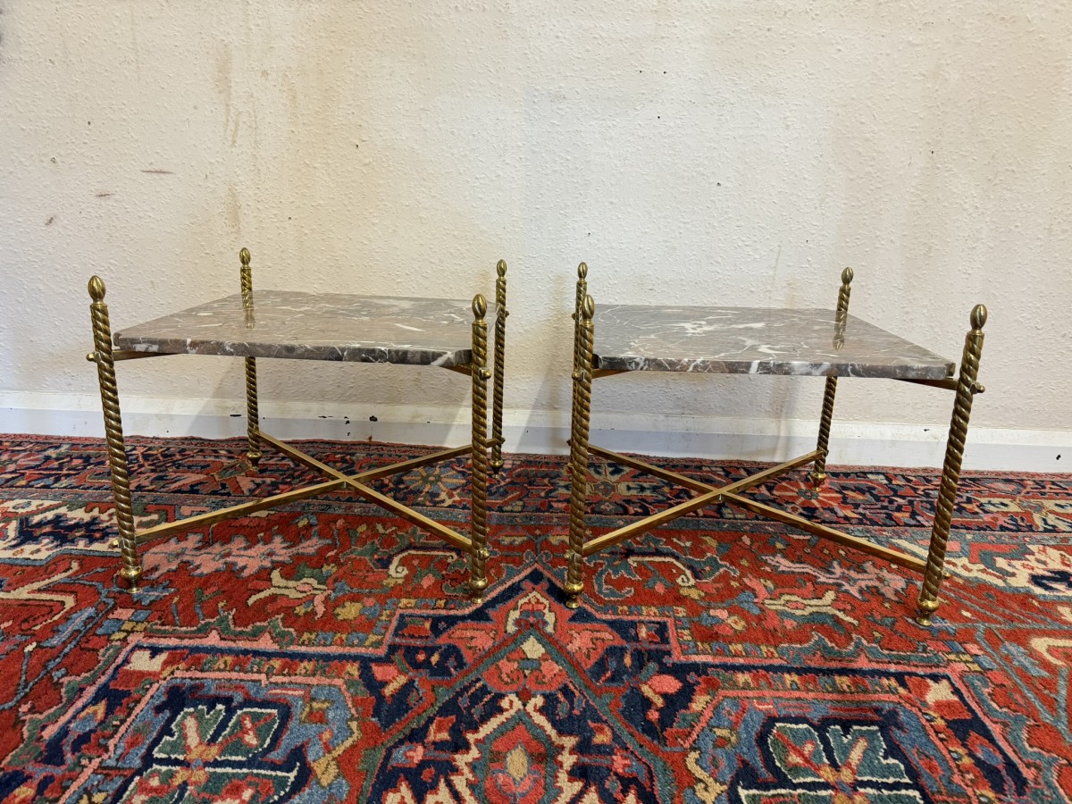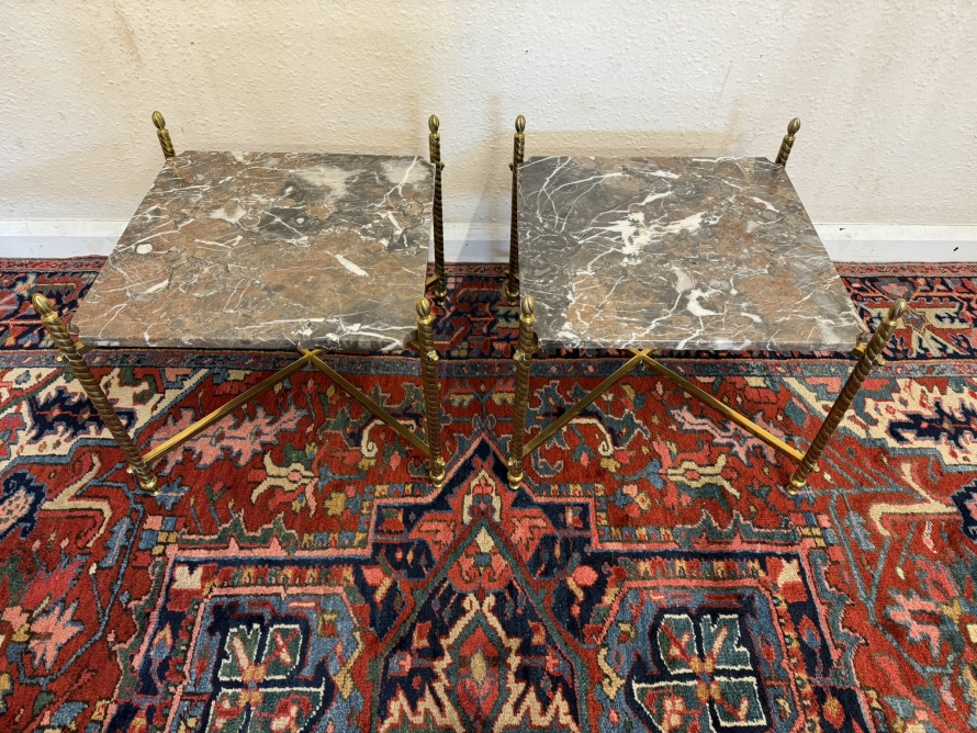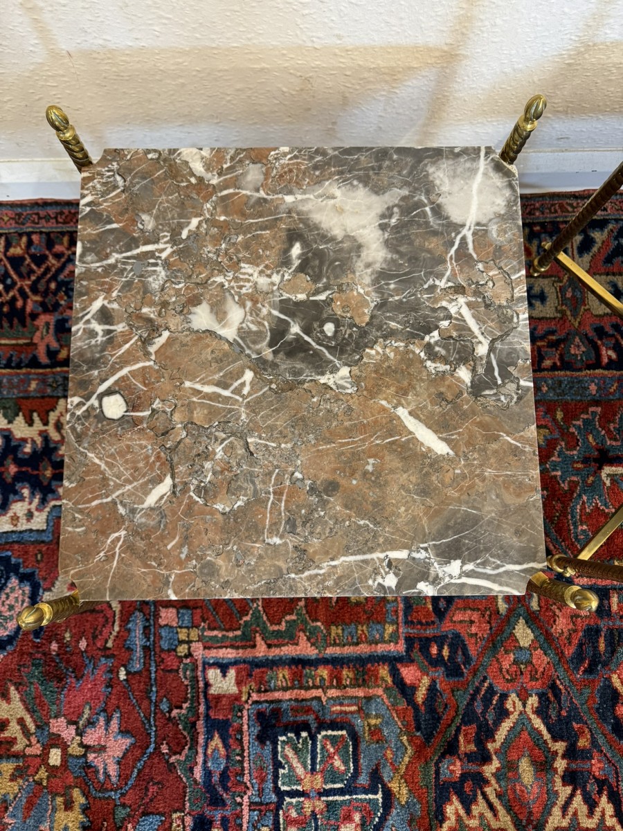 - Fabulous Pair Of Antique Brass And Marble End Tables Circa 1920
