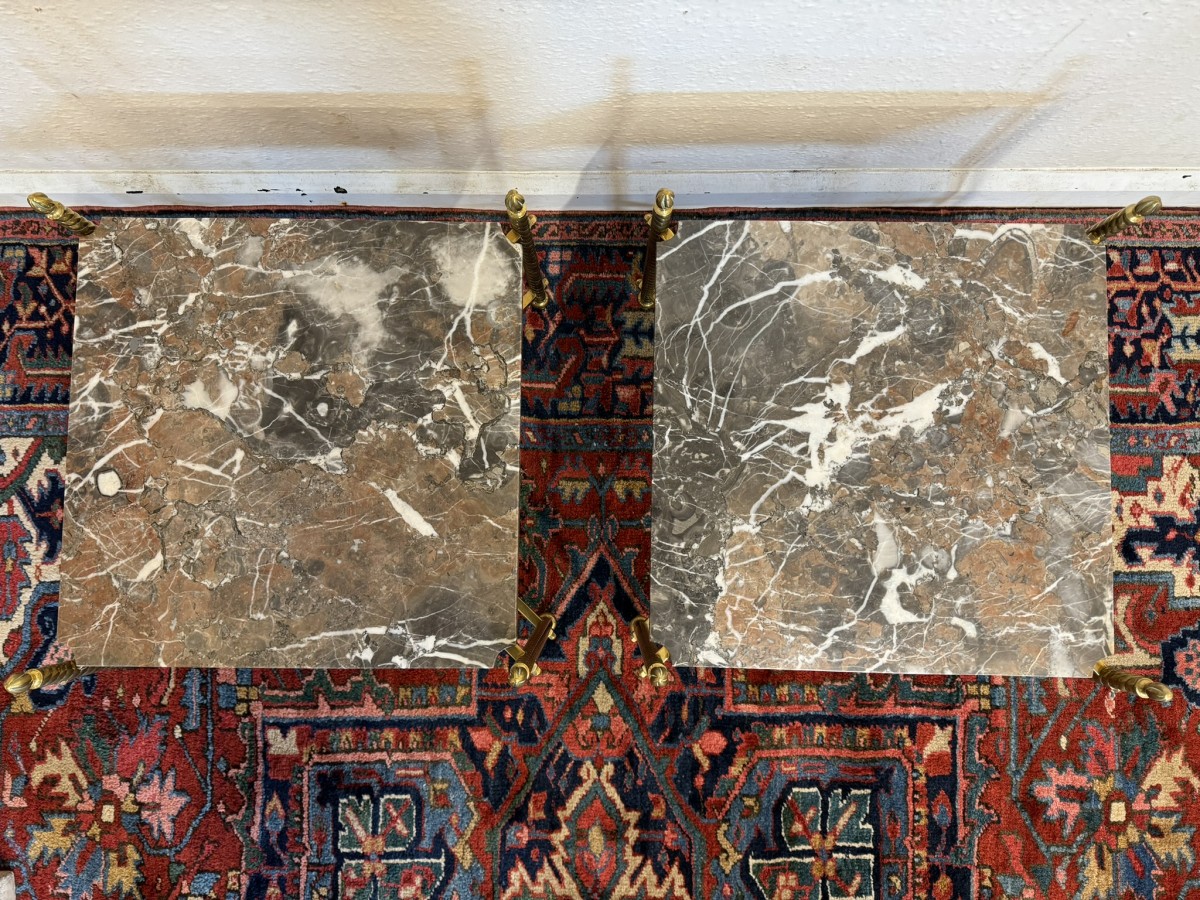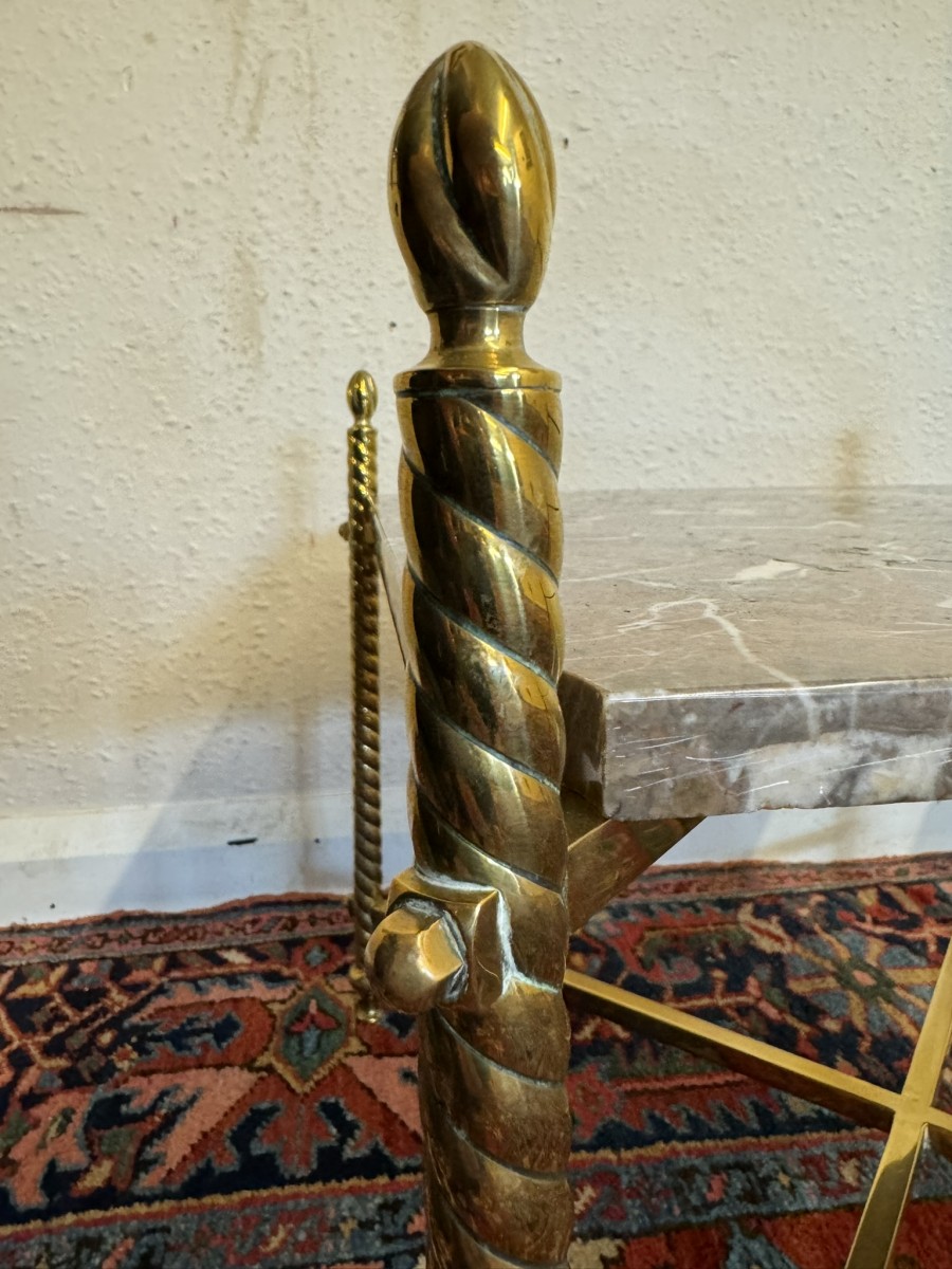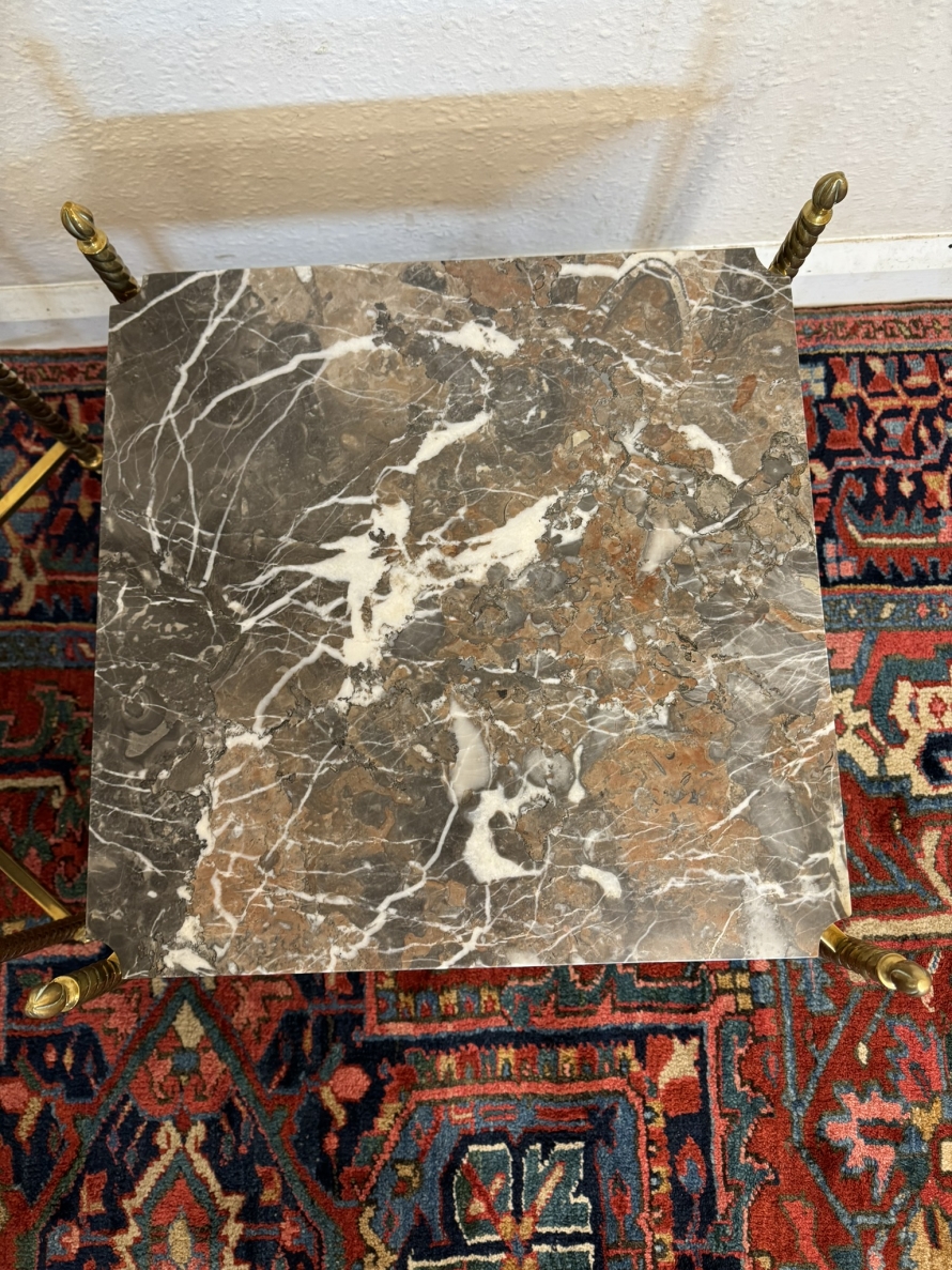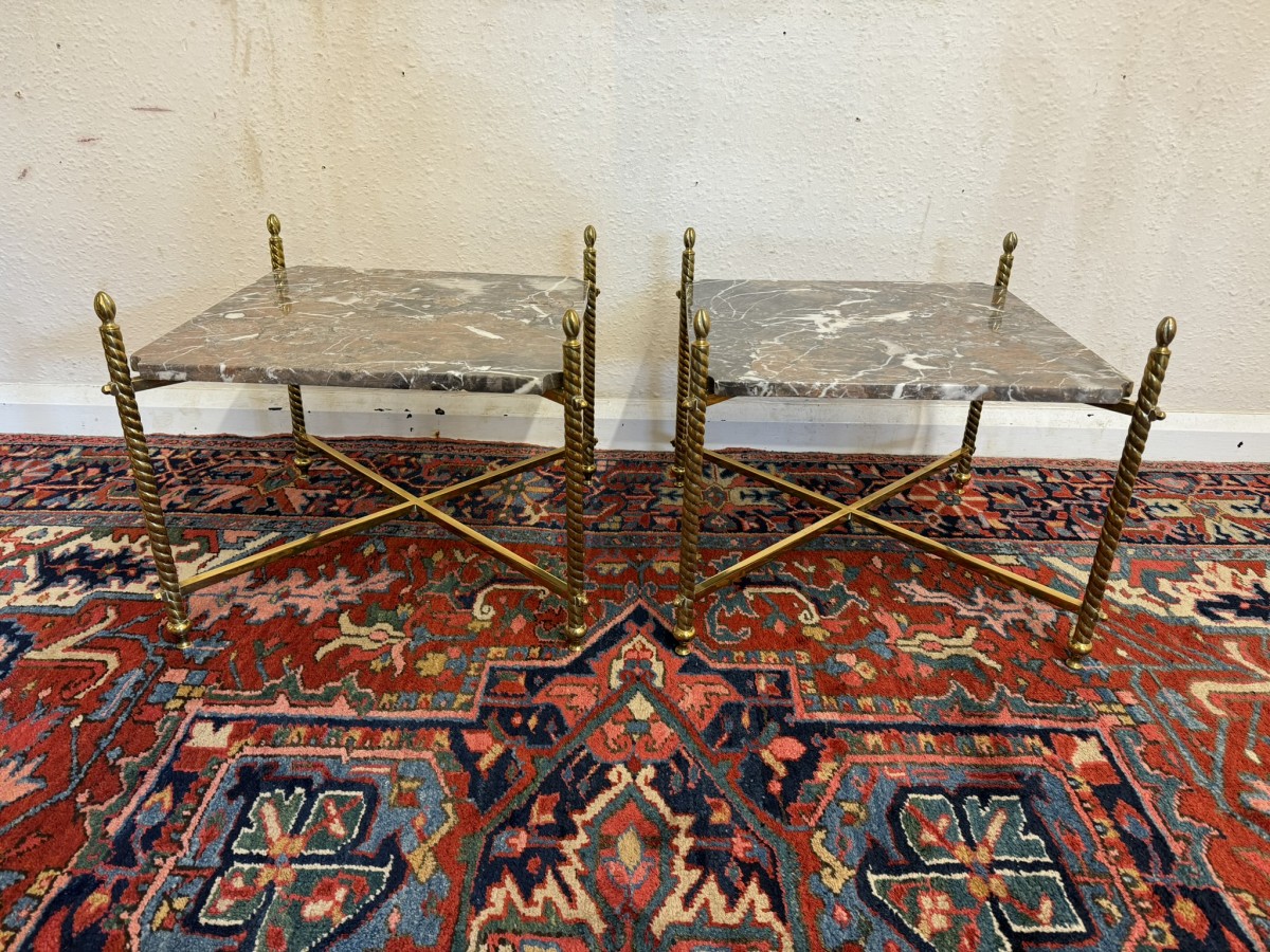 - Fabulous Pair Of Antique Brass And Marble End Tables Circa 1920