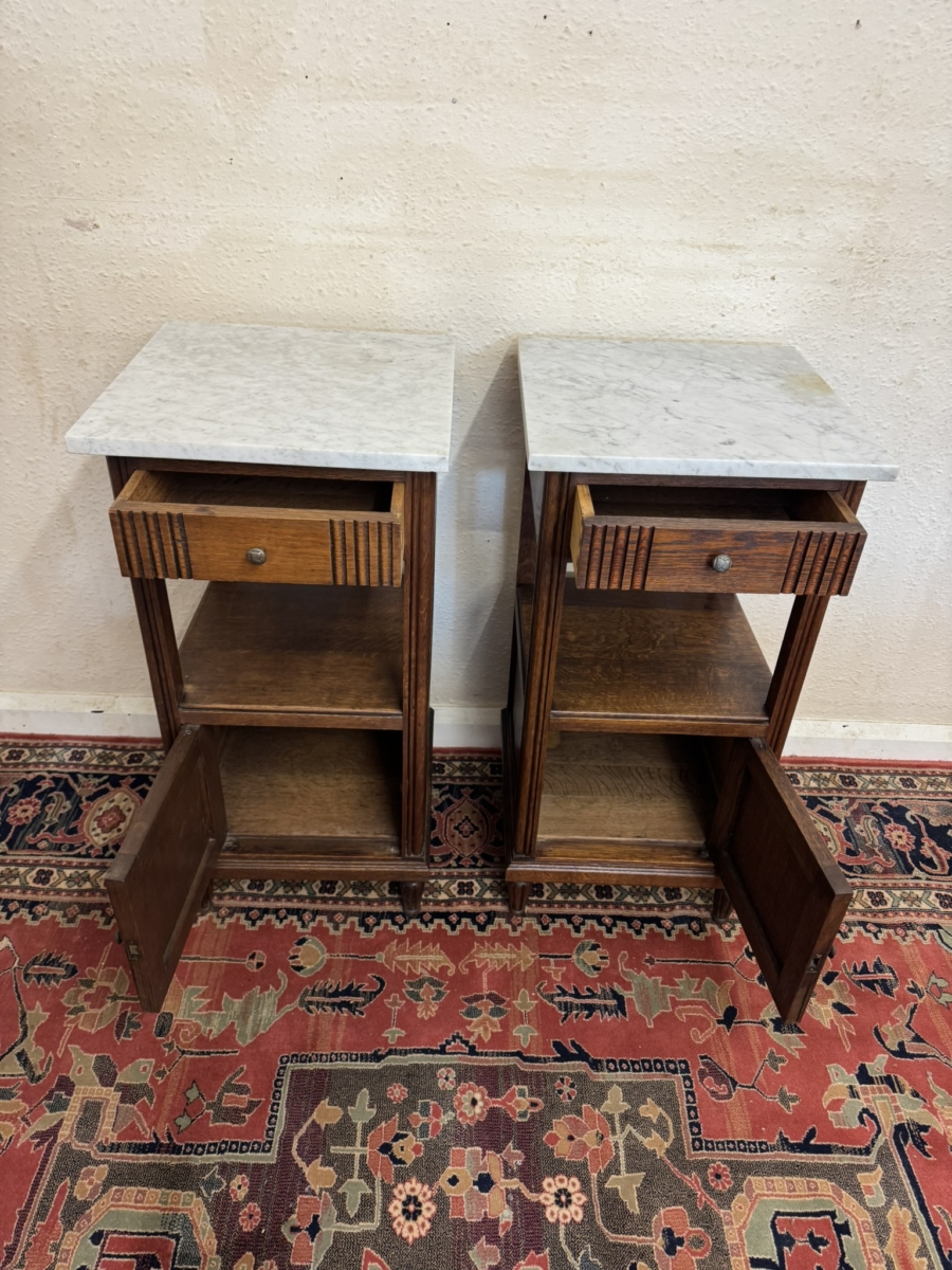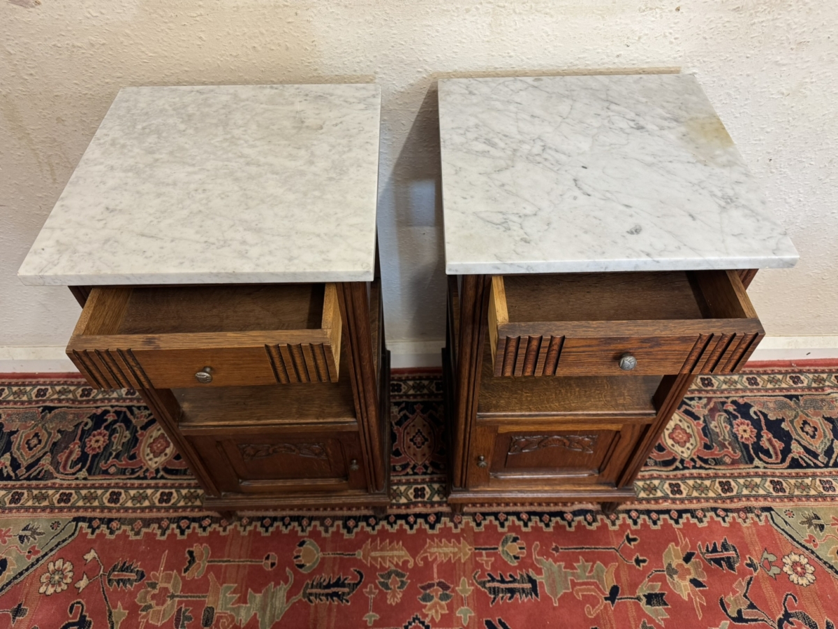 - FABULOUS PAIR OF FRENCH ANTIQUE ART DECO MARBLE TOP BEDSIDE CABINETS CIRCA 1920