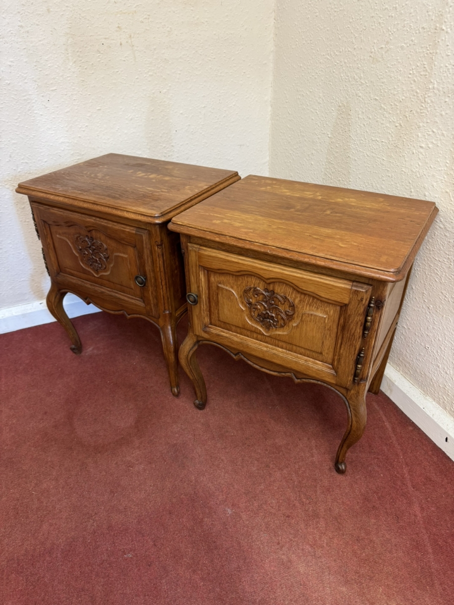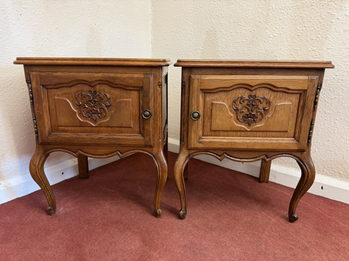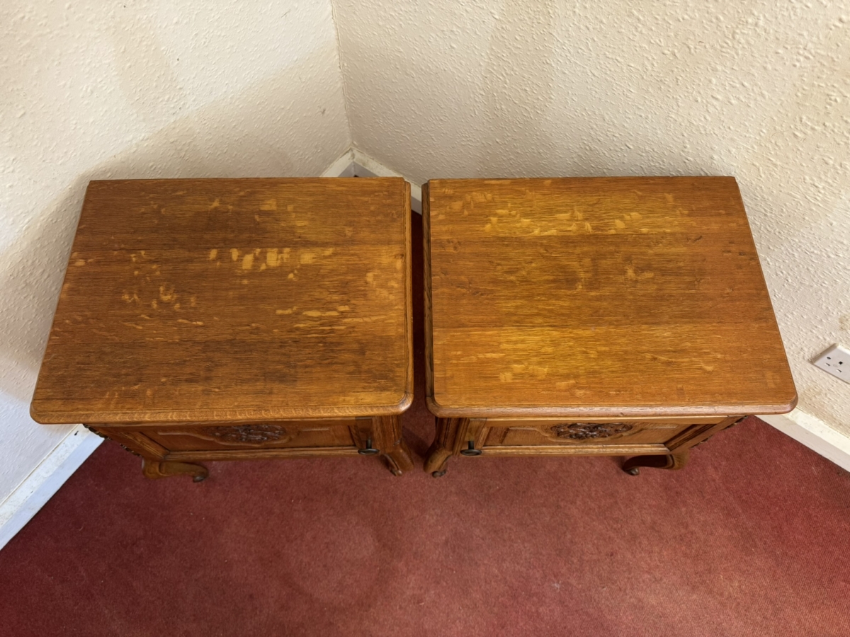 - FABULOUS PAIR OF FRENCH CARVED OAK BEDSIDE CABINETS CIRCA 1950
