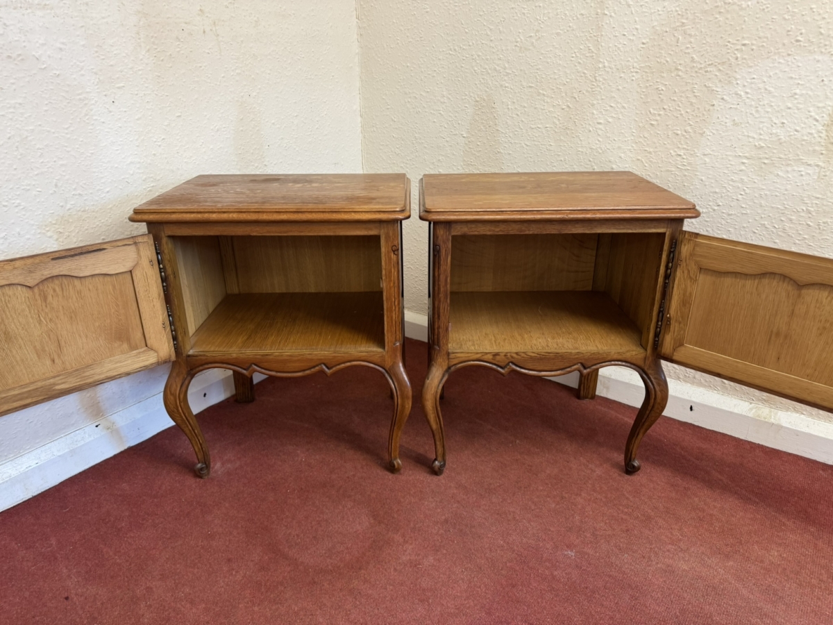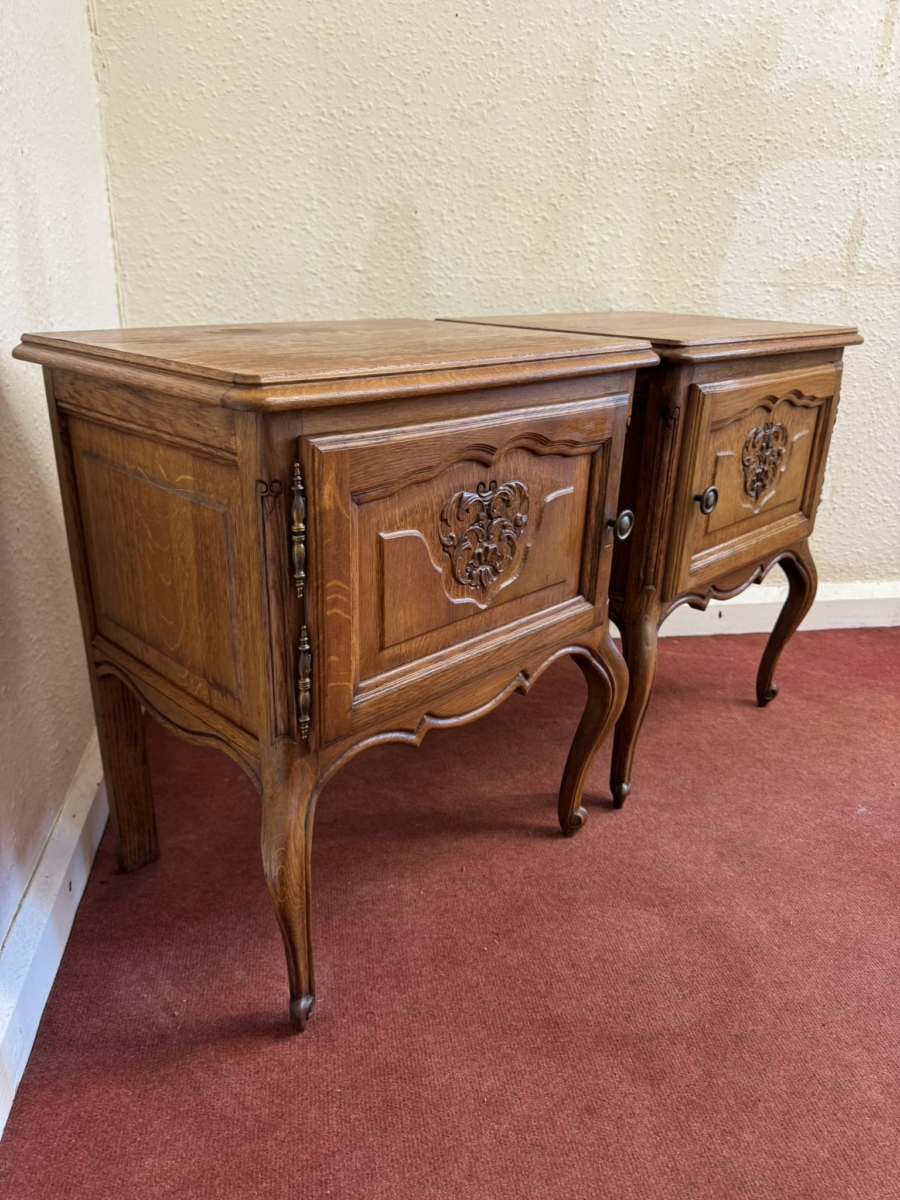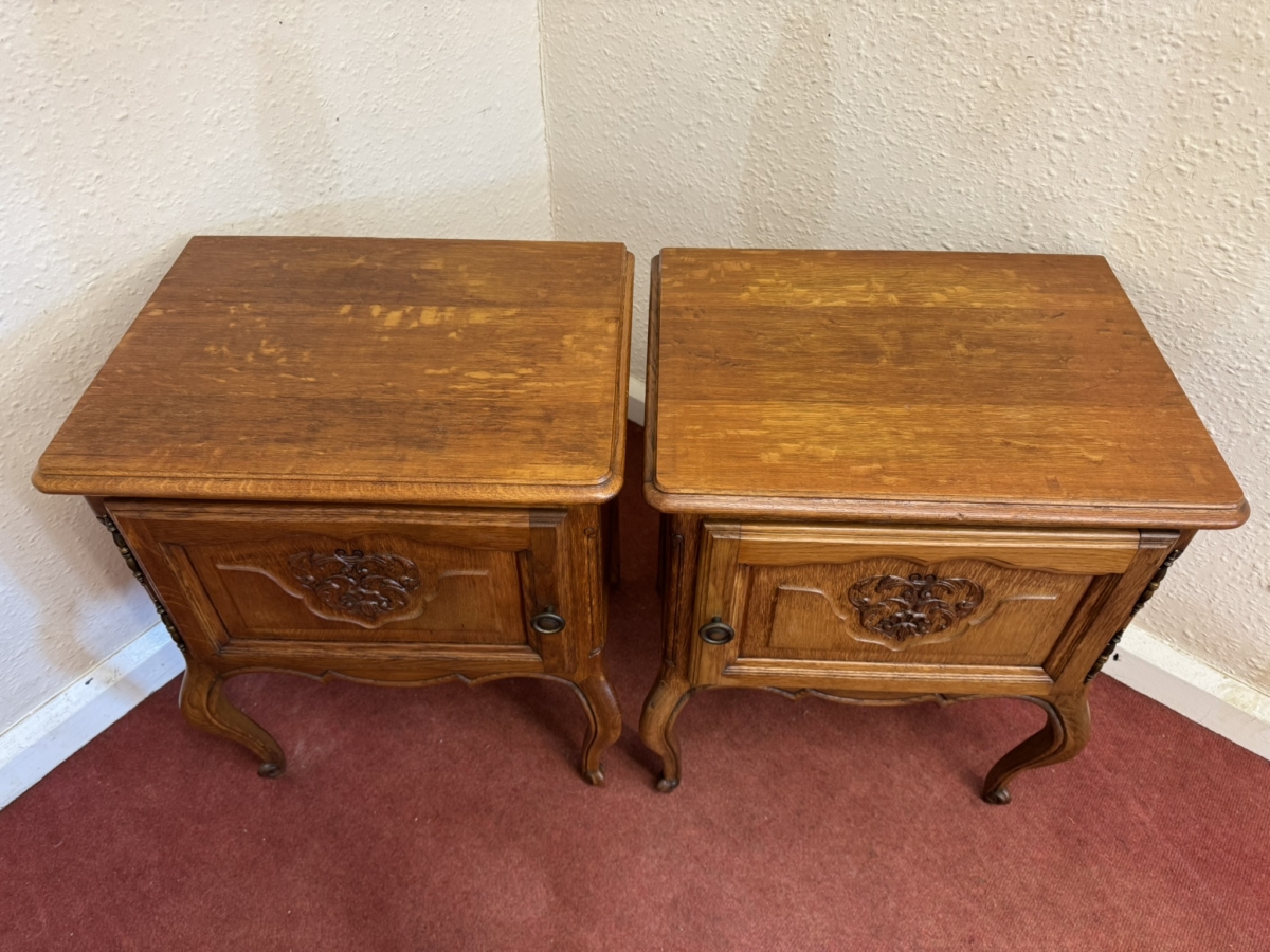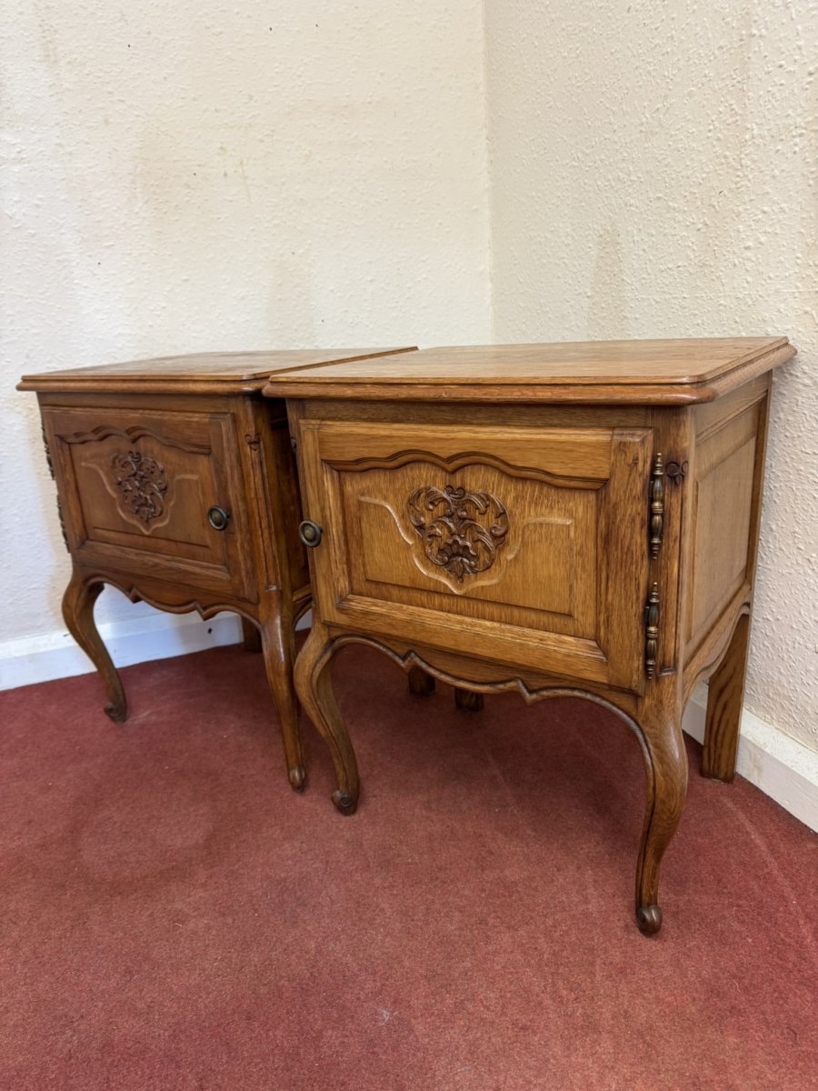 - FABULOUS PAIR OF FRENCH CARVED OAK BEDSIDE CABINETS CIRCA 1950
