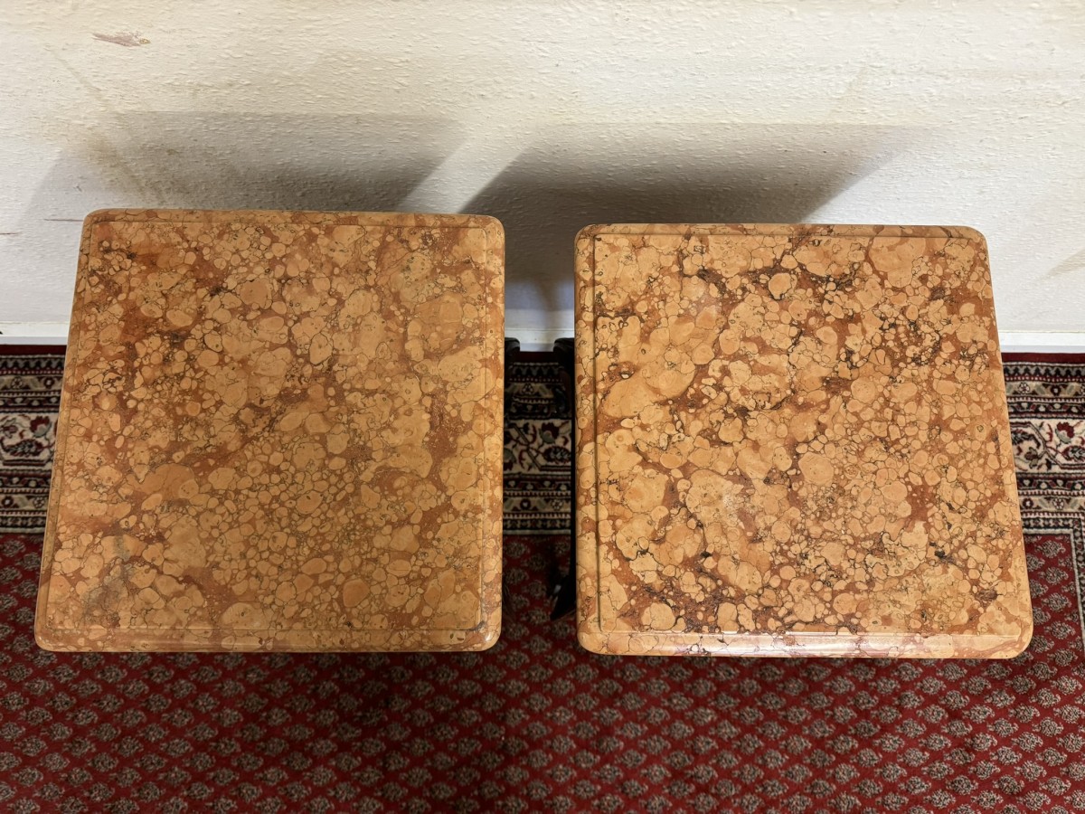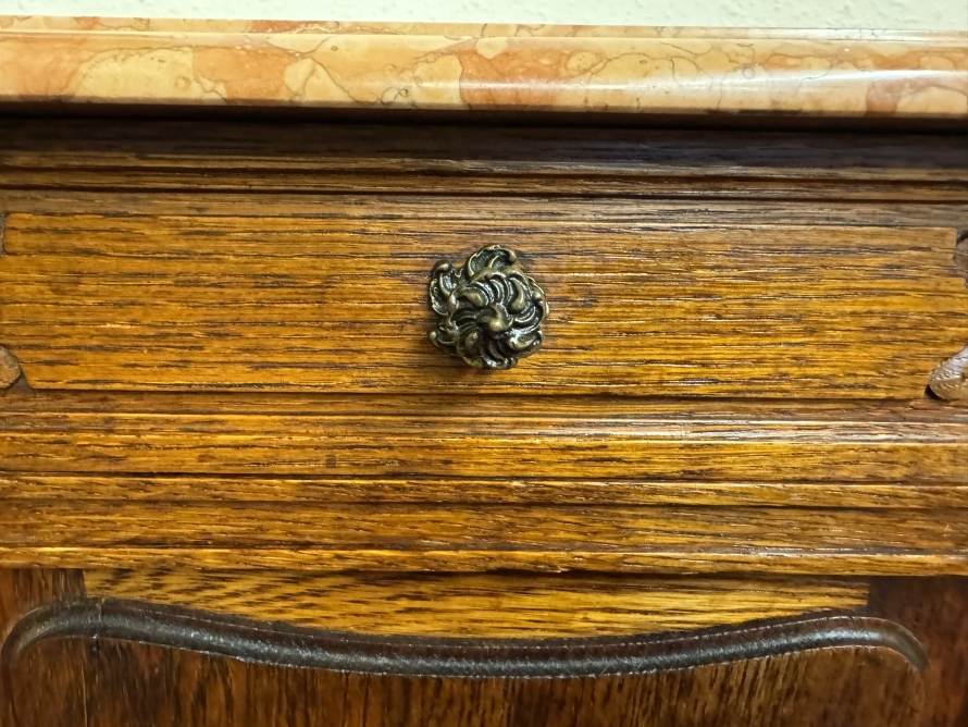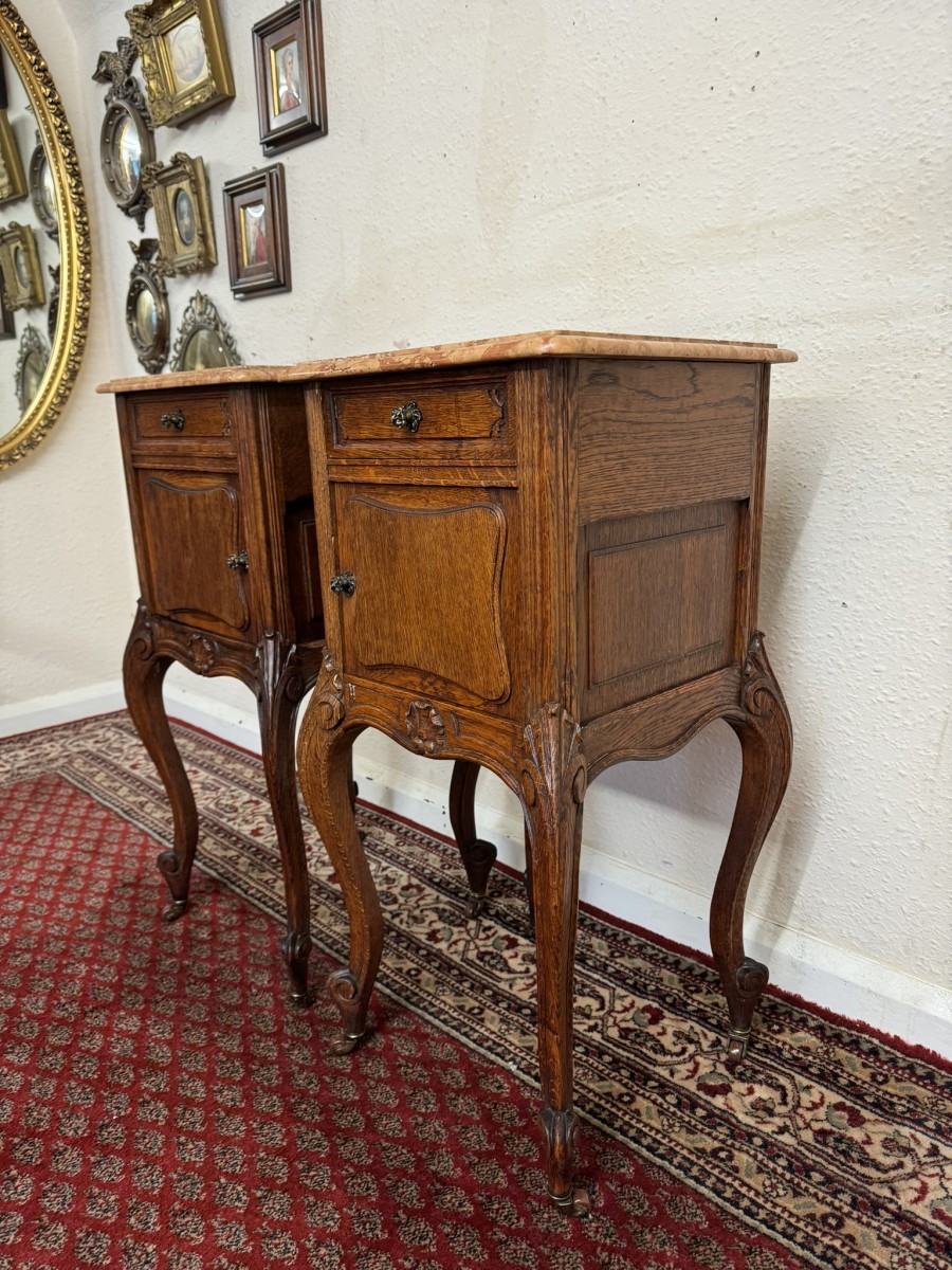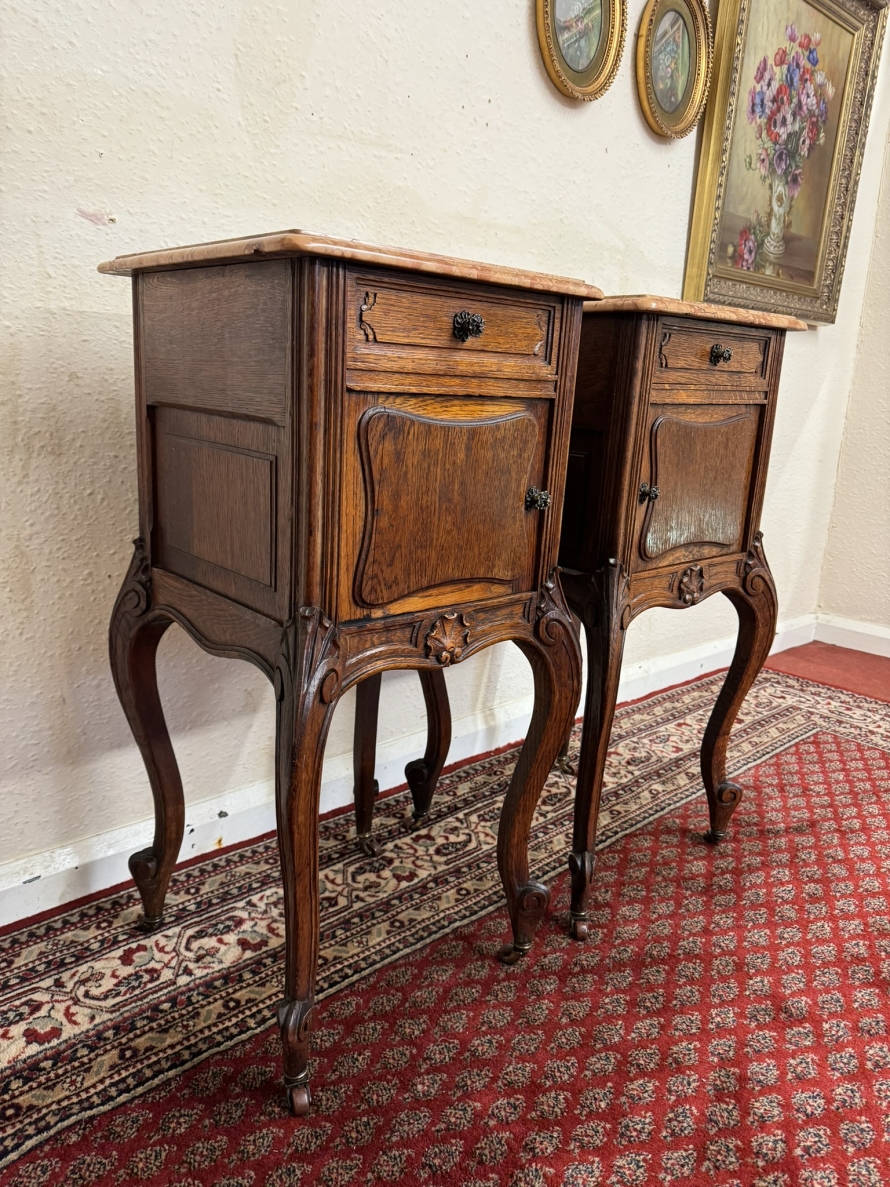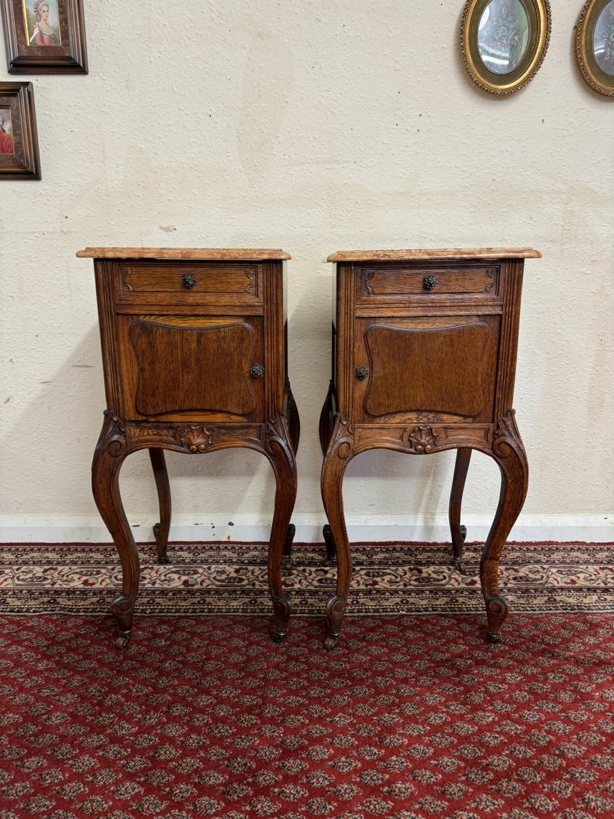 - Fabulous Pair Of French Carved Oak Marble Top Bedside Cabinets Circa 1890