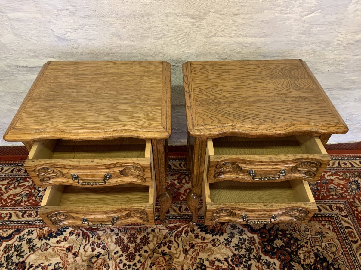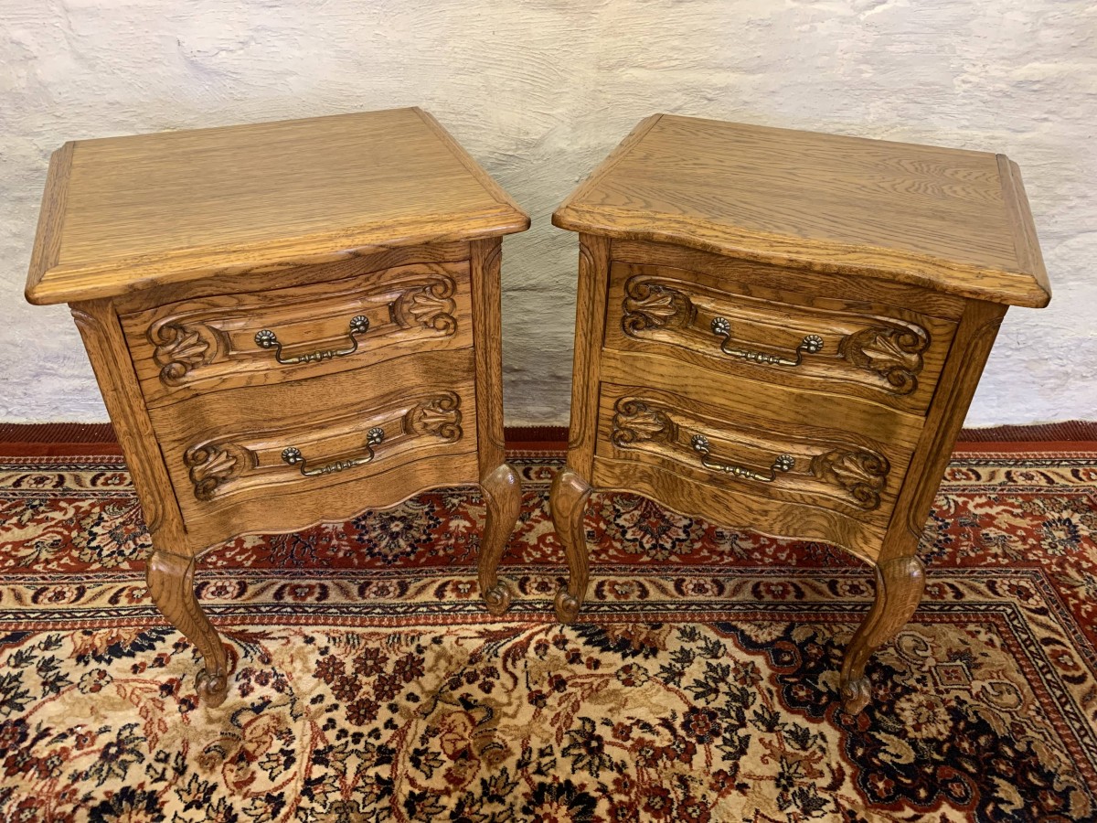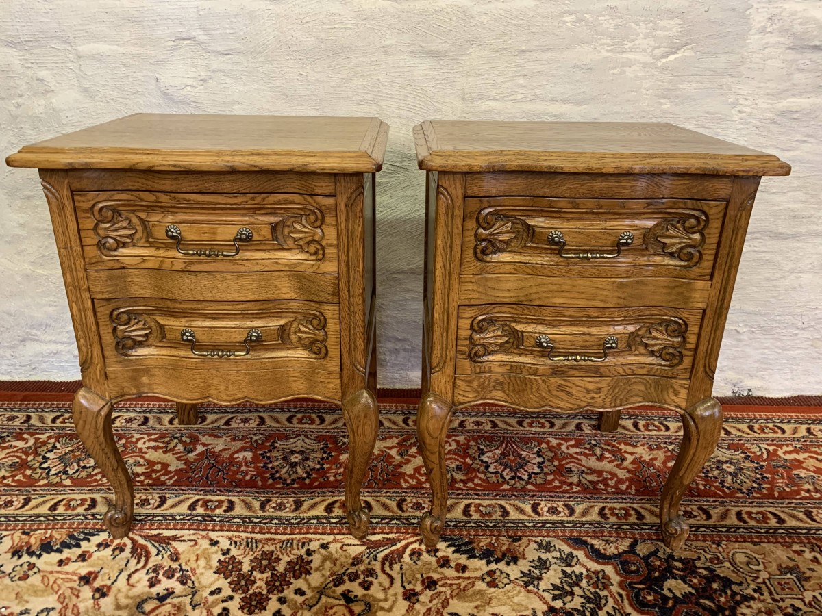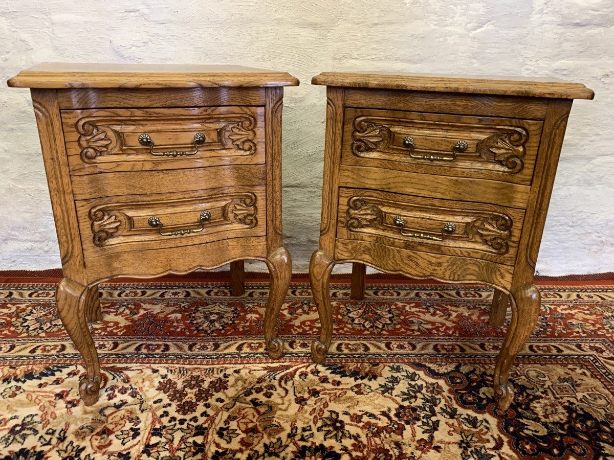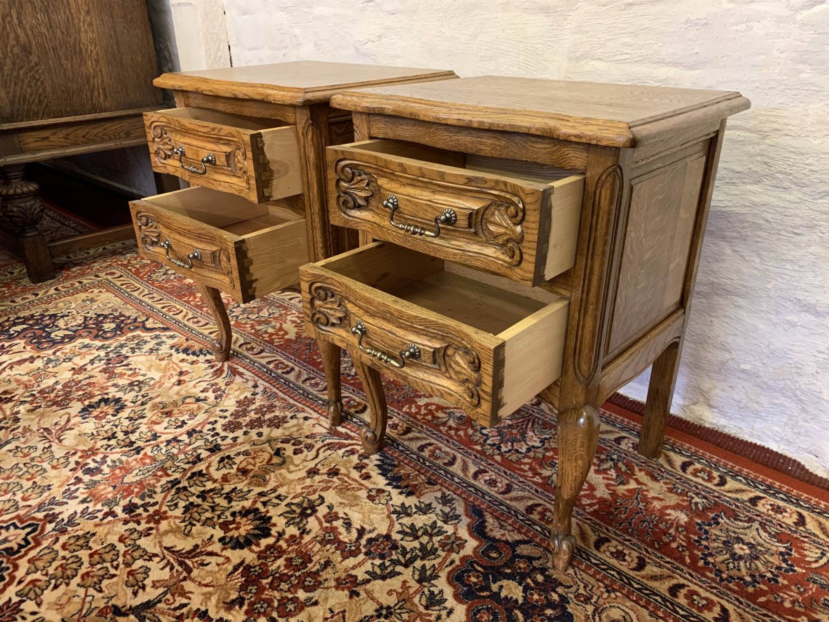 - Fabulous Pair Of French Shaped Carved Oak Bedside Drawers/cabinet – Now Sold