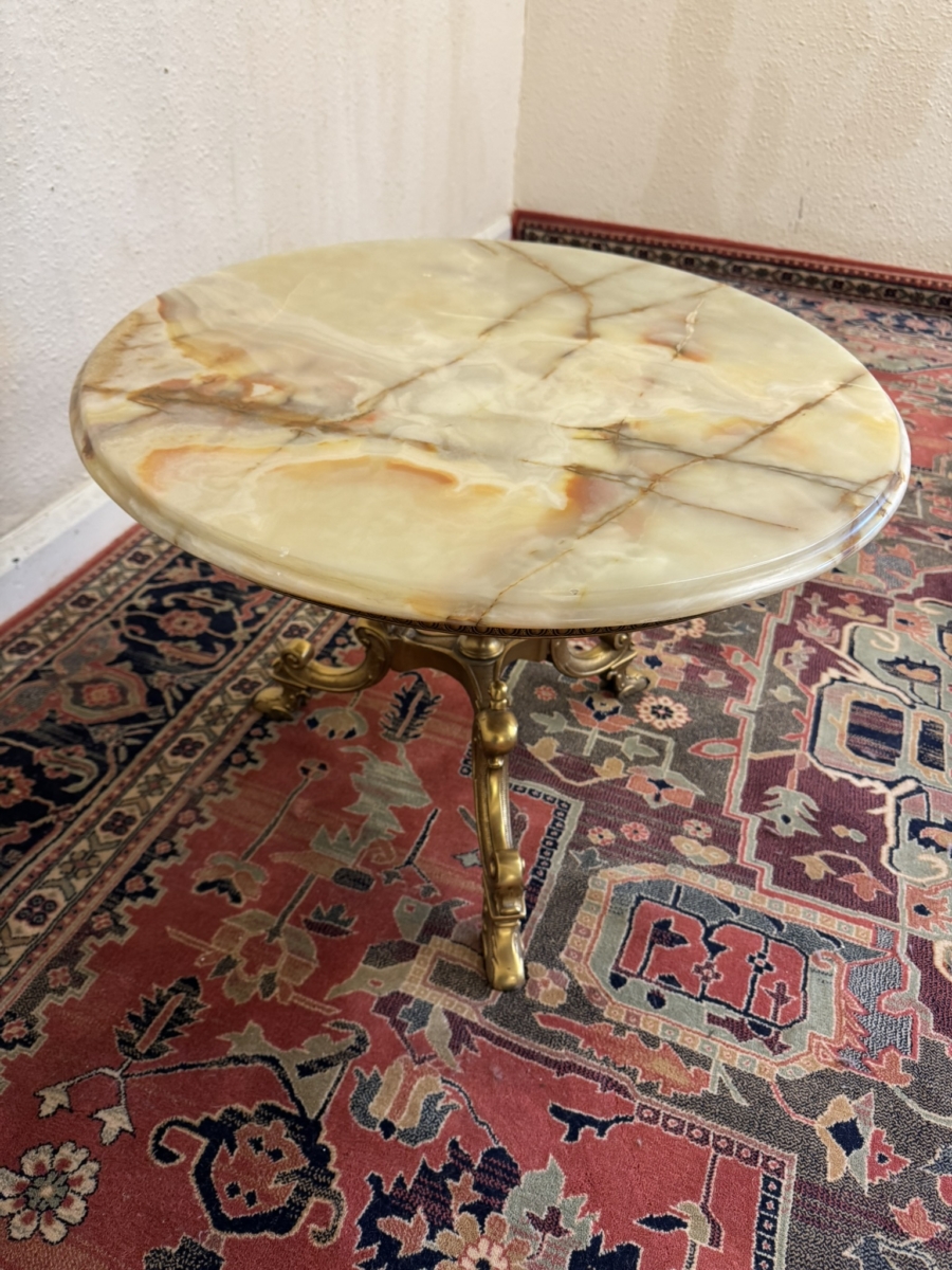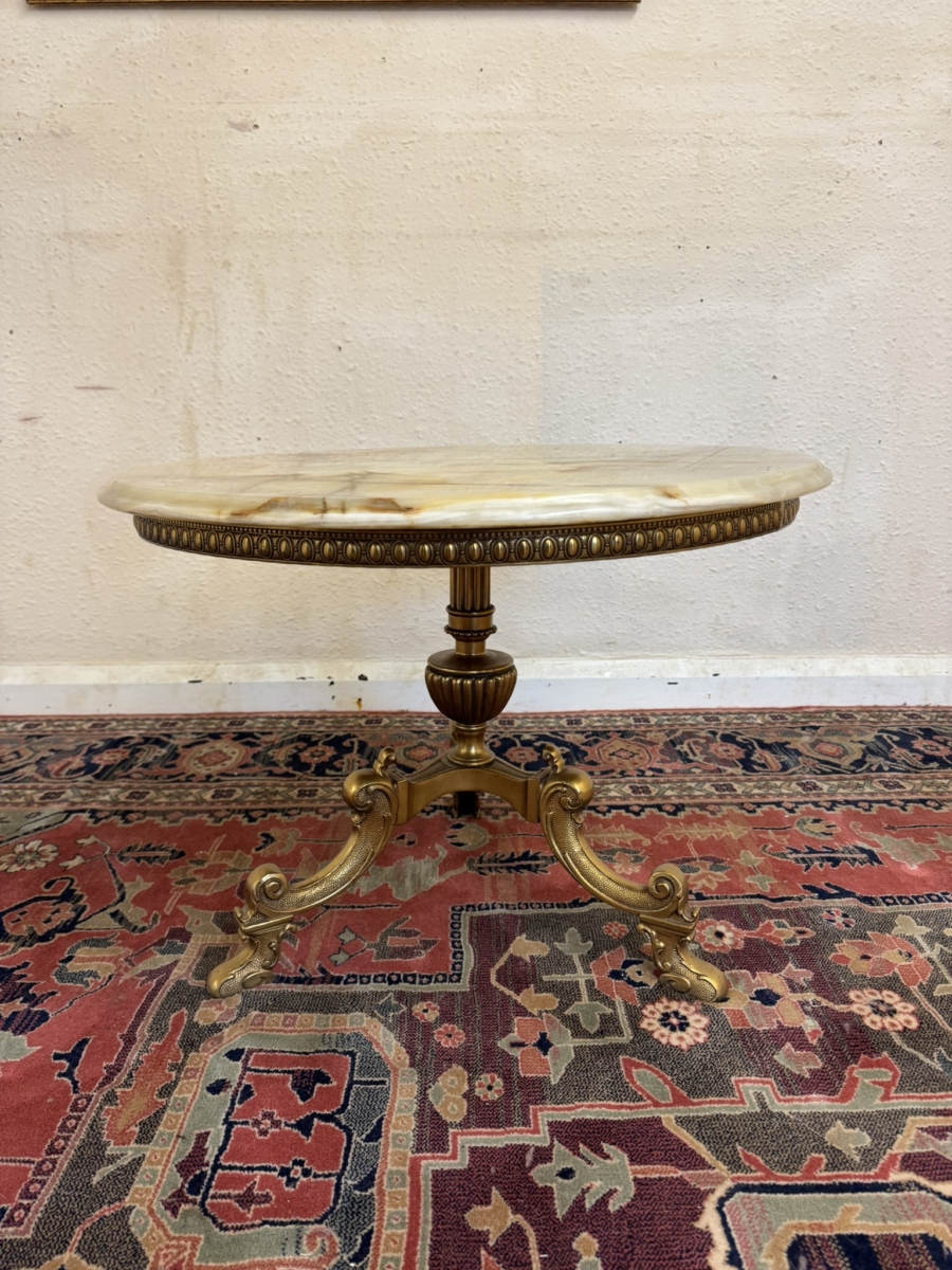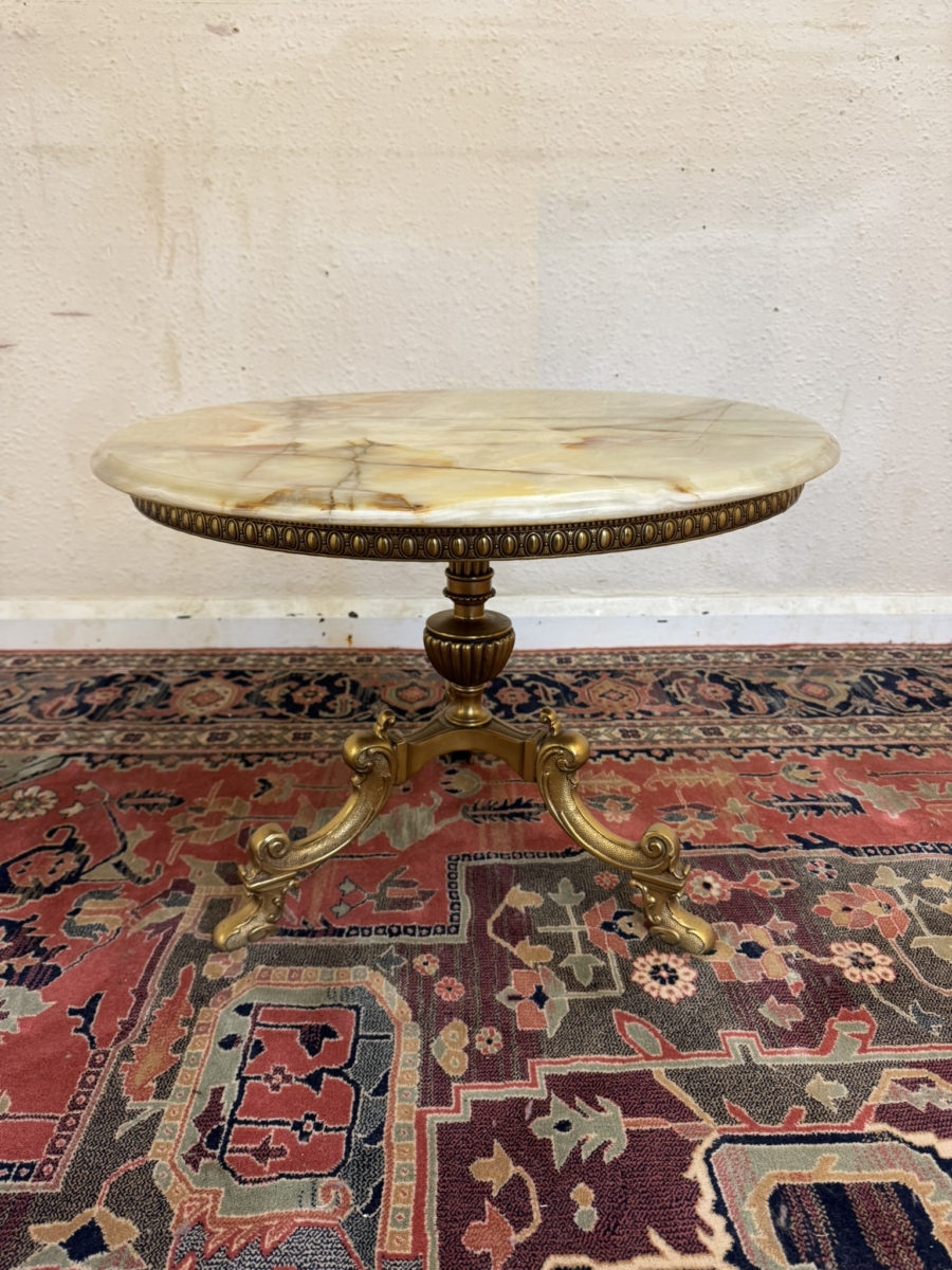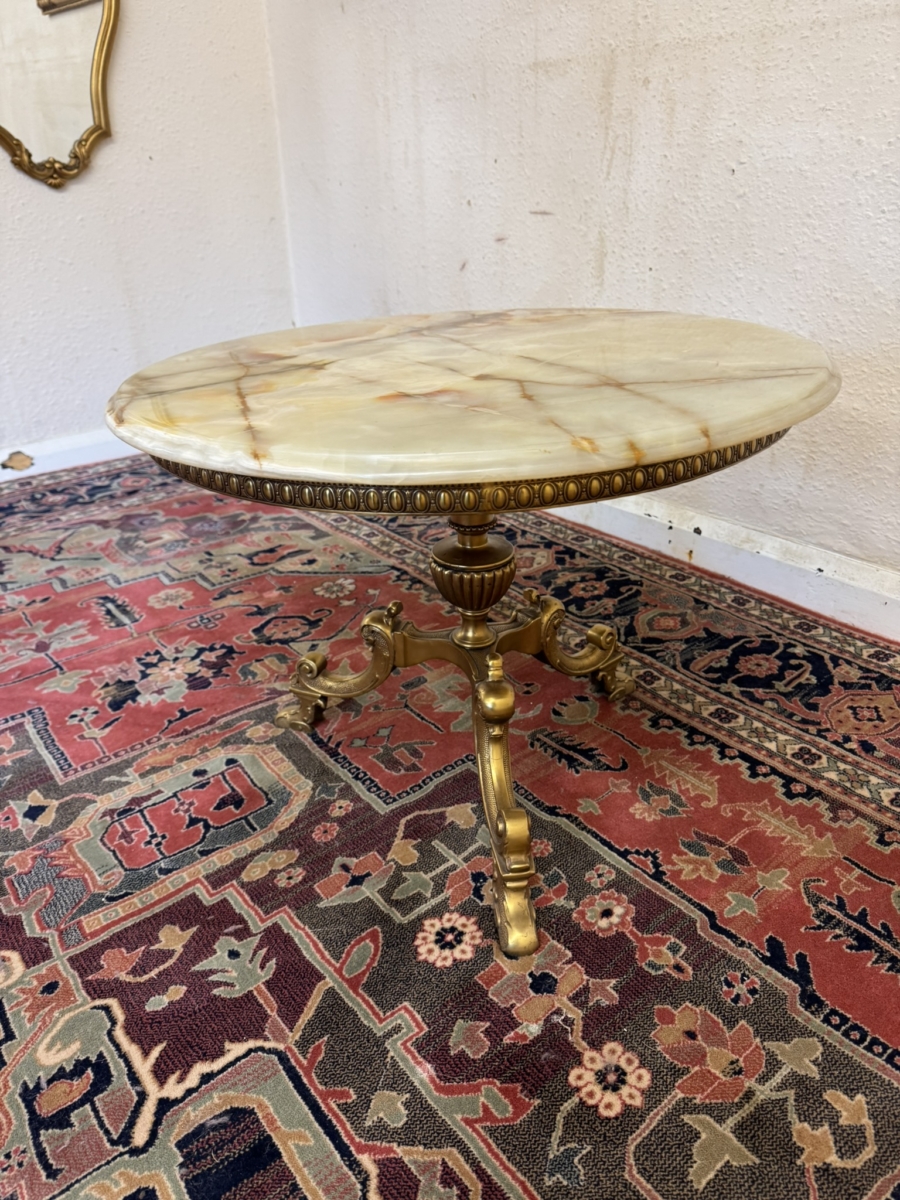 - FABULOUS QUALITY FRENCH BRASS AND ONYX ACCENT TABLE/COFFEE TABLE CIRCA 1950