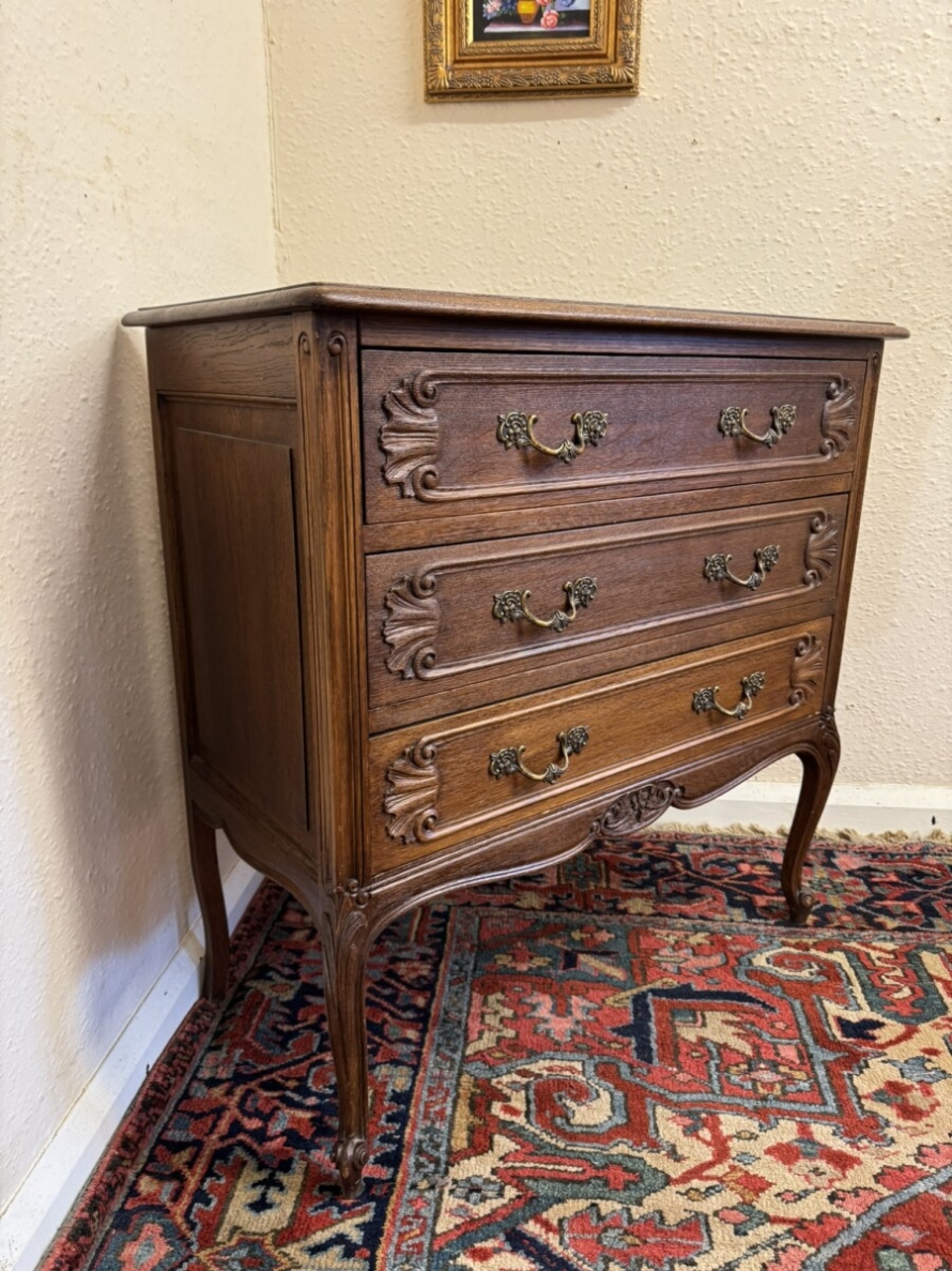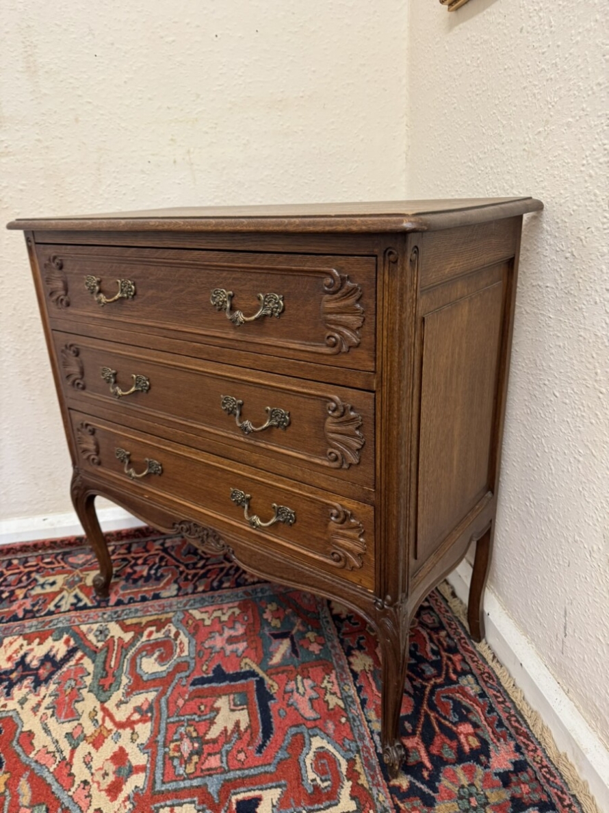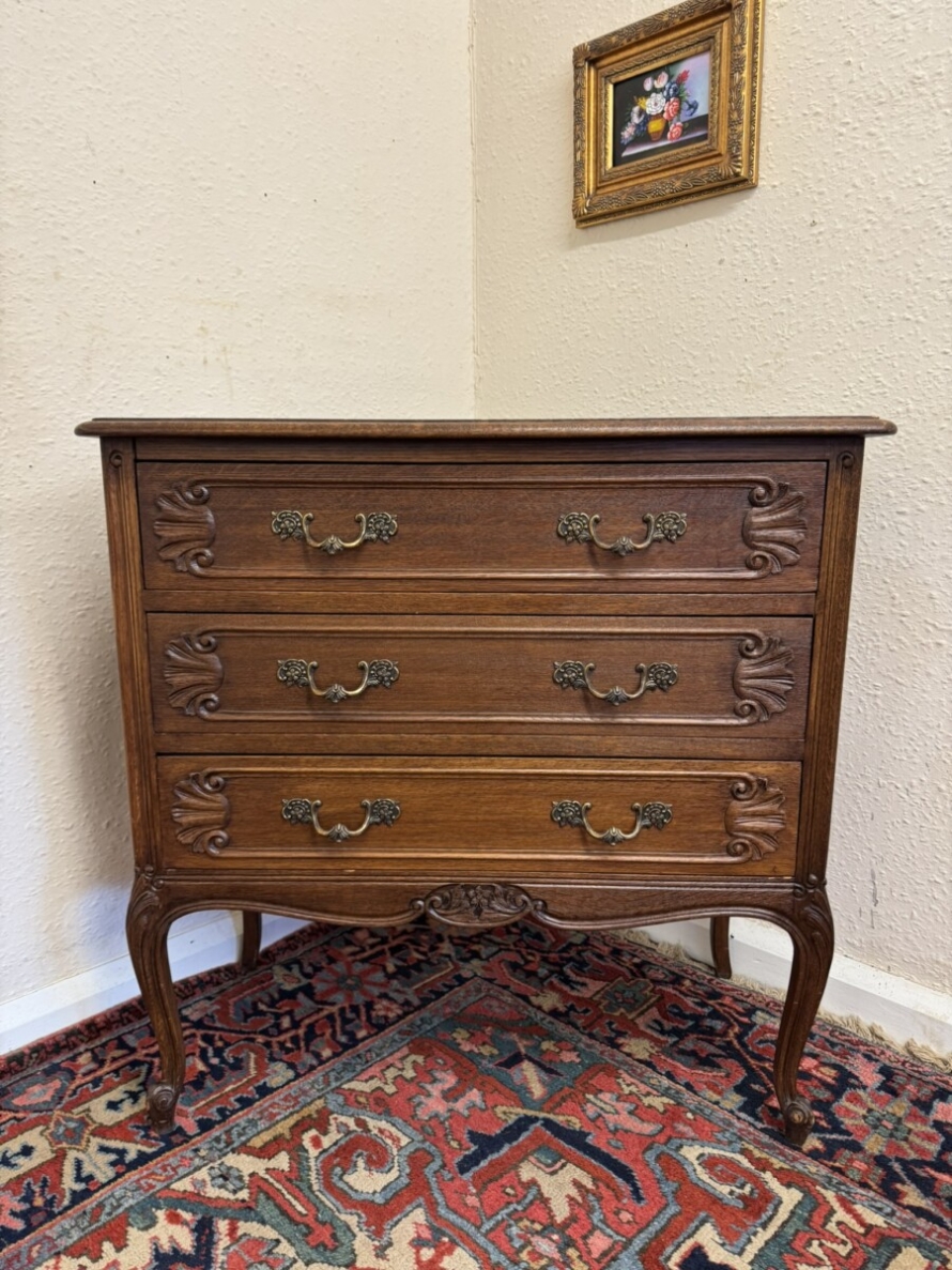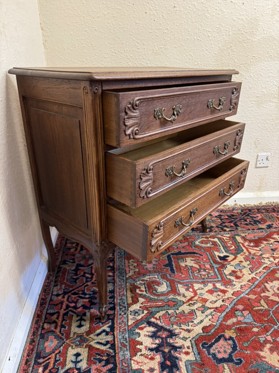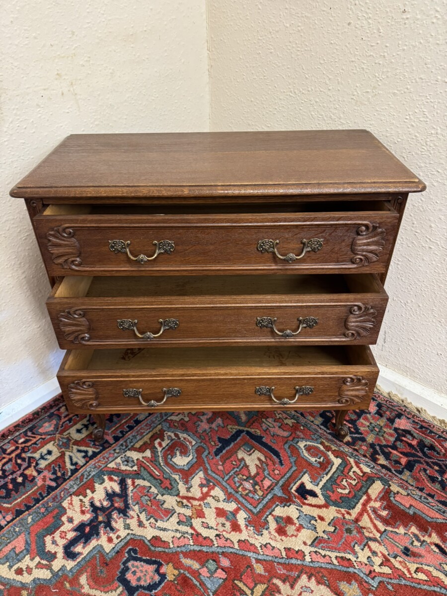 FABULOUS QUALITY FRENCH CARVED OAK CHEST OF THREE DRAWERS CIRCA 1950