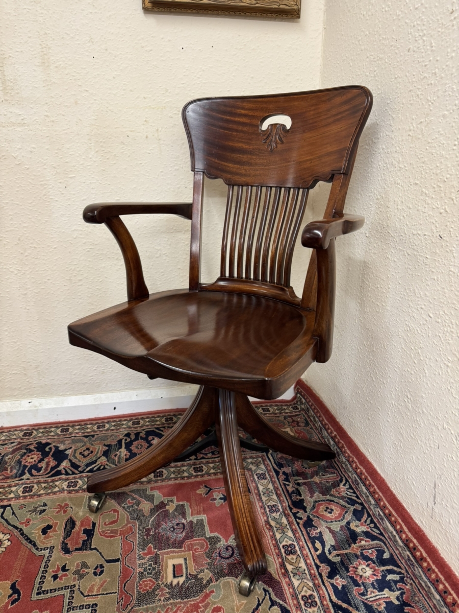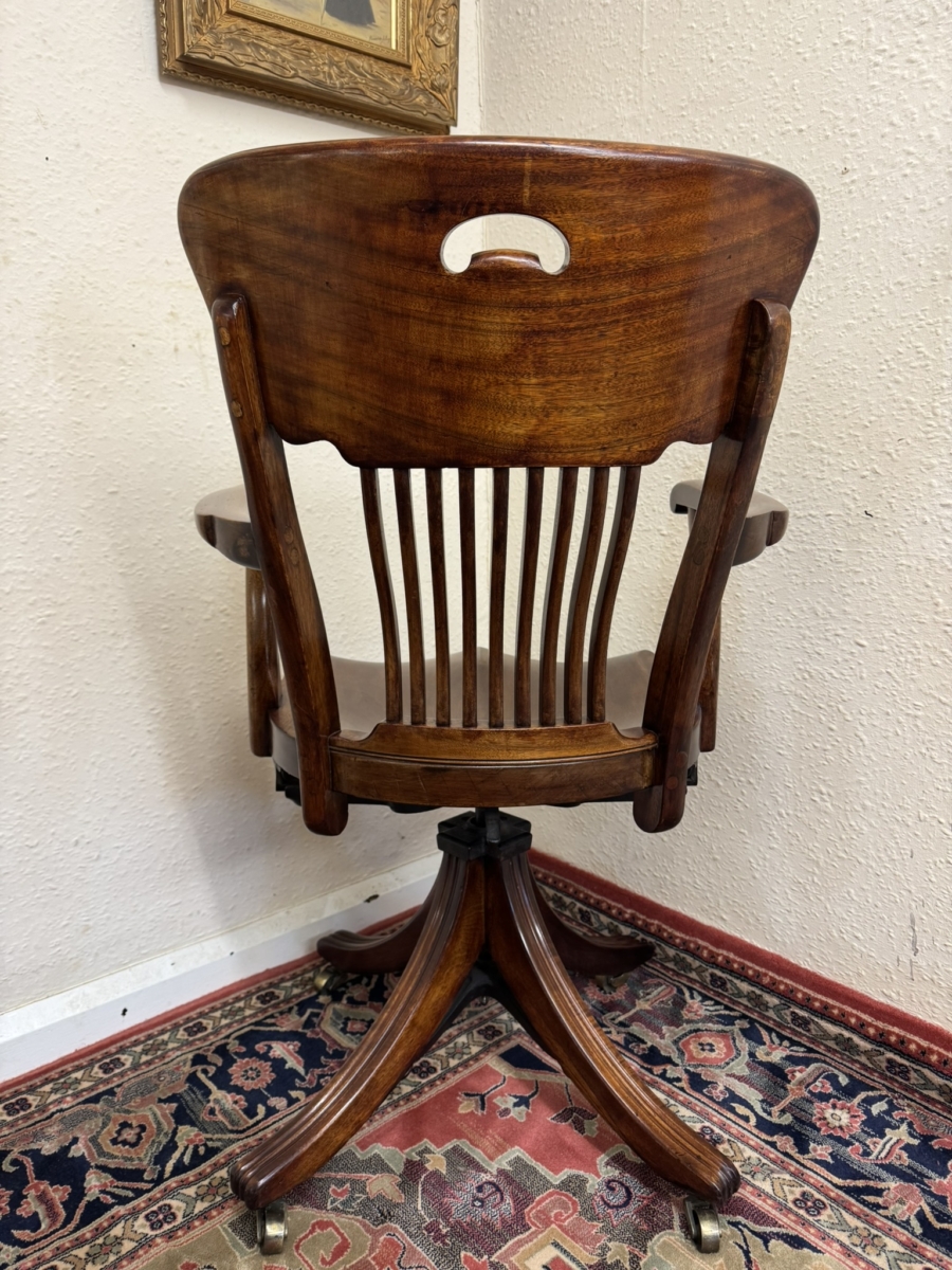 FABULOUS QUALITY MAHOGANY REVOLVING DESK CHAIR CIRCA 1940