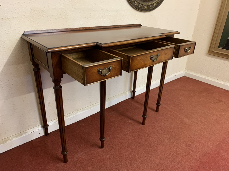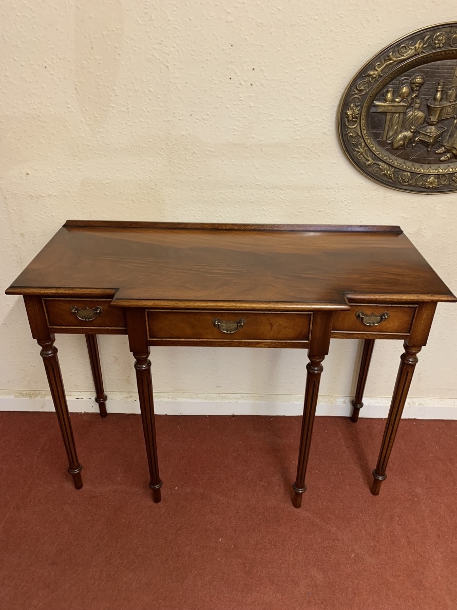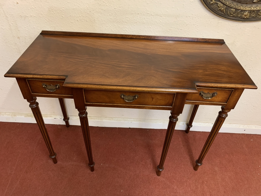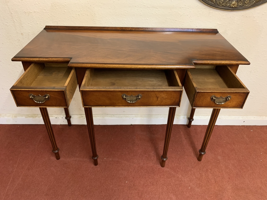 - Fabulous Quality Mahogany Three Drawer Brakefront Side Table/ Hall Table – Now Sold