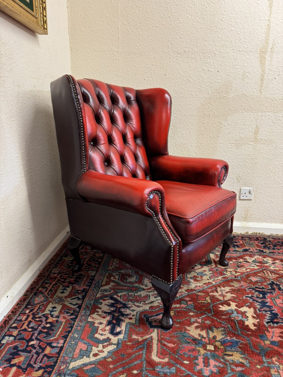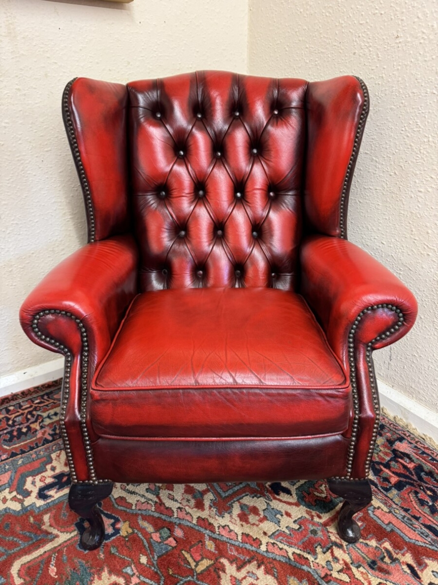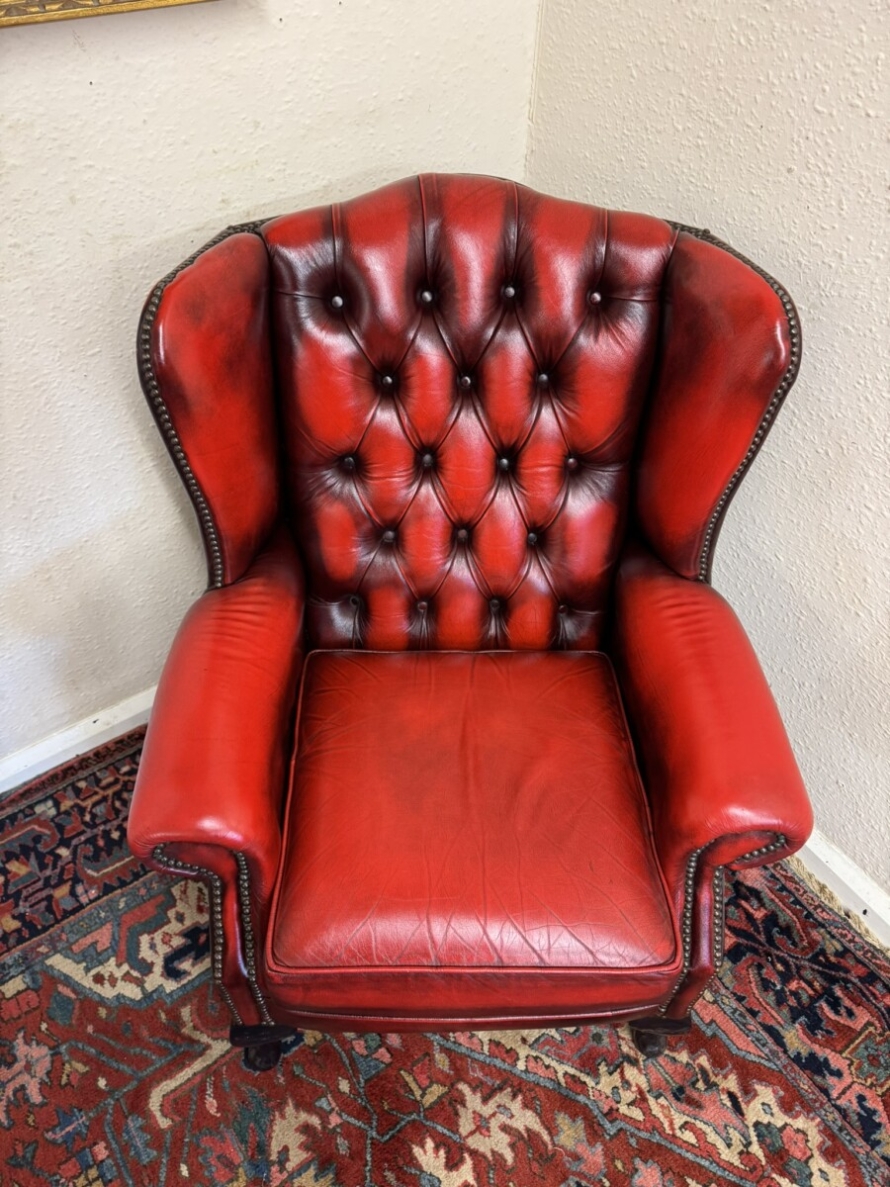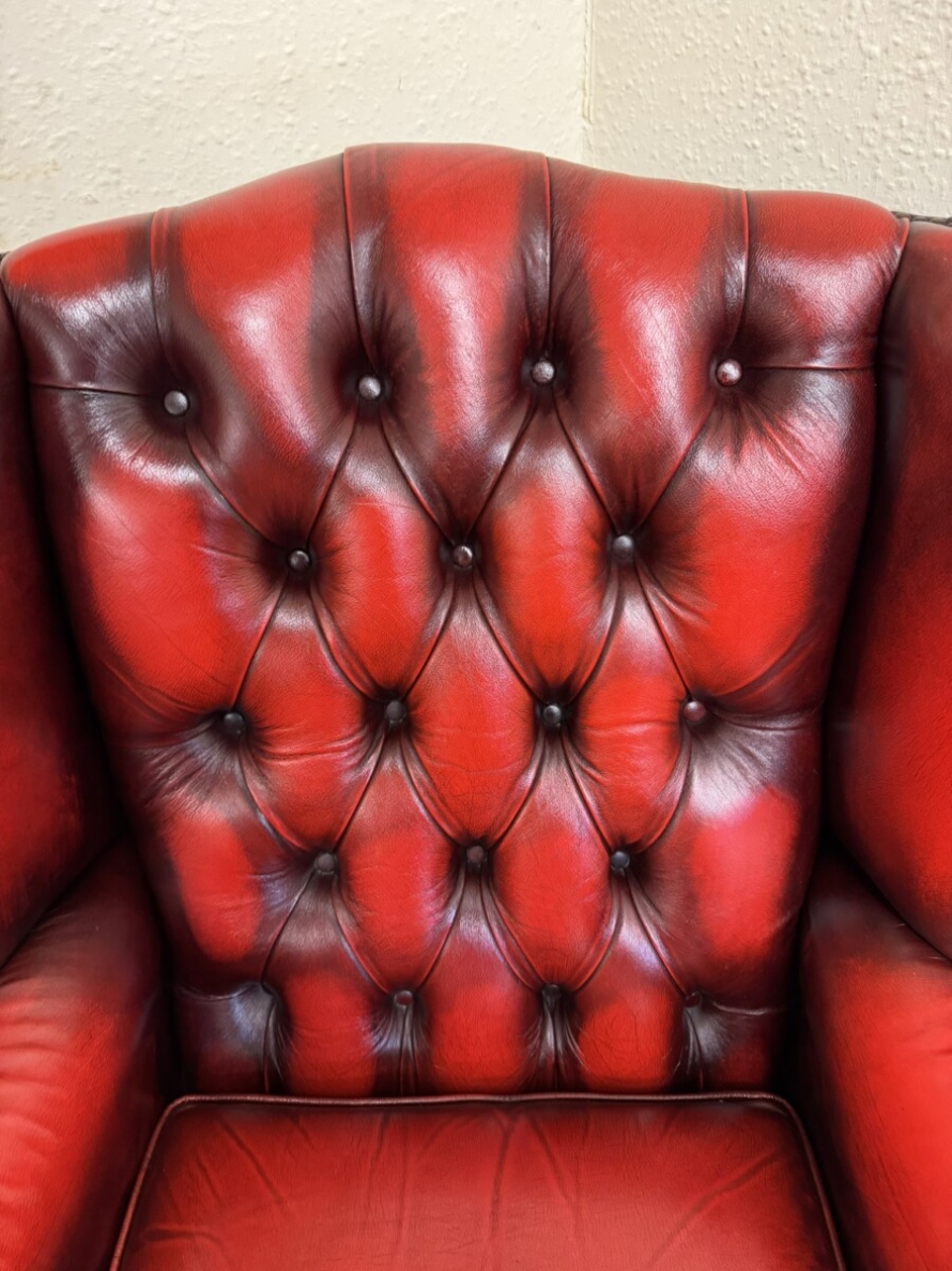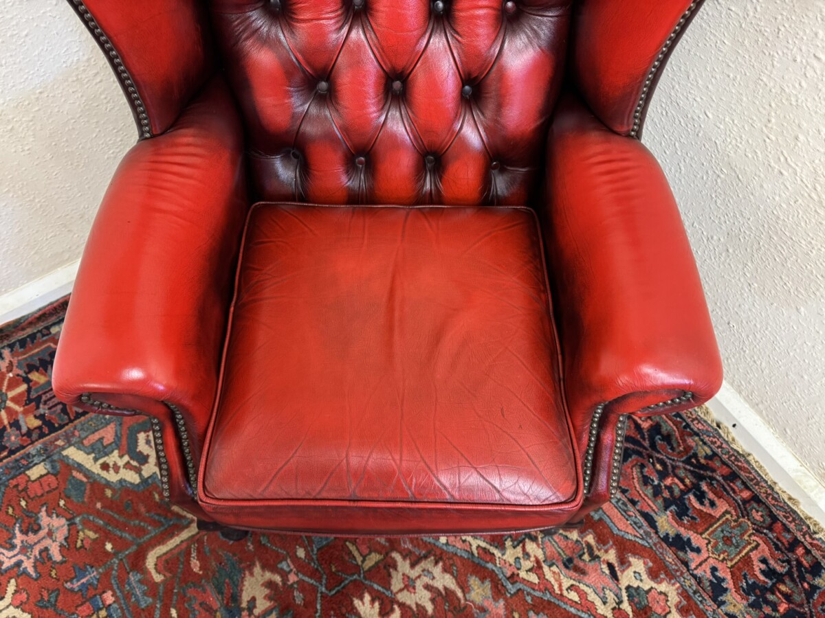 - FABULOUS QUALITY RED LEATHER WINGBACK CHESTERFIELD ARMCHAIR