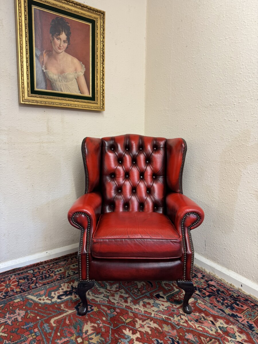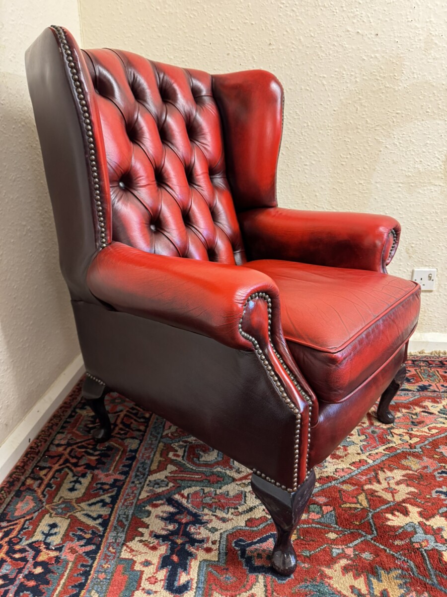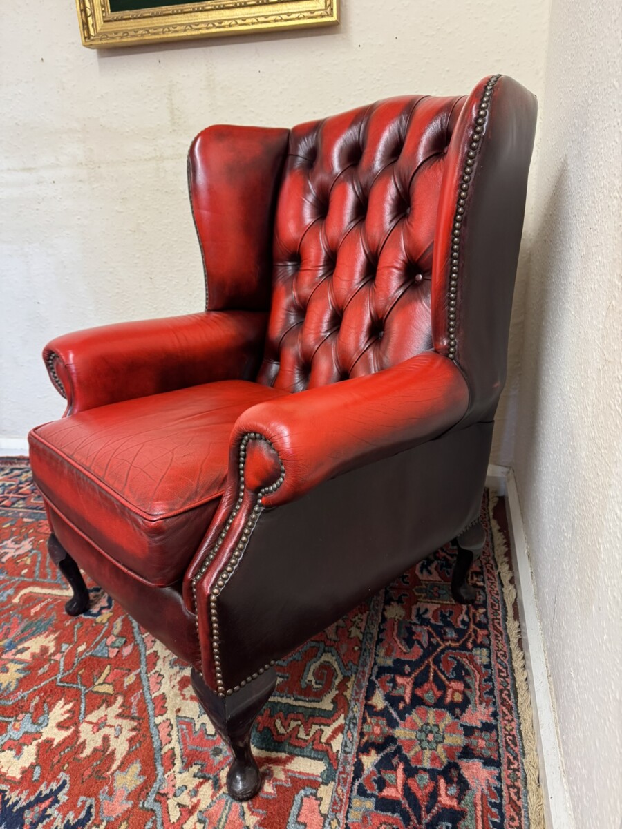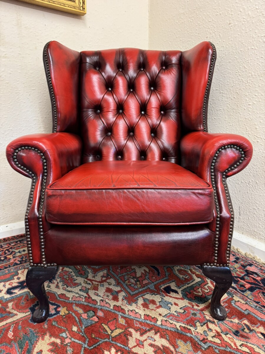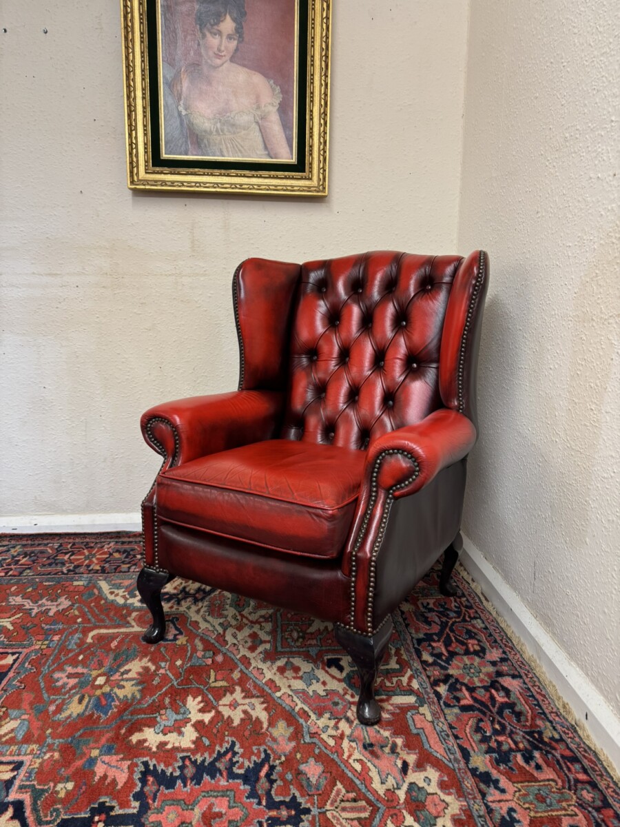 - FABULOUS QUALITY RED LEATHER WINGBACK CHESTERFIELD ARMCHAIR