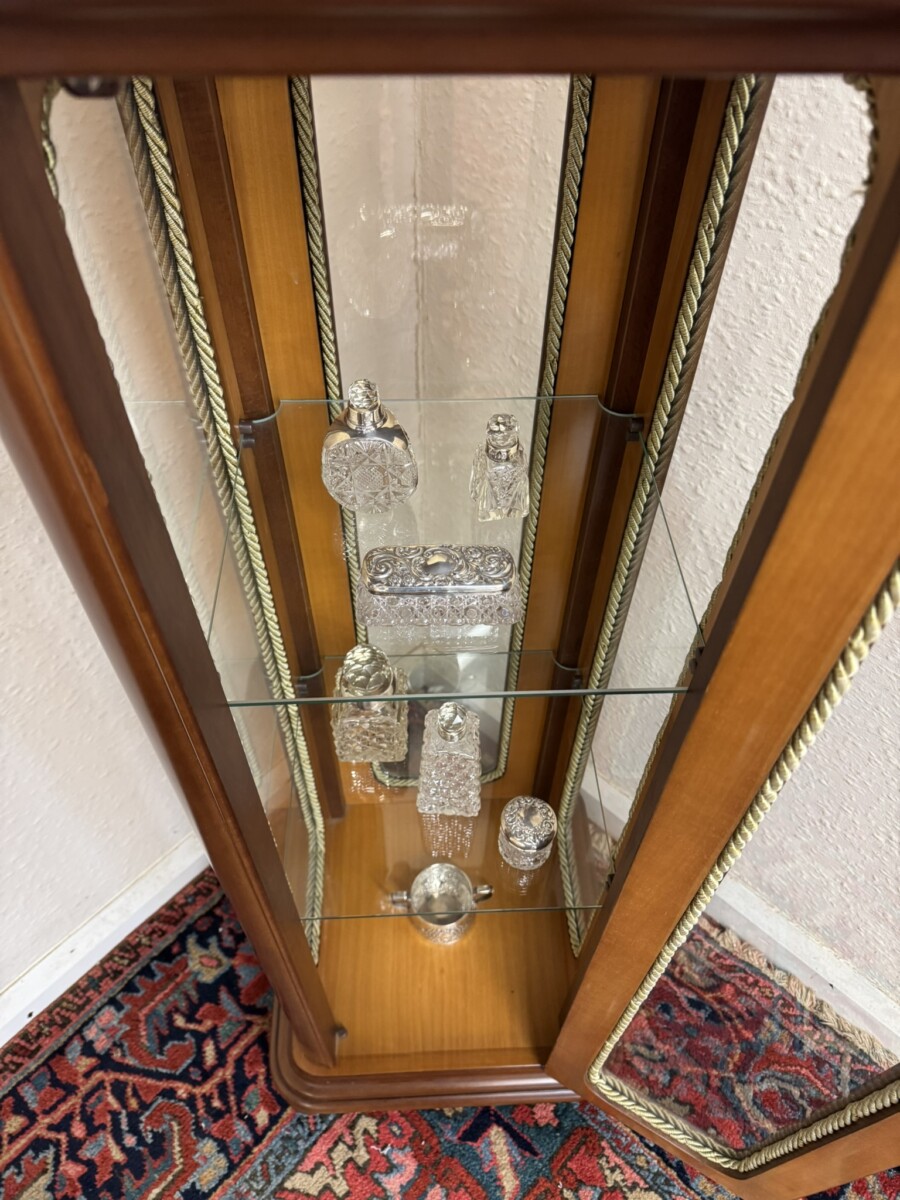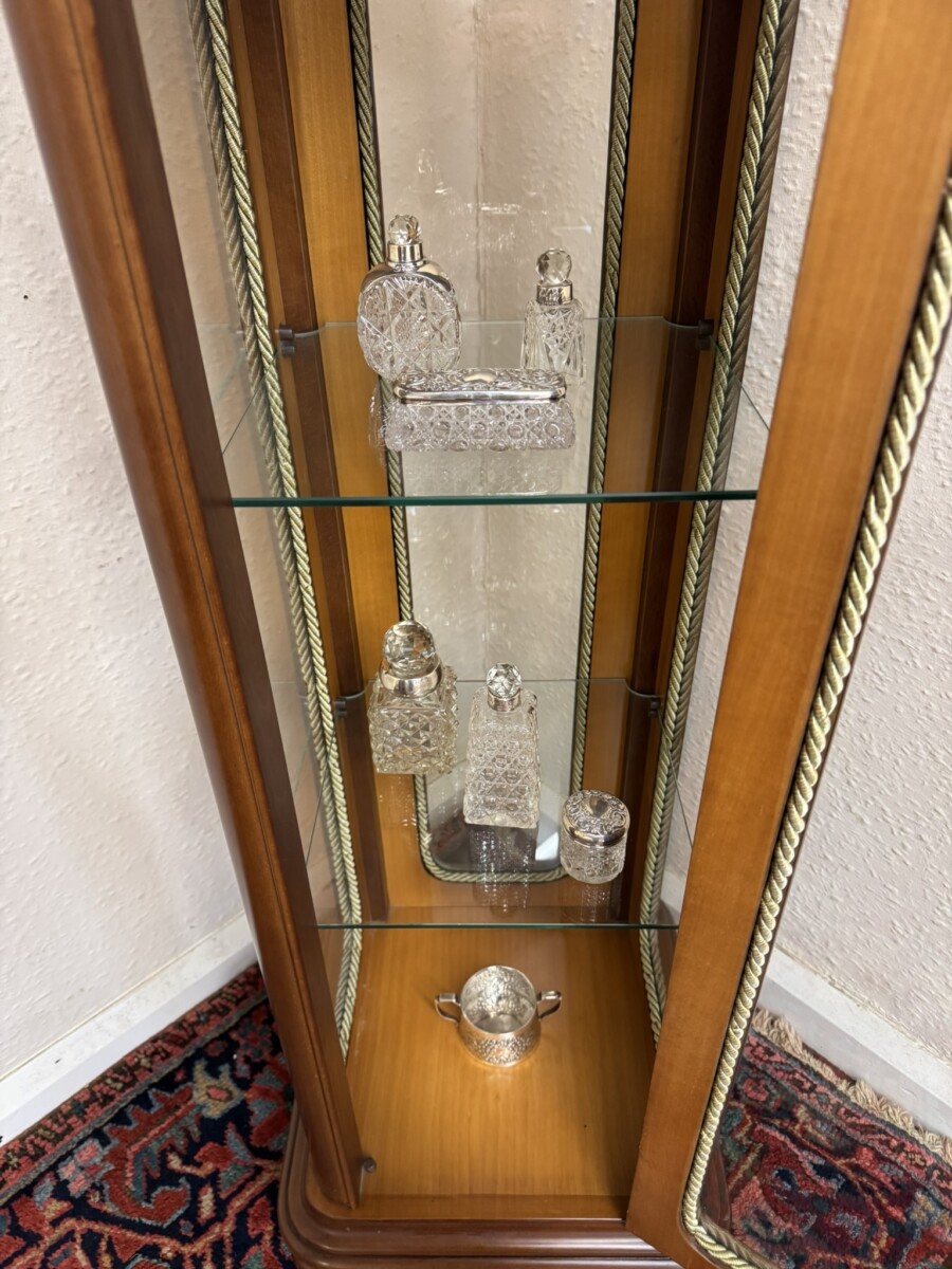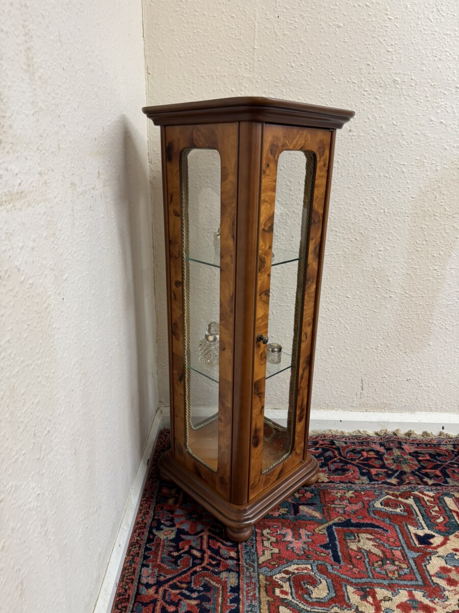 FABULOUS QUALITY SLIM GLAZED WALNUT BIJOUTERIE/DISPLAY CABINET