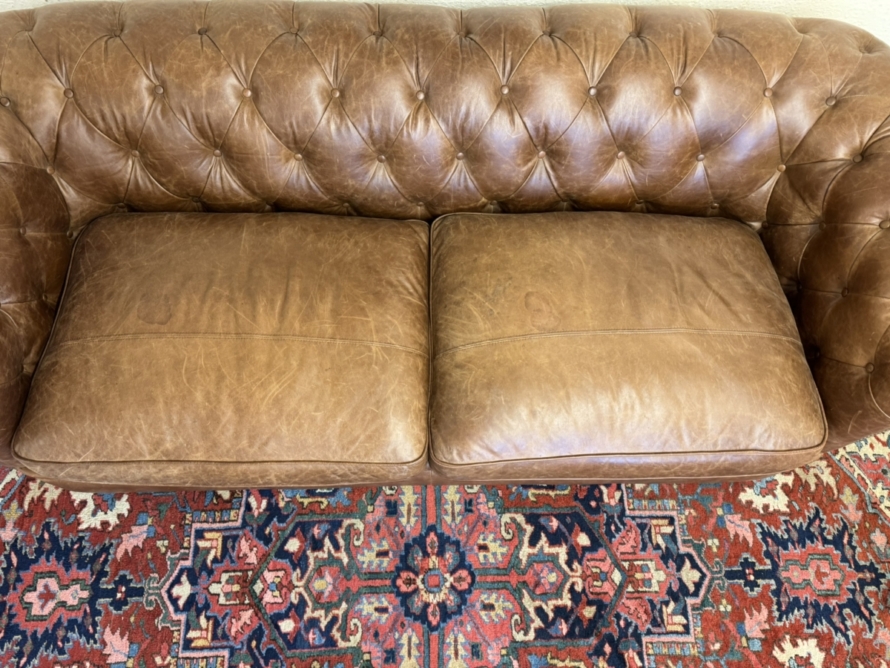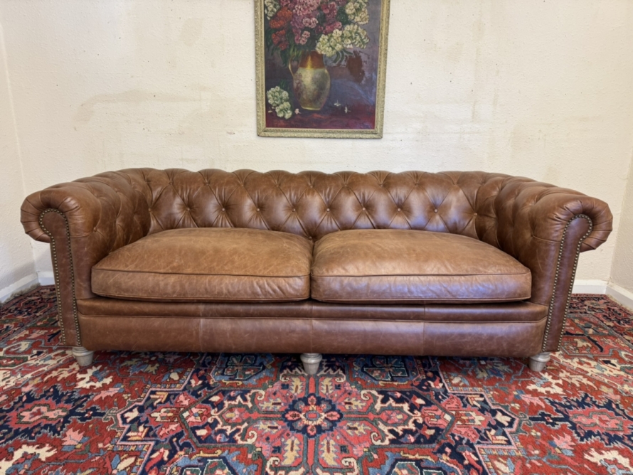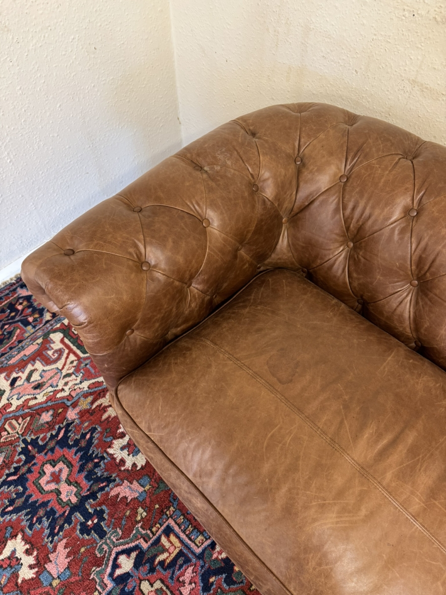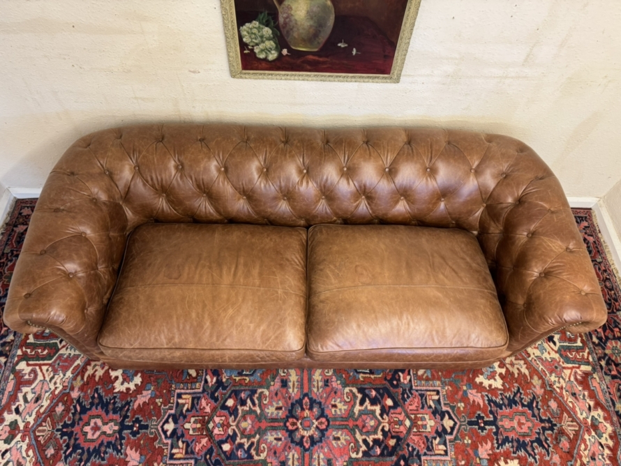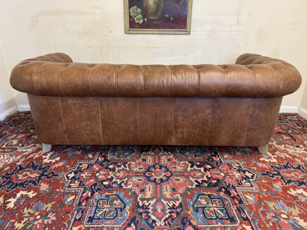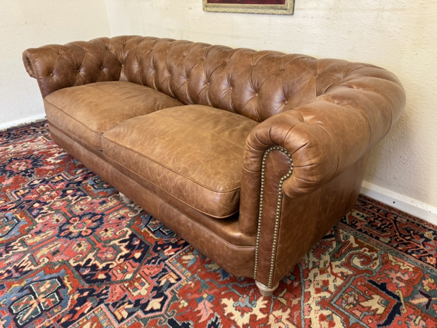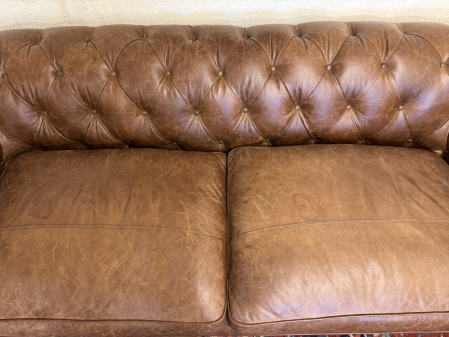 FABULOUS QUALITY TAN LEATHER BUTTON BACKED CHESTERFIELD SOFA/SETTEE