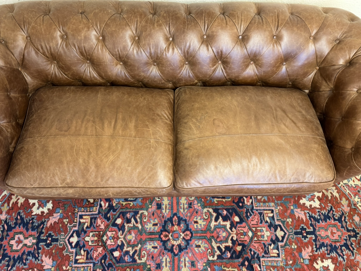 - FABULOUS QUALITY TAN LEATHER BUTTON BACKED CHESTERFIELD SOFA/SETTEE