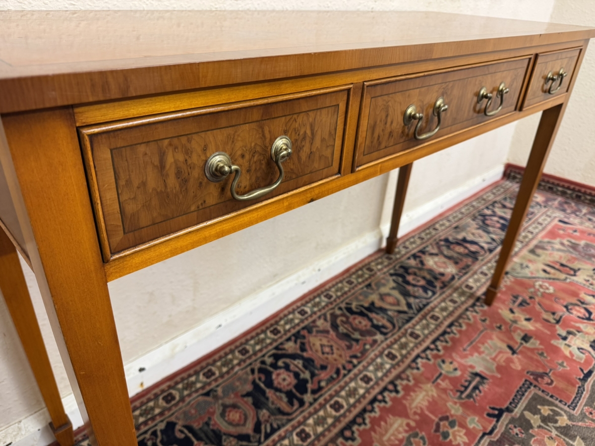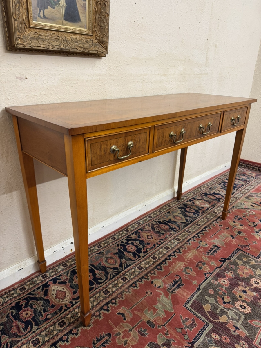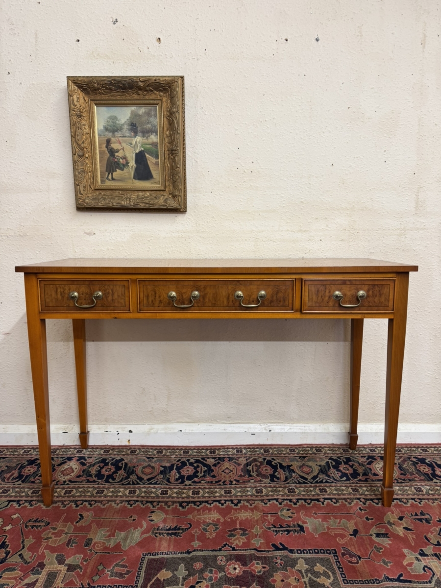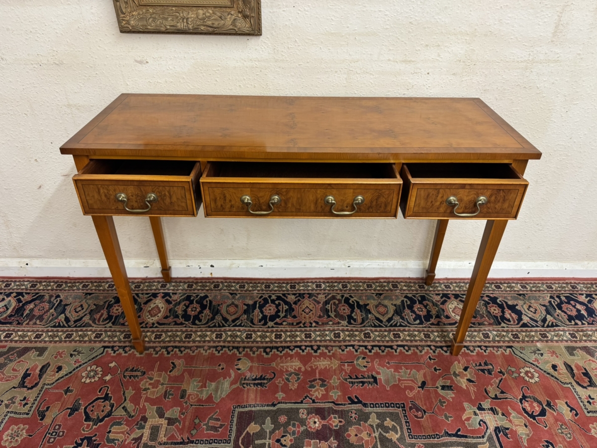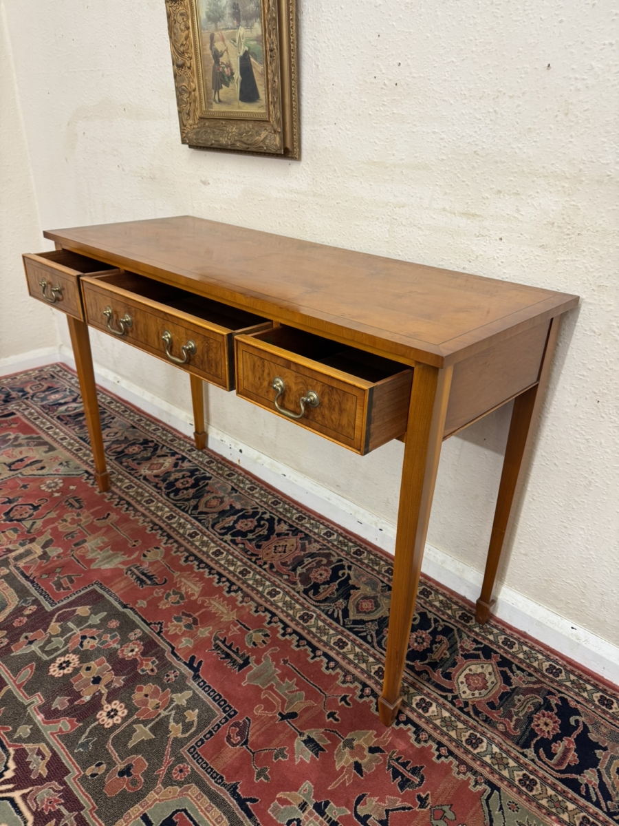 FABULOUS QUALITY YEW WOOD THREE DRAWER CONSOLE TABLE/SIDE TABLE