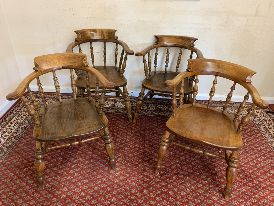 - Fantastic Antique Ash, Elm & Beech Smokers Bow/captains Chair Circa 1880(4)